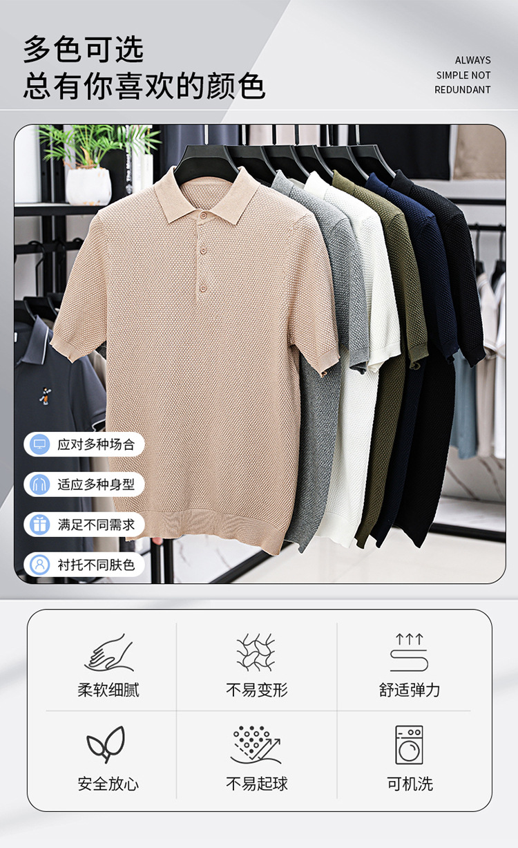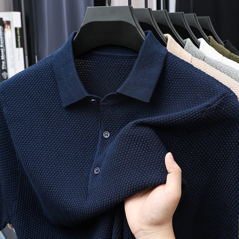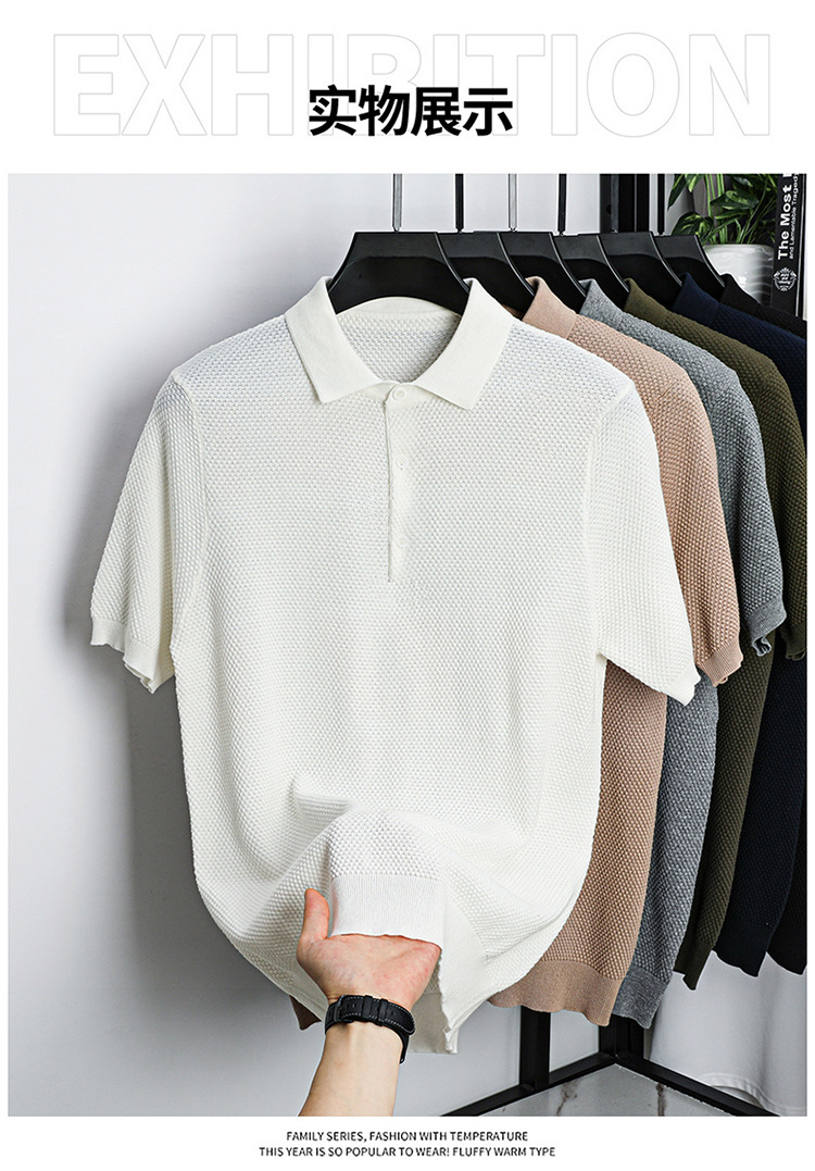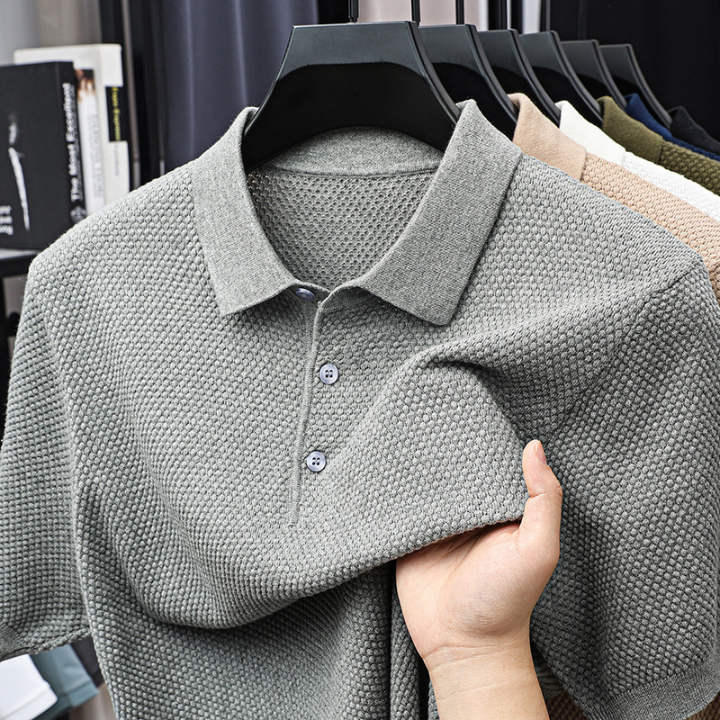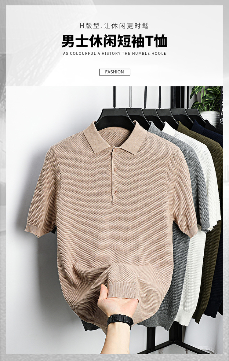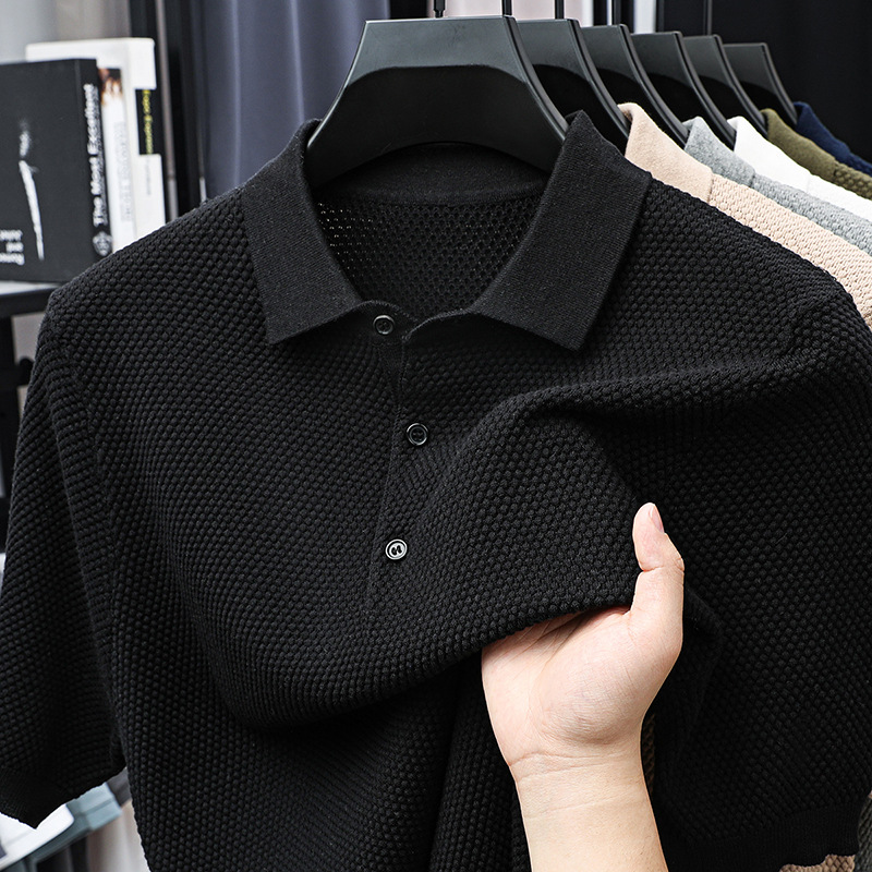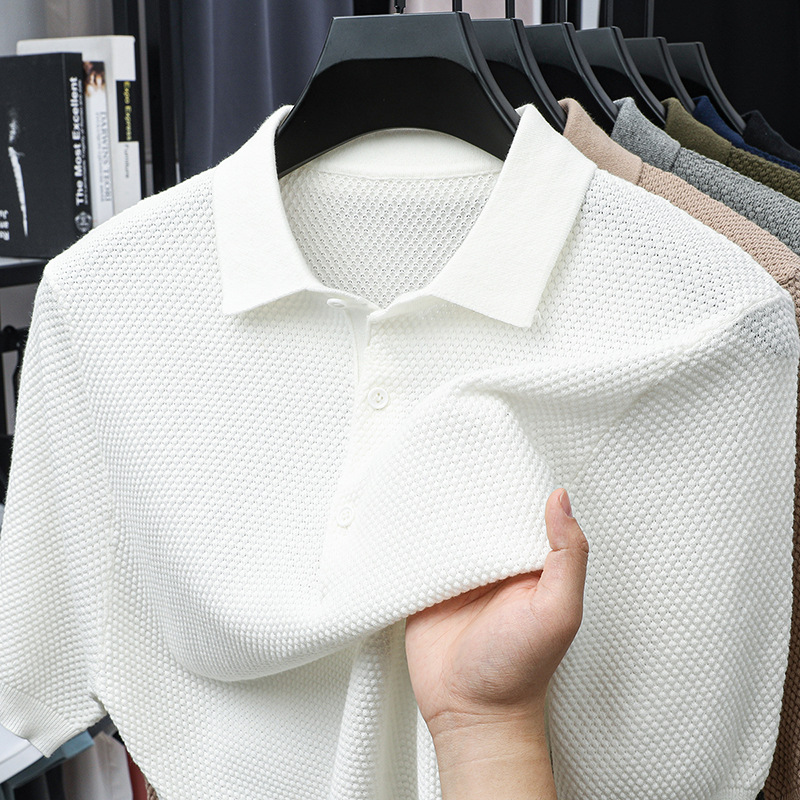 라이브 방송 인기 순면 파인애플 패턴 니트 폴로 셔츠 반팔 남성 여름 패션 가벼운 럭셔리 질감 옷깃 티셔츠스토어 가기