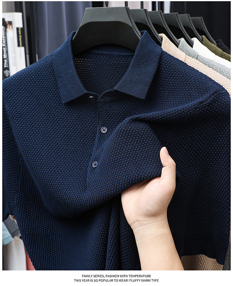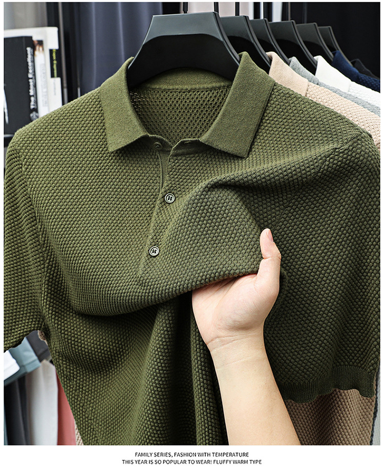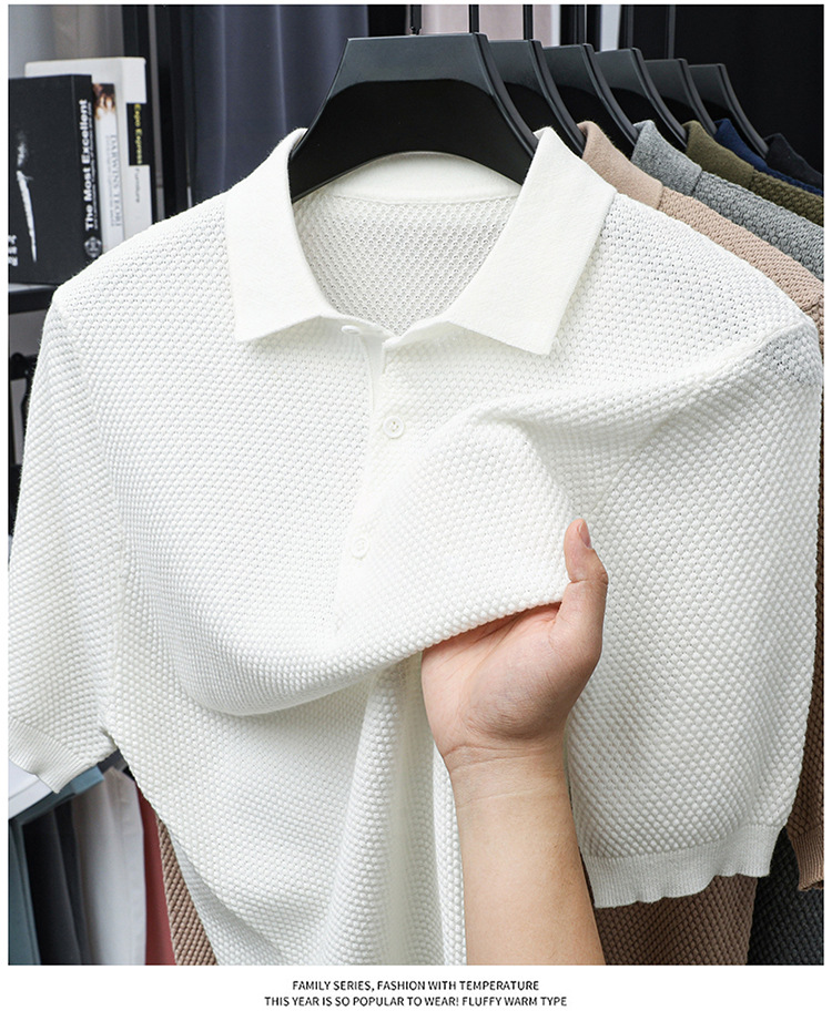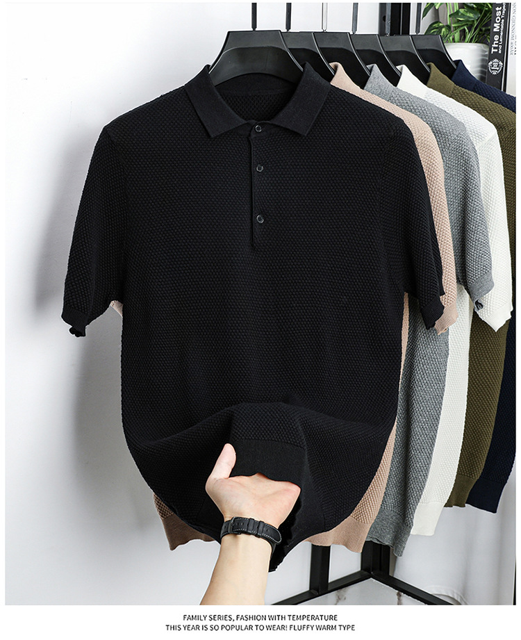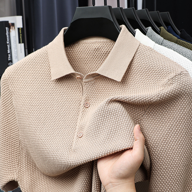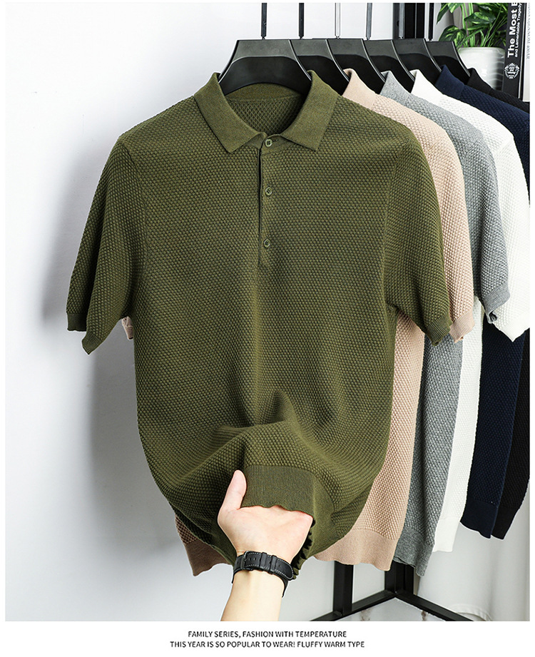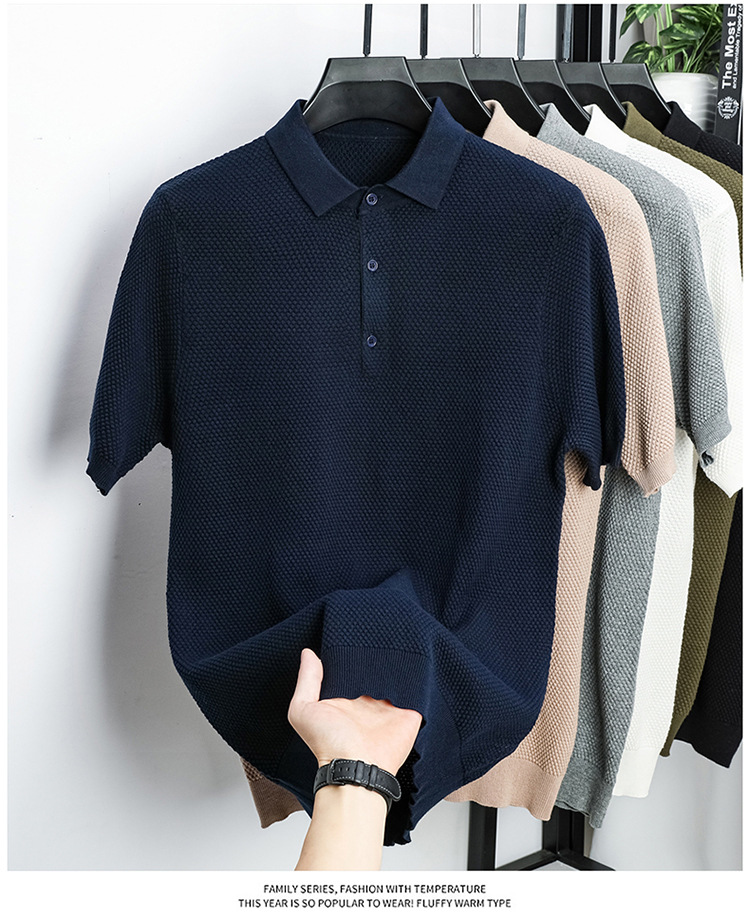 라이브 방송 인기 순면 파인애플 패턴 니트 폴로 셔츠 반팔 남성 여름 패션 가벼운 럭셔리 질감 옷깃 티셔츠스토어 가기