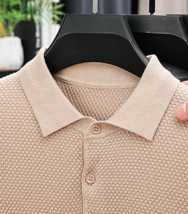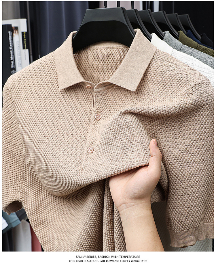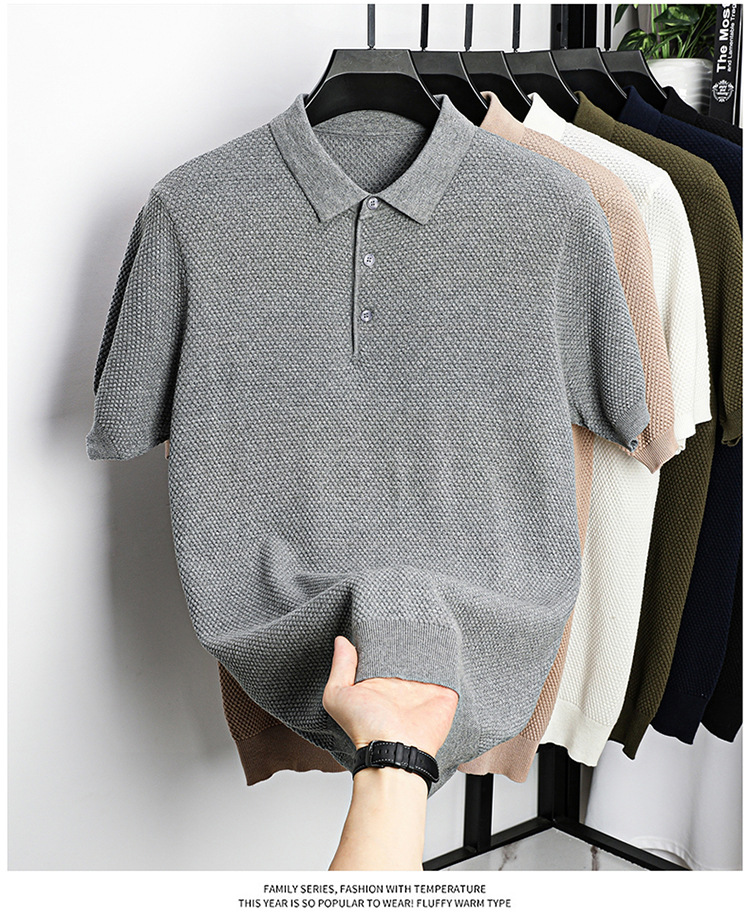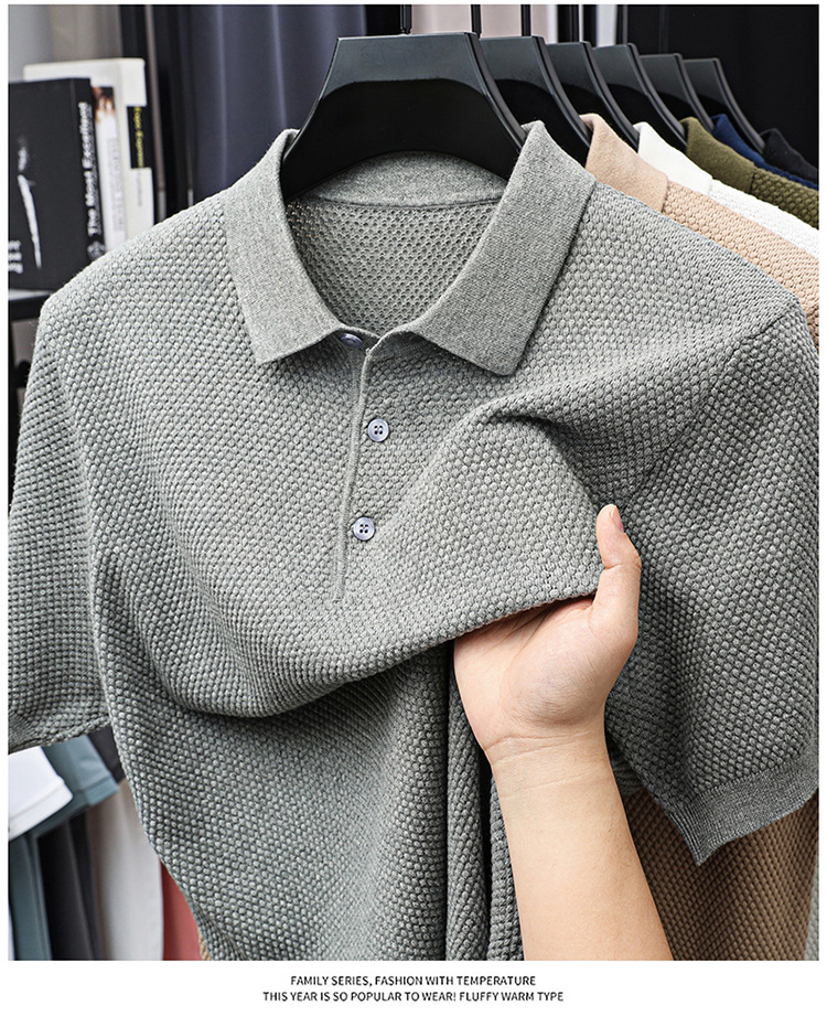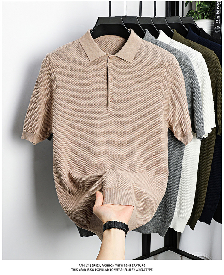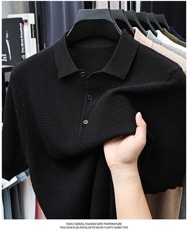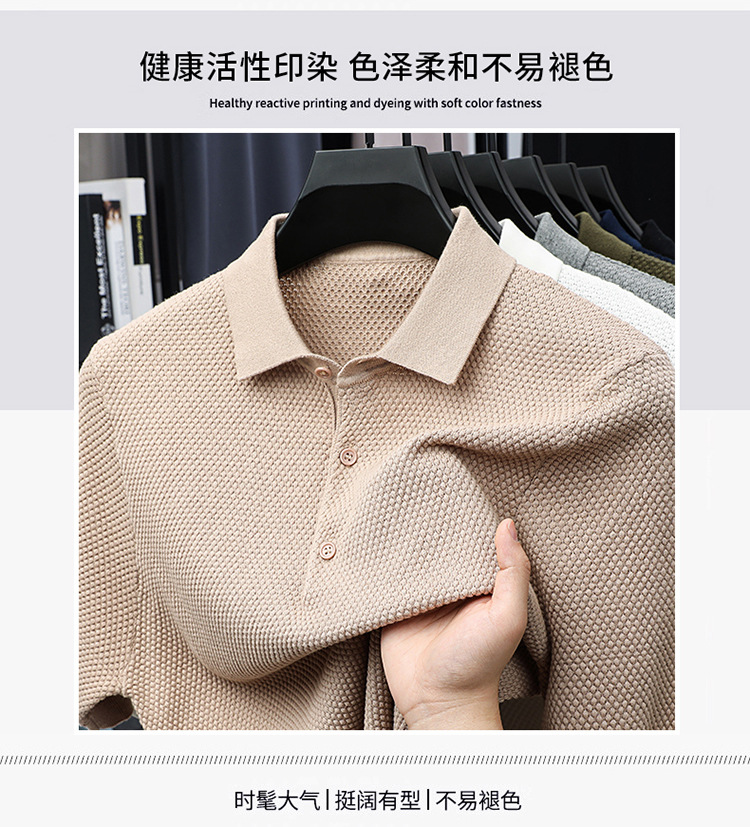 라이브 방송 인기 순면 파인애플 패턴 니트 폴로 셔츠 반팔 남성 여름 패션 가벼운 럭셔리 질감 옷깃 티셔츠스토어 가기