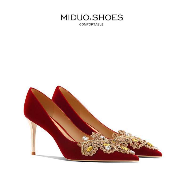 婚鞋女2024年新款红色平底新娘鞋中式敬酒秀禾单鞋两穿敬酒鞋结婚