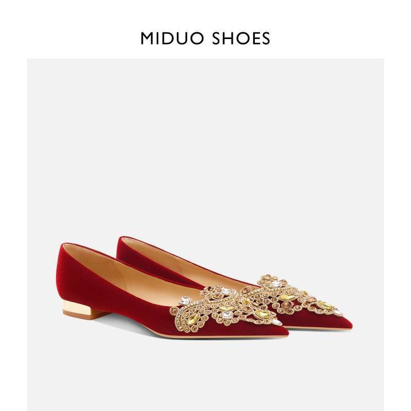 웨딩 신발 여성의 2025 새로운 레드 플랫 신부 신발 중국 토스트 Xiuhe 싱글 신발 두 착용 토스트 신발 웨딩스토어 가기