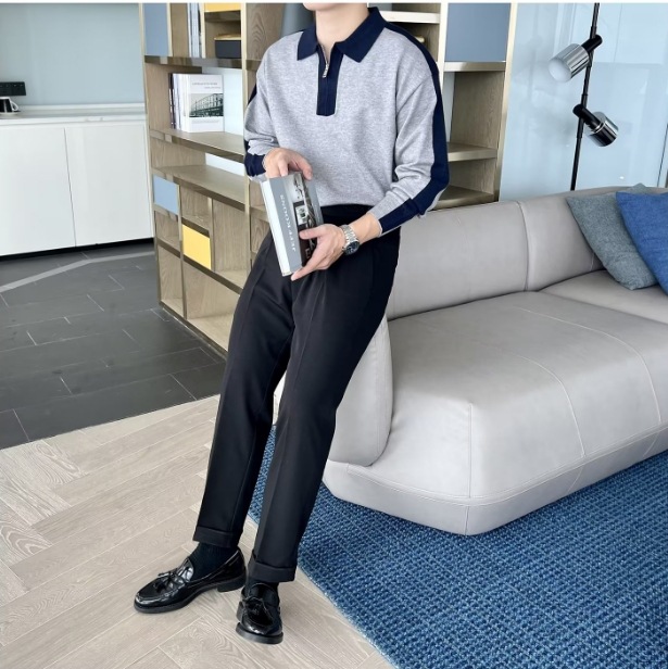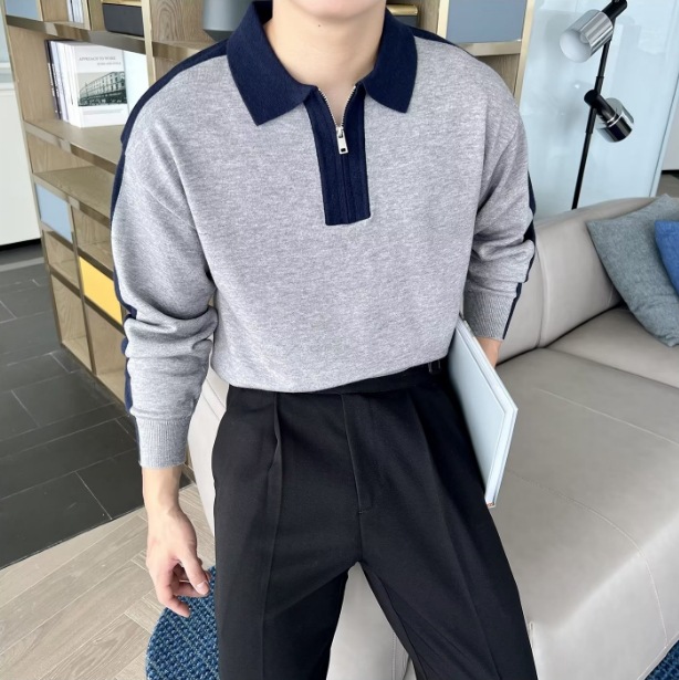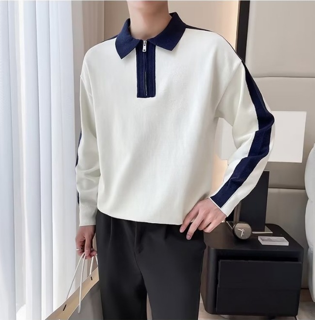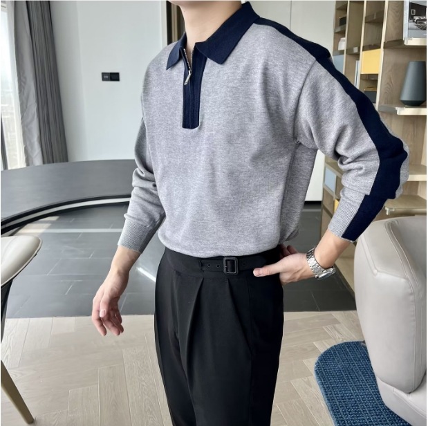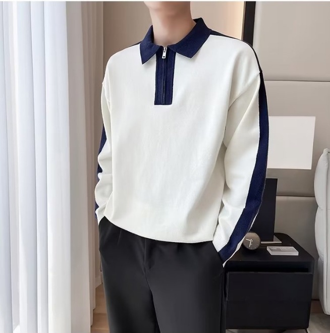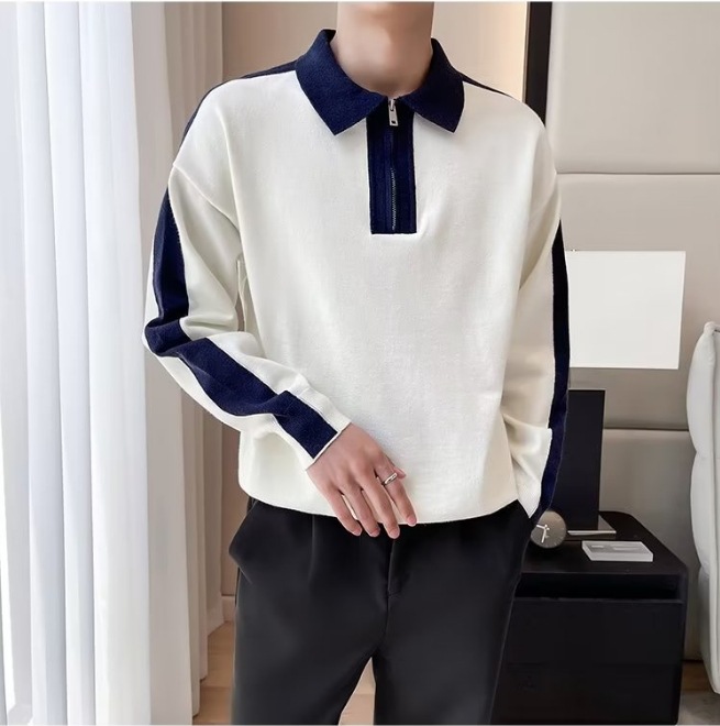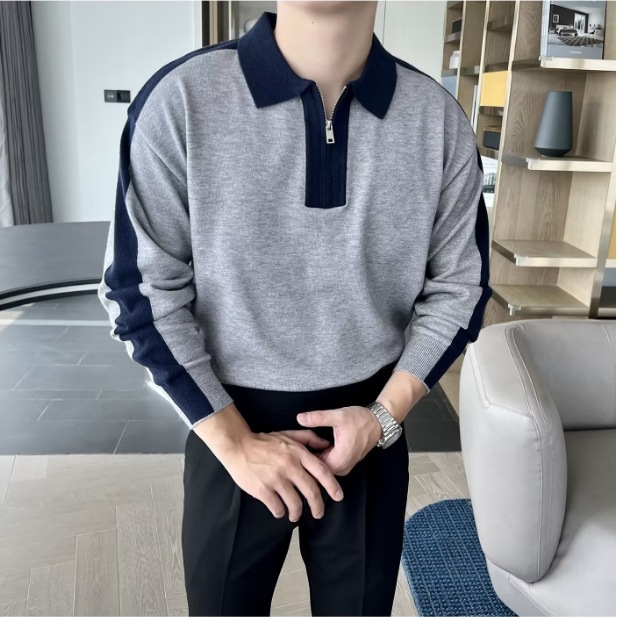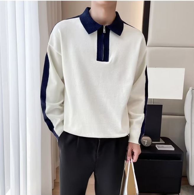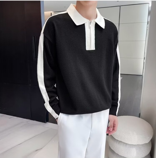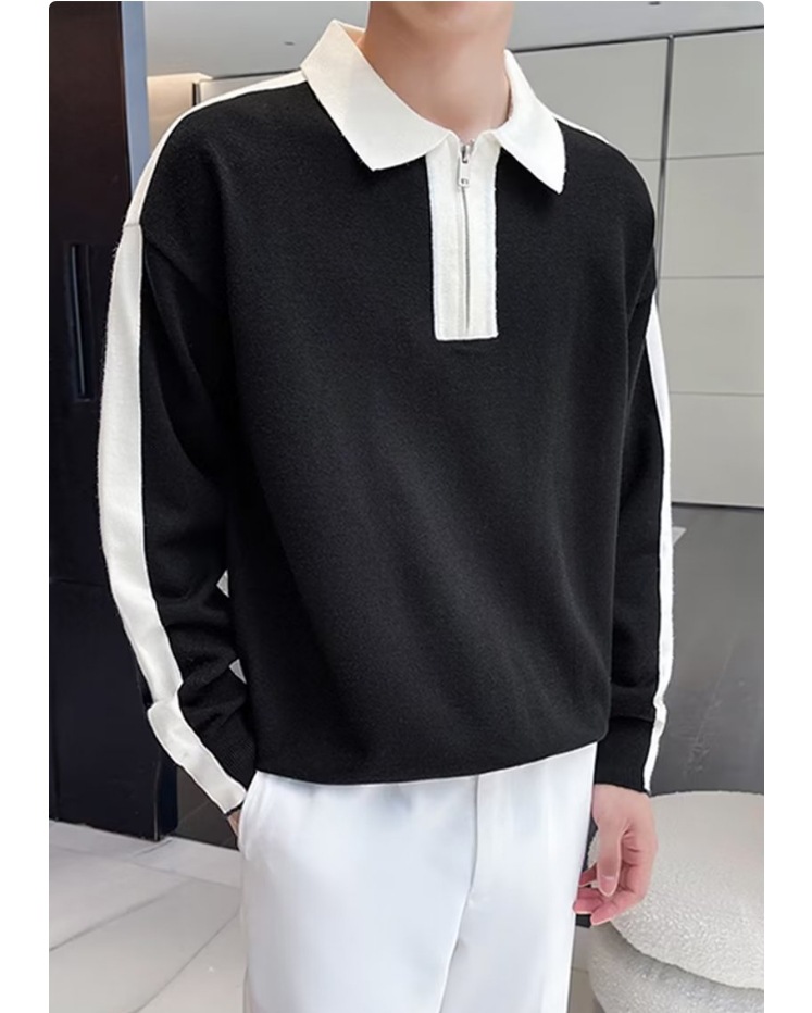 남성용 대비 색상 하프 지퍼 폴로 칼라 풀오버 스웨터 2025 봄, 가을 새로운 한국 스타일 긴팔 스웨터 재킷 유행스토어 가기