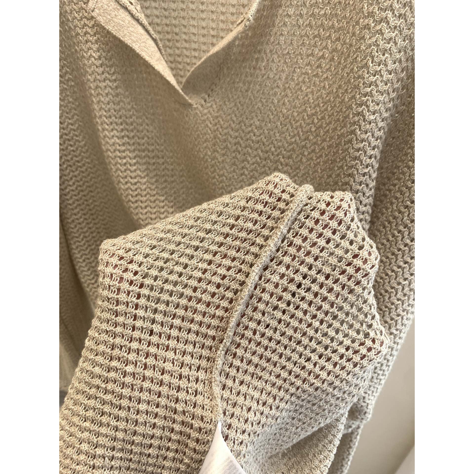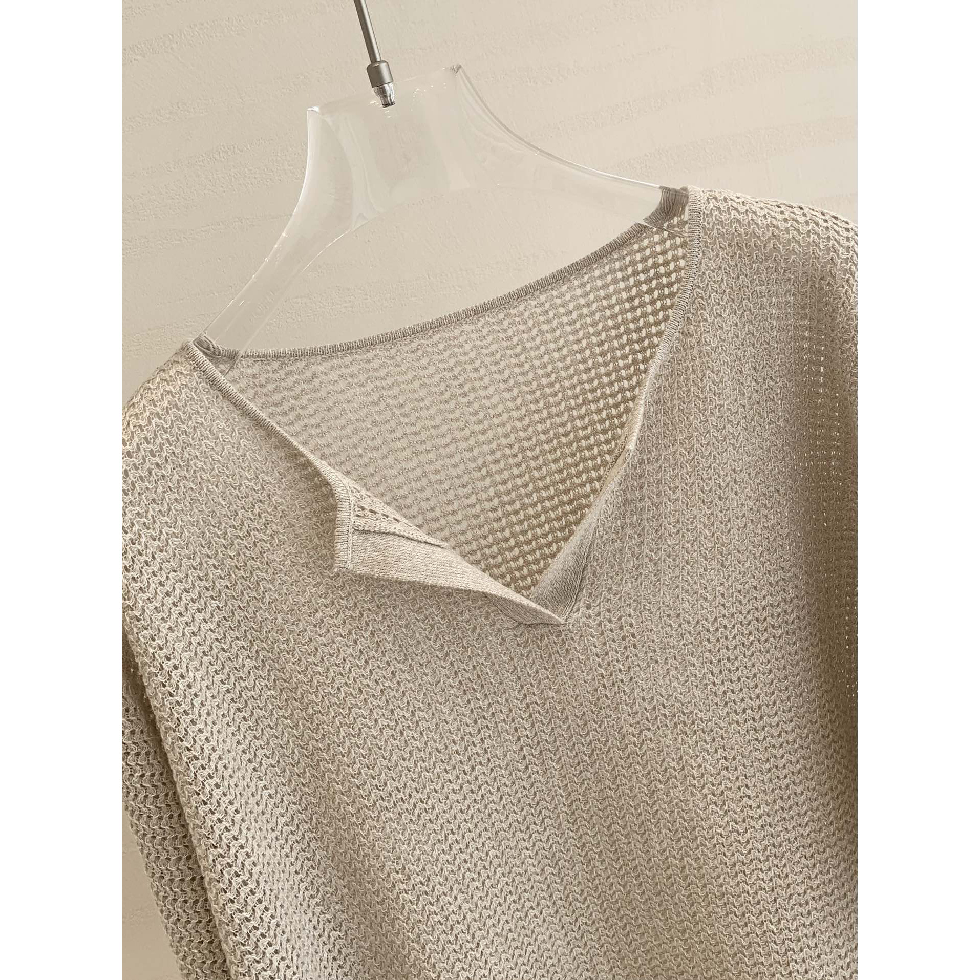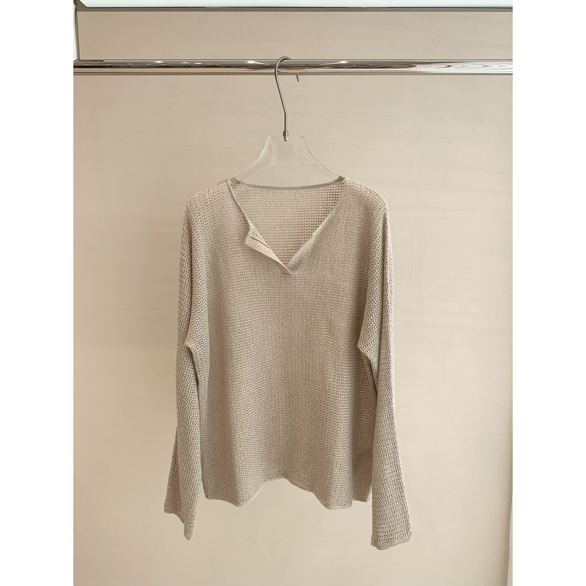 여성용 레이지 린넨 코튼 브이넥 중공 긴팔 스웨터 25 여름 스타일 루즈한 살 커버 자외선 차단 얇은 에어컨 블라우스