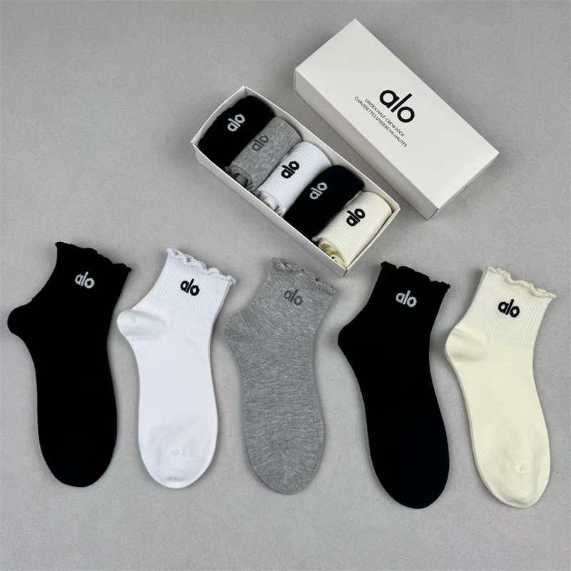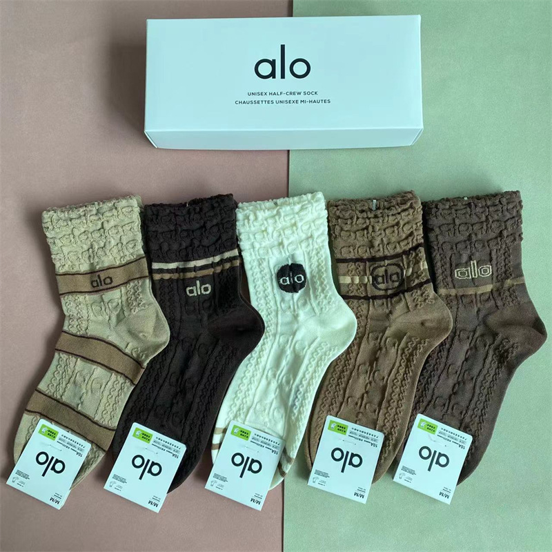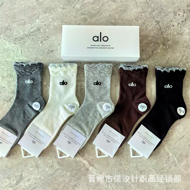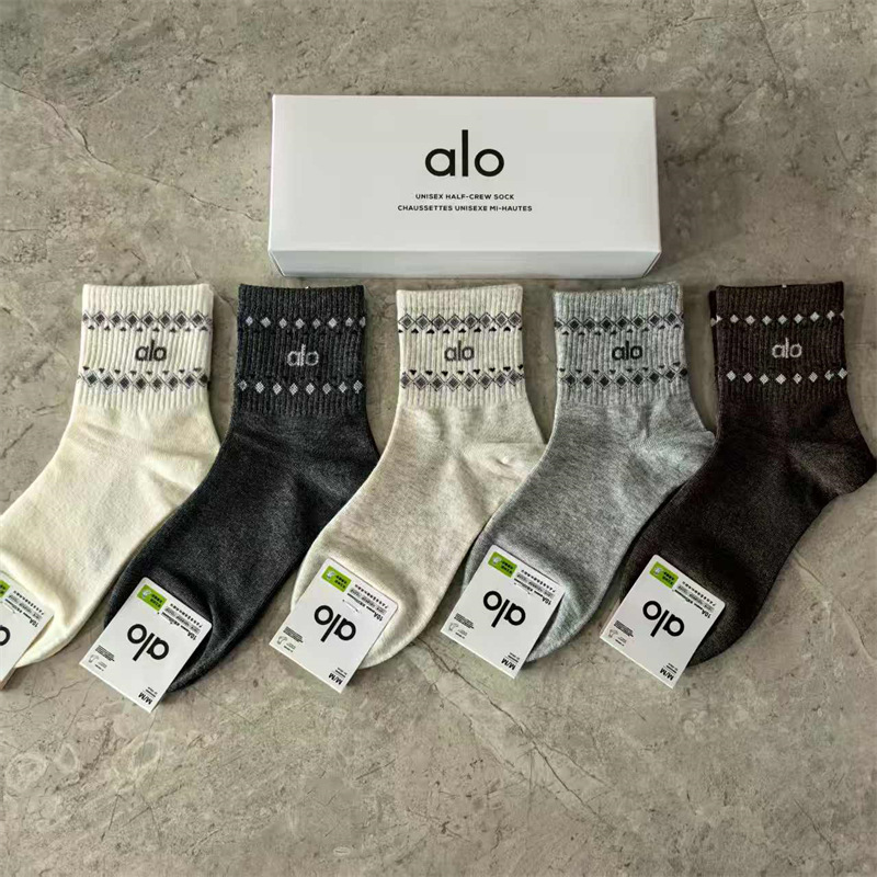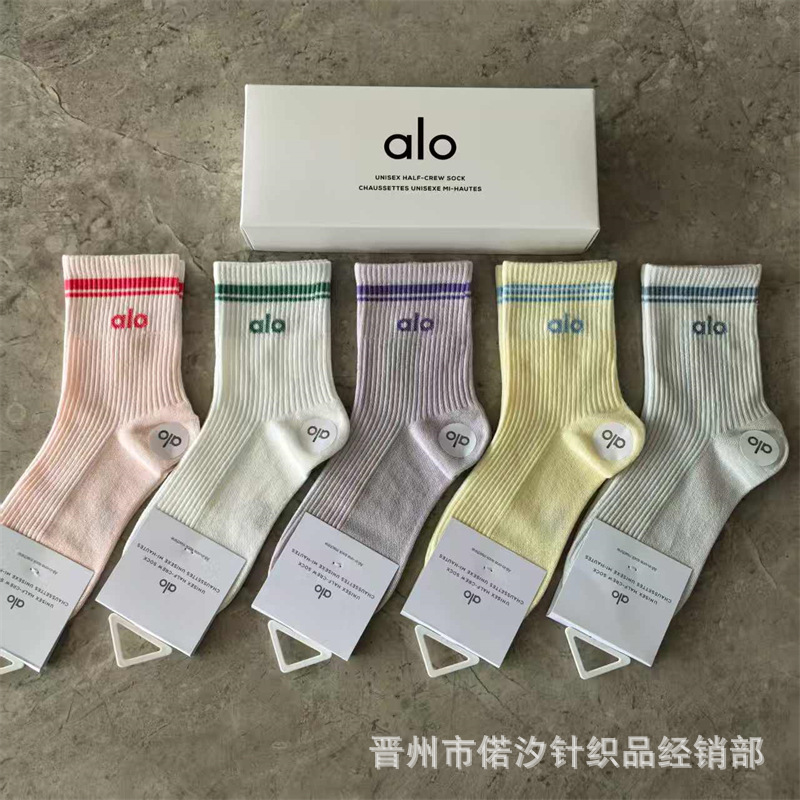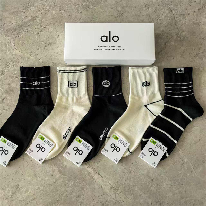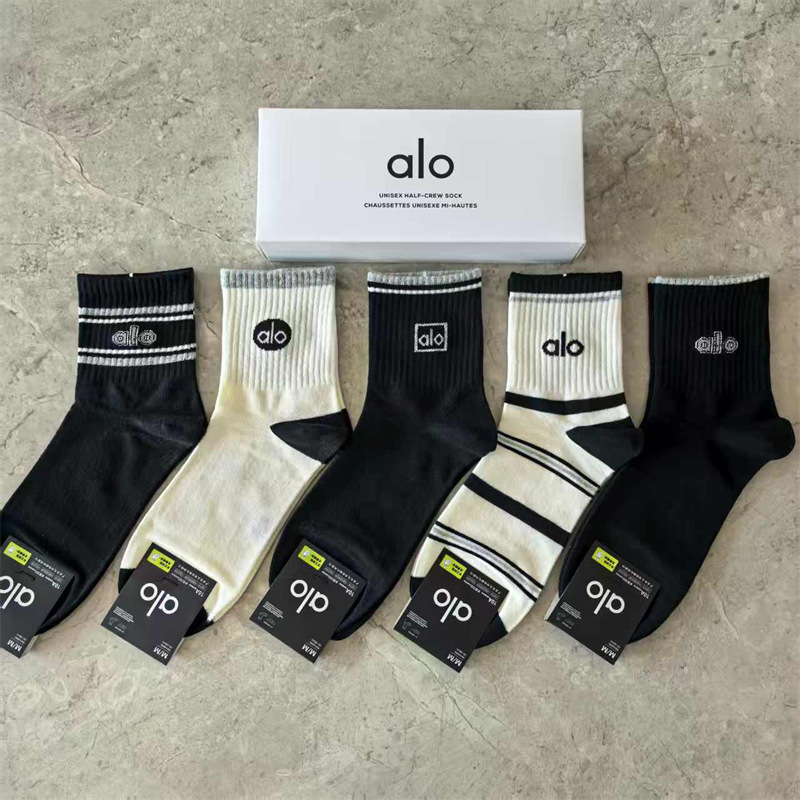 새로운 alo 요가 양말 면 중간 튜브 80% 면 중간 통기성 캐주얼 스포츠 양말 남성과 여성을위한 사계절 양말스토어 가기