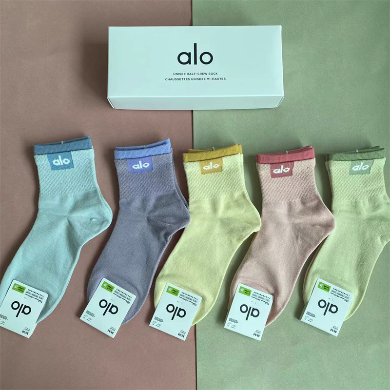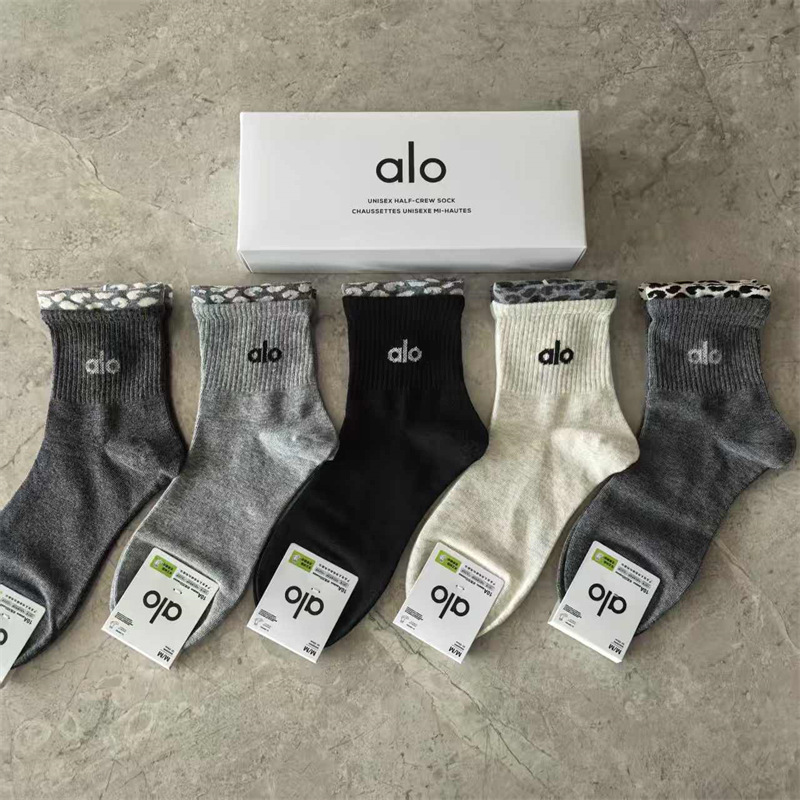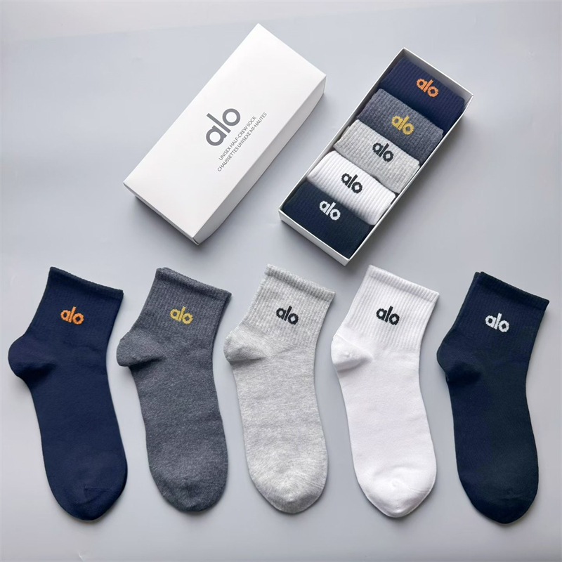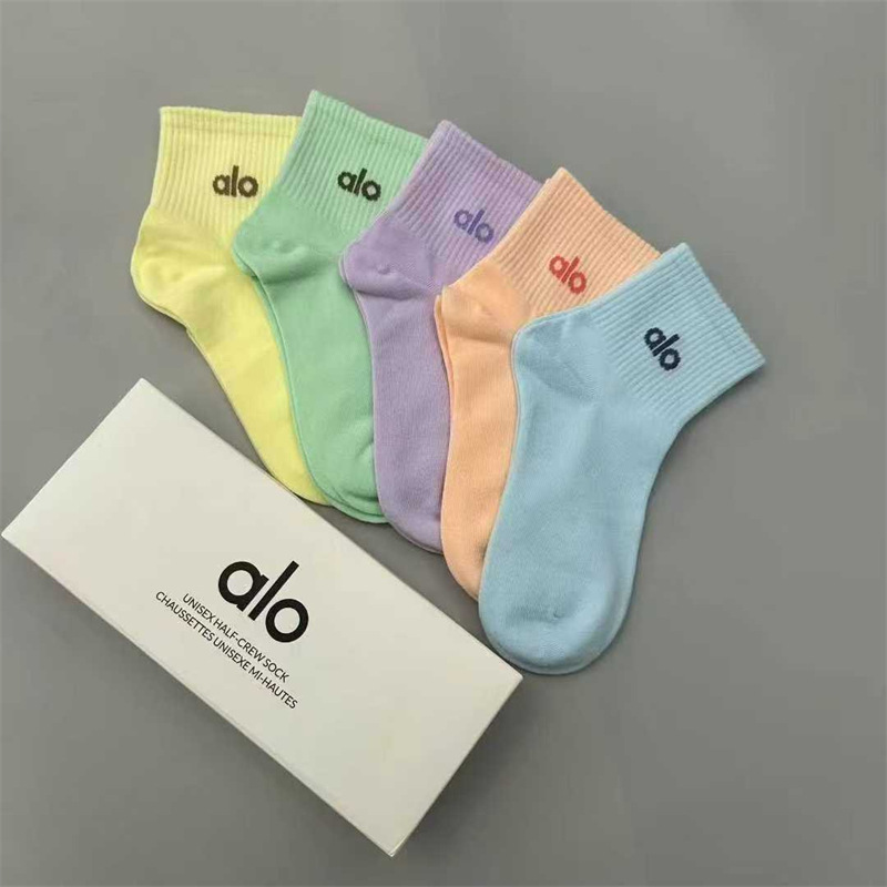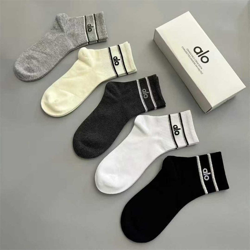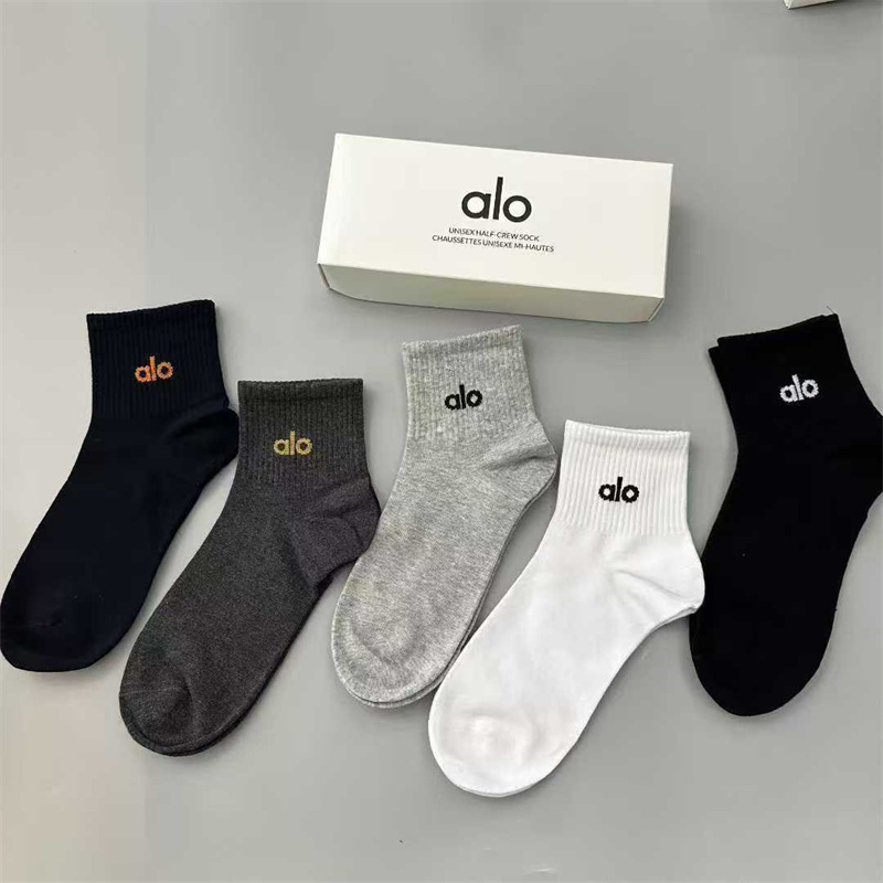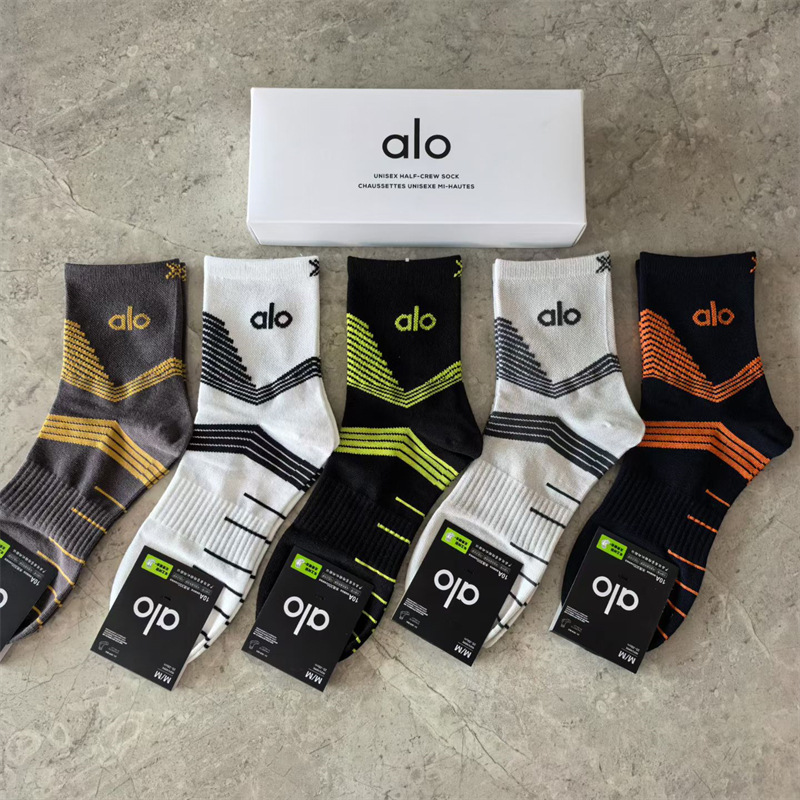 새로운 alo 요가 양말 면 중간 튜브 80% 면 중간 통기성 캐주얼 스포츠 양말 남성과 여성을위한 사계절 양말