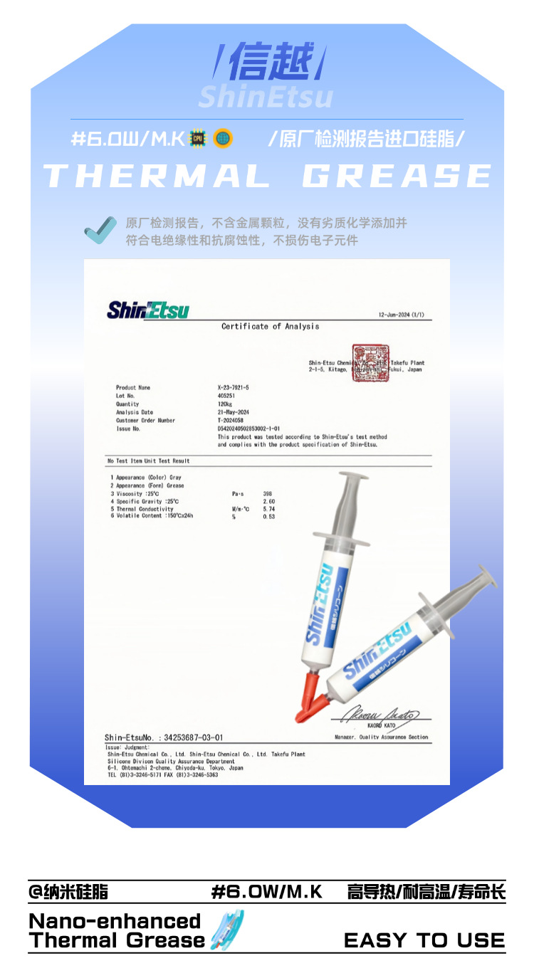 일본 오리지널 Shin-Etsu X-23-7921-5 컴퓨터 CPU 그래픽 카드 용 고열 전도성 실리콘 그리스 방열판 SF 무료 배송