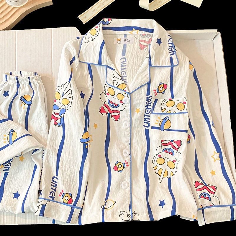 소년 잠옷 여름 긴팔 바지 2025 새로운 만화 어린이 봄, 가을 소년 가정복은 트렌디하게 착용 가능