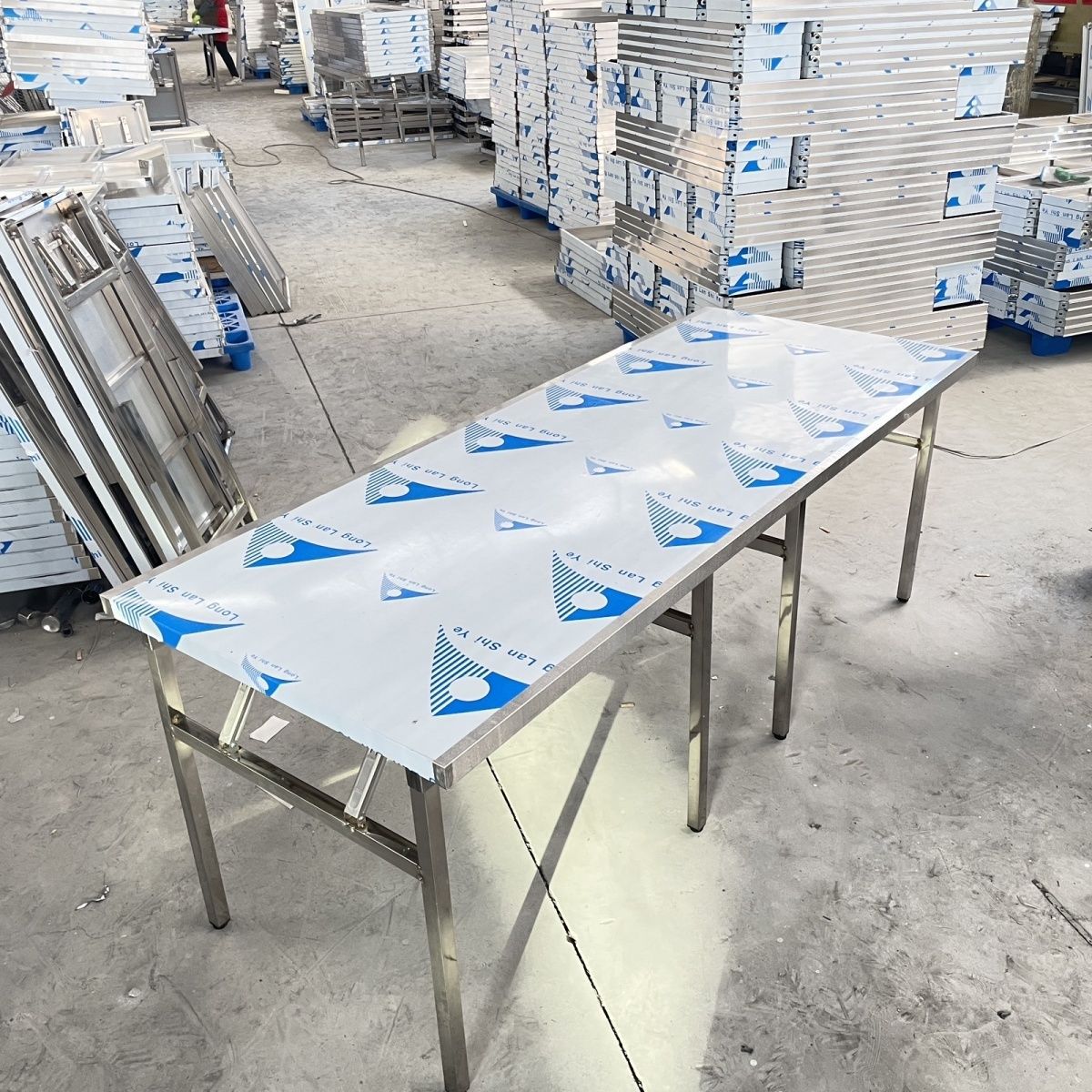휴대용 두꺼운 스테인레스 스틸 접이식 테이블 스톨 임대 집 야외 피크닉 테이블 레스토랑 주방 접이식 테이블스토어 가기