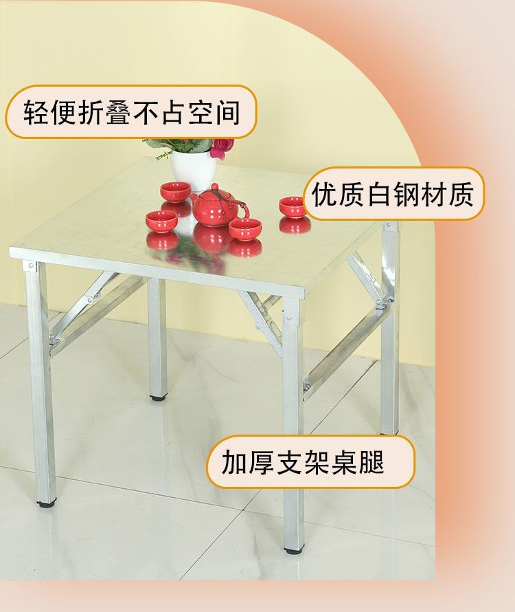 휴대용 두꺼운 스테인레스 스틸 접이식 테이블 스톨 임대 집 야외 피크닉 테이블 레스토랑 주방 접이식 테이블