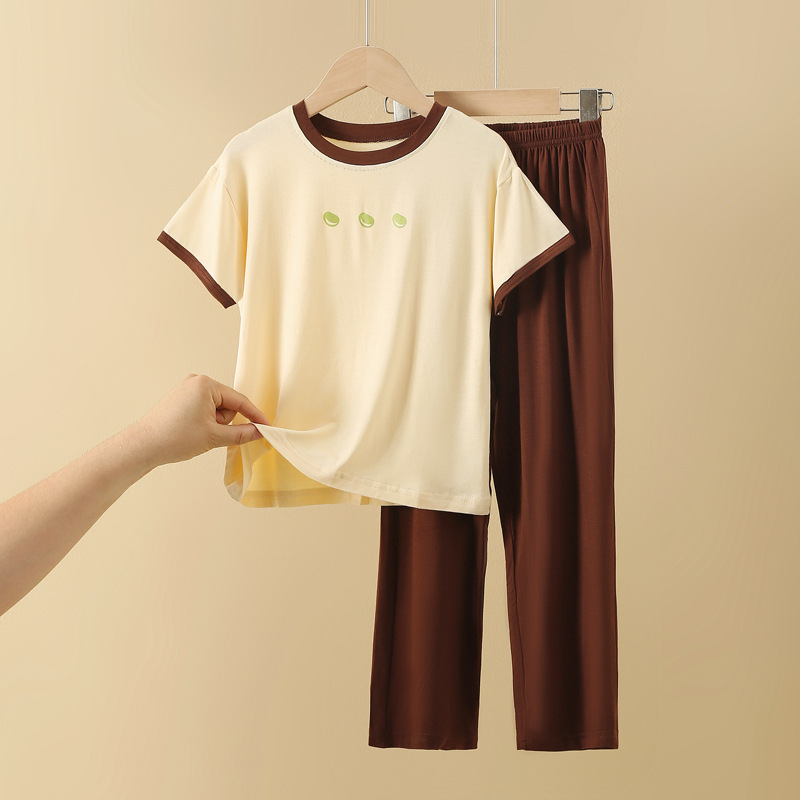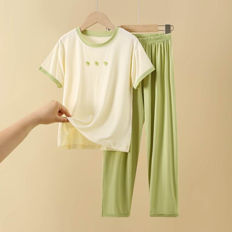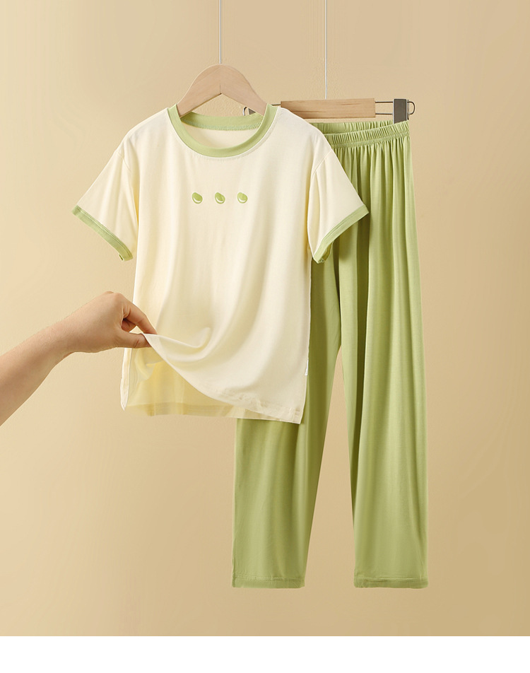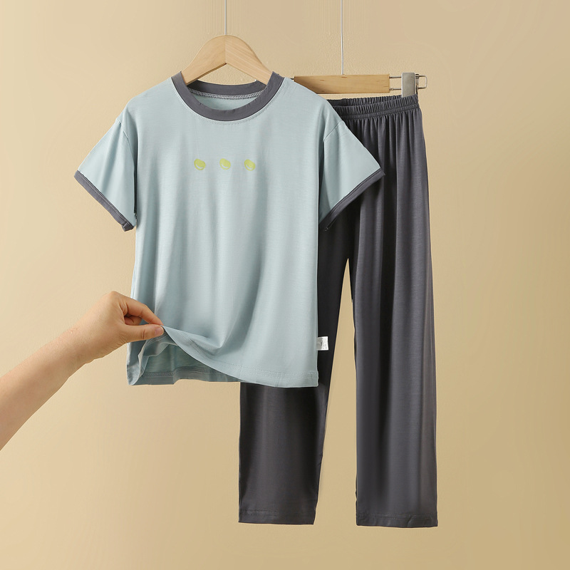 어린이 잠옷, 여름용, 중대형 아동용, 남아 여아용, 얇은 반팔 긴바지 세트, 남아용 홈웨어, 외출복으로도 가능