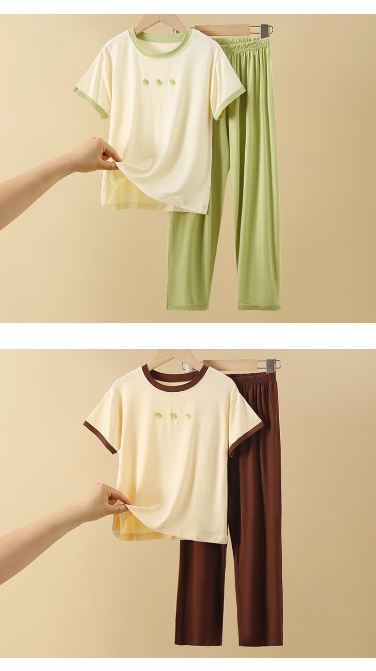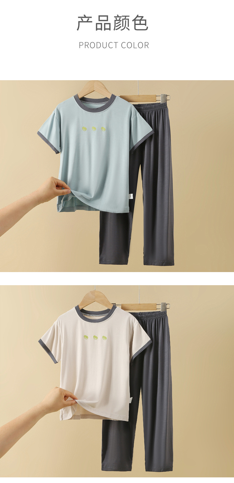어린이 잠옷, 여름용, 중대형 아동용, 남아 여아용, 얇은 반팔 긴바지 세트, 남아용 홈웨어, 외출복으로도 가능스토어 가기