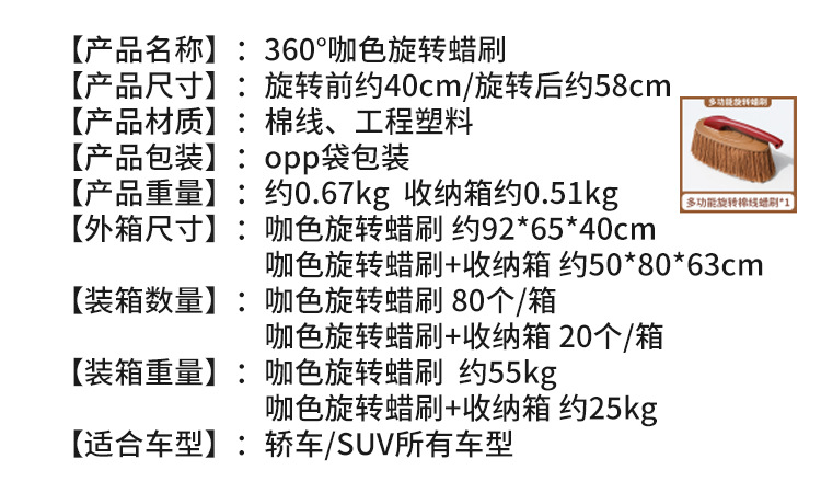 • 360 ° 갈색 회전 왁스 브러시