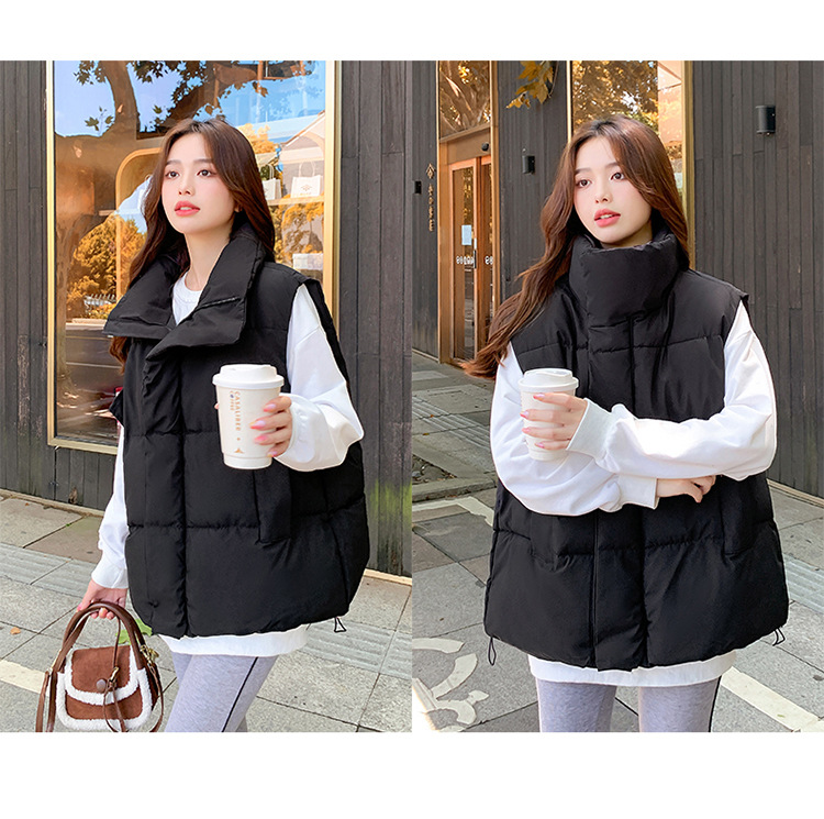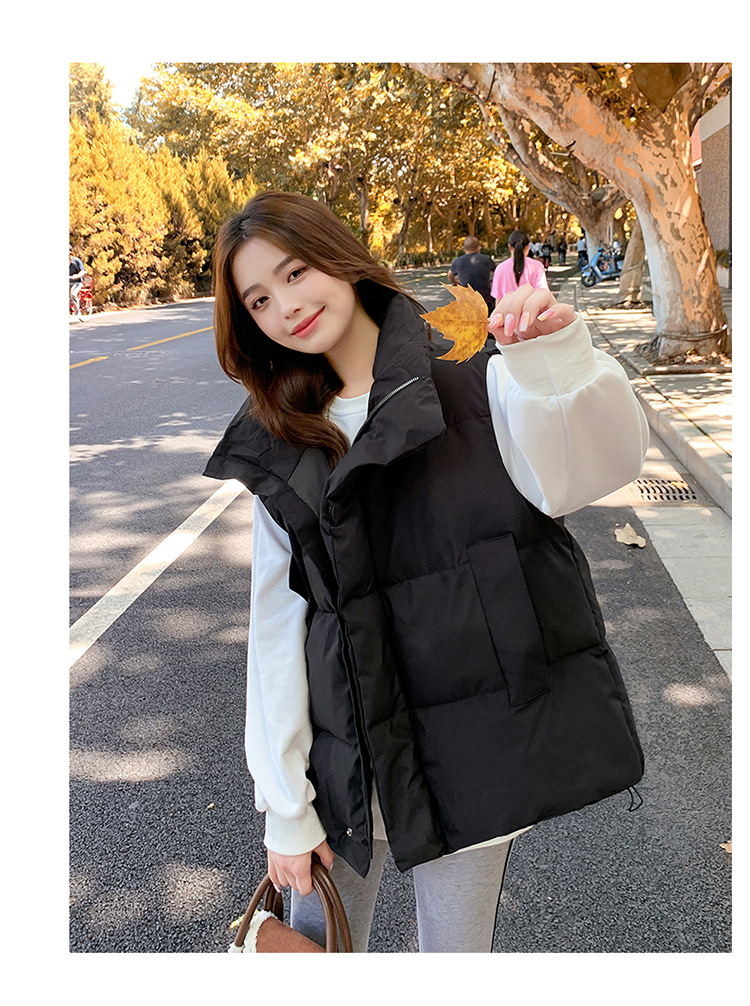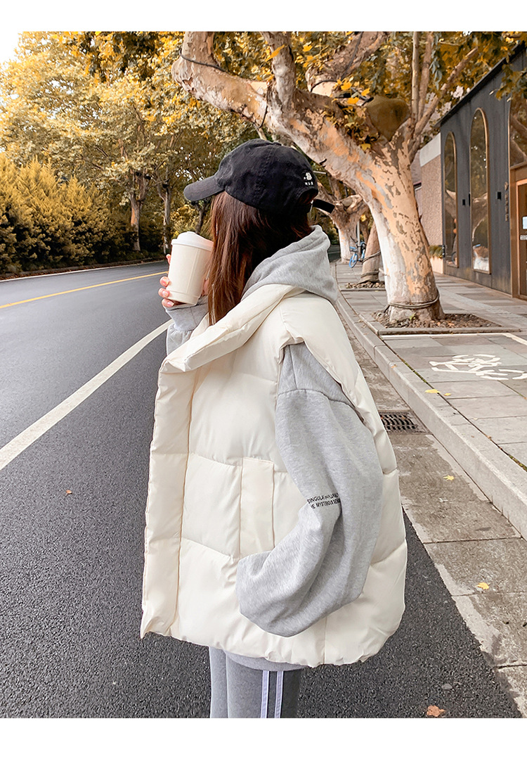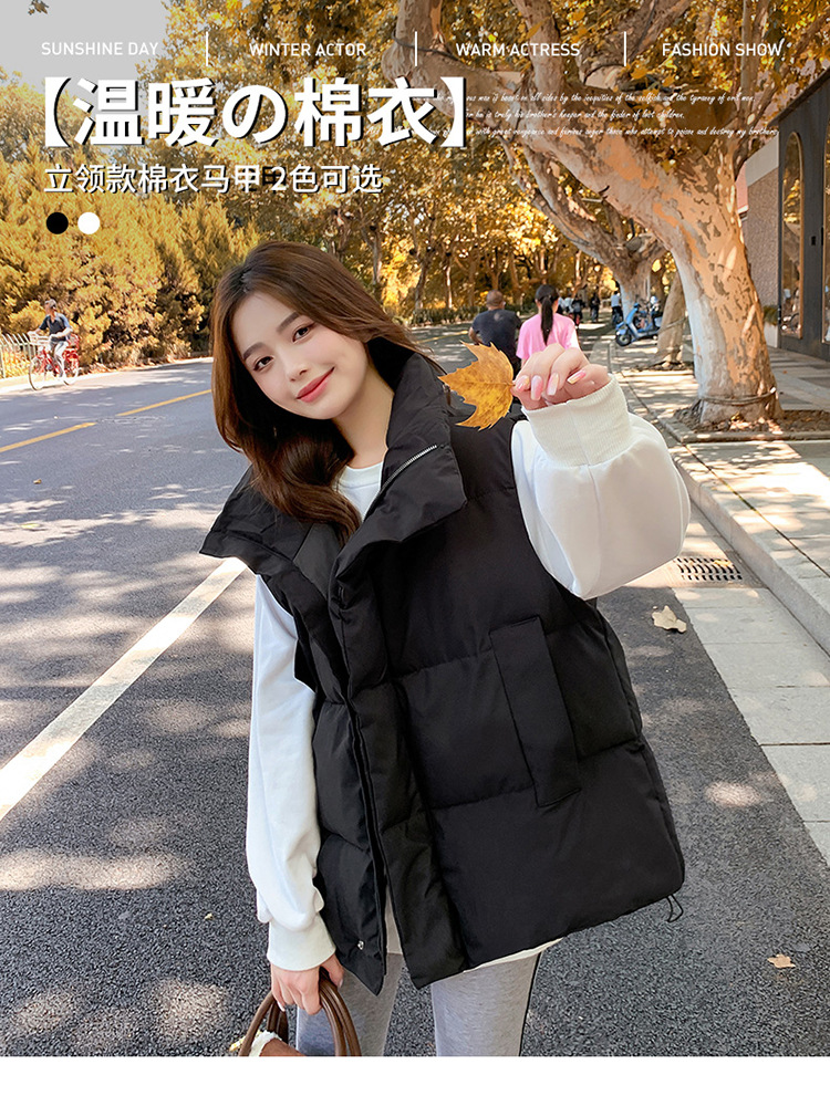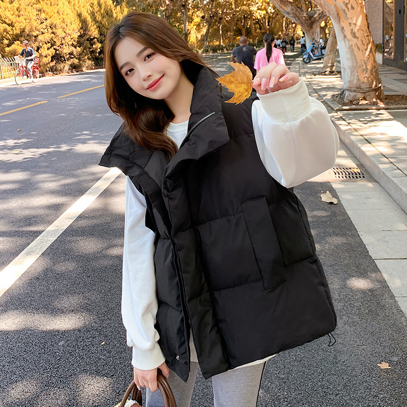 2025 가을, 겨울 다운 코튼 조끼 여성 짧은 한국 스타일 슬림 학생 후드 다목적 루즈 조끼 자켓 양복 조끼스토어 가기