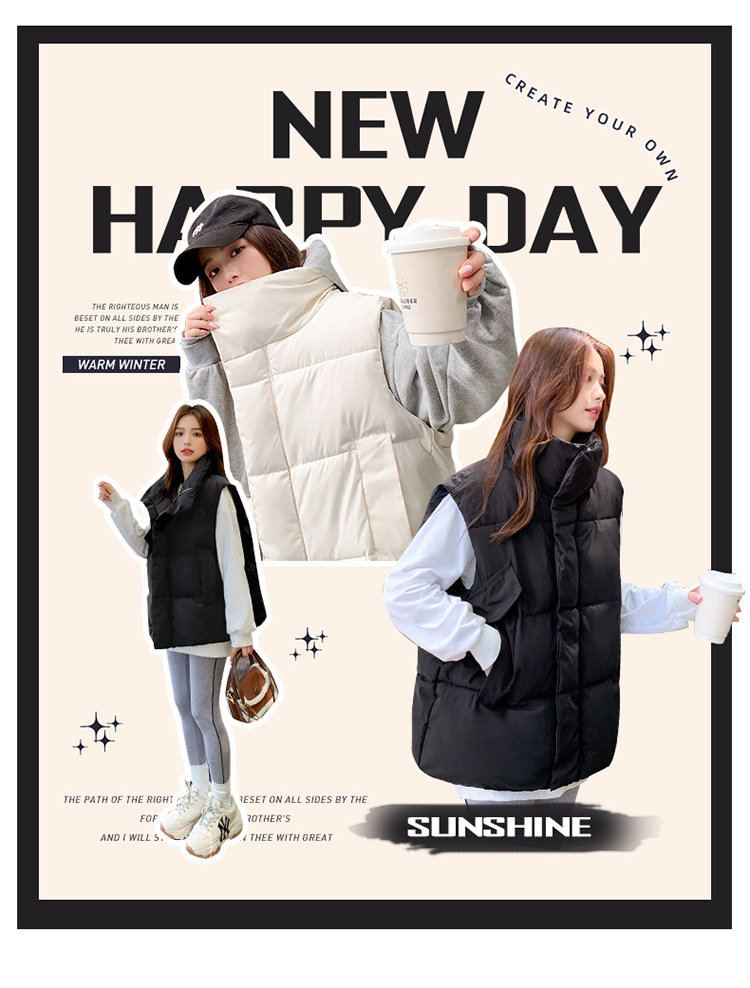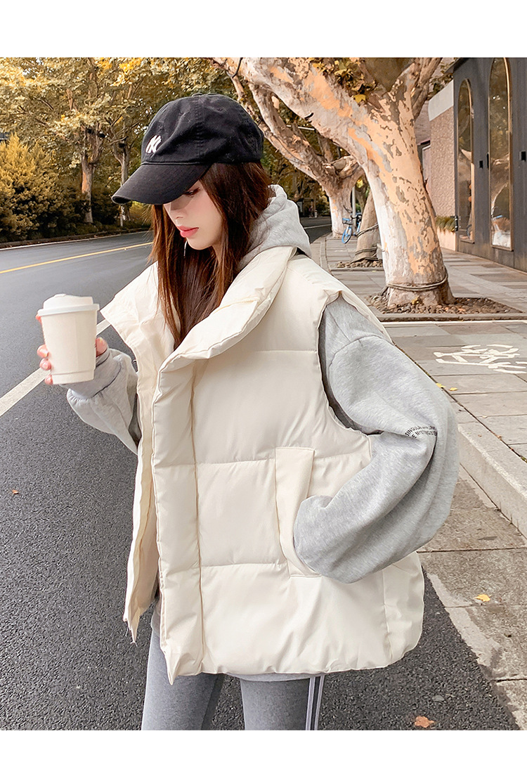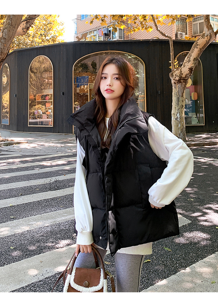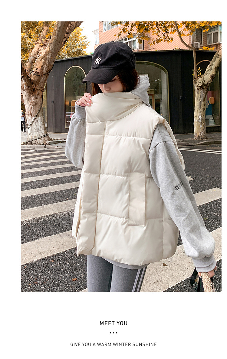 2025 가을, 겨울 다운 코튼 조끼 여성 짧은 한국 스타일 슬림 학생 후드 다목적 루즈 조끼 자켓 양복 조끼스토어 가기