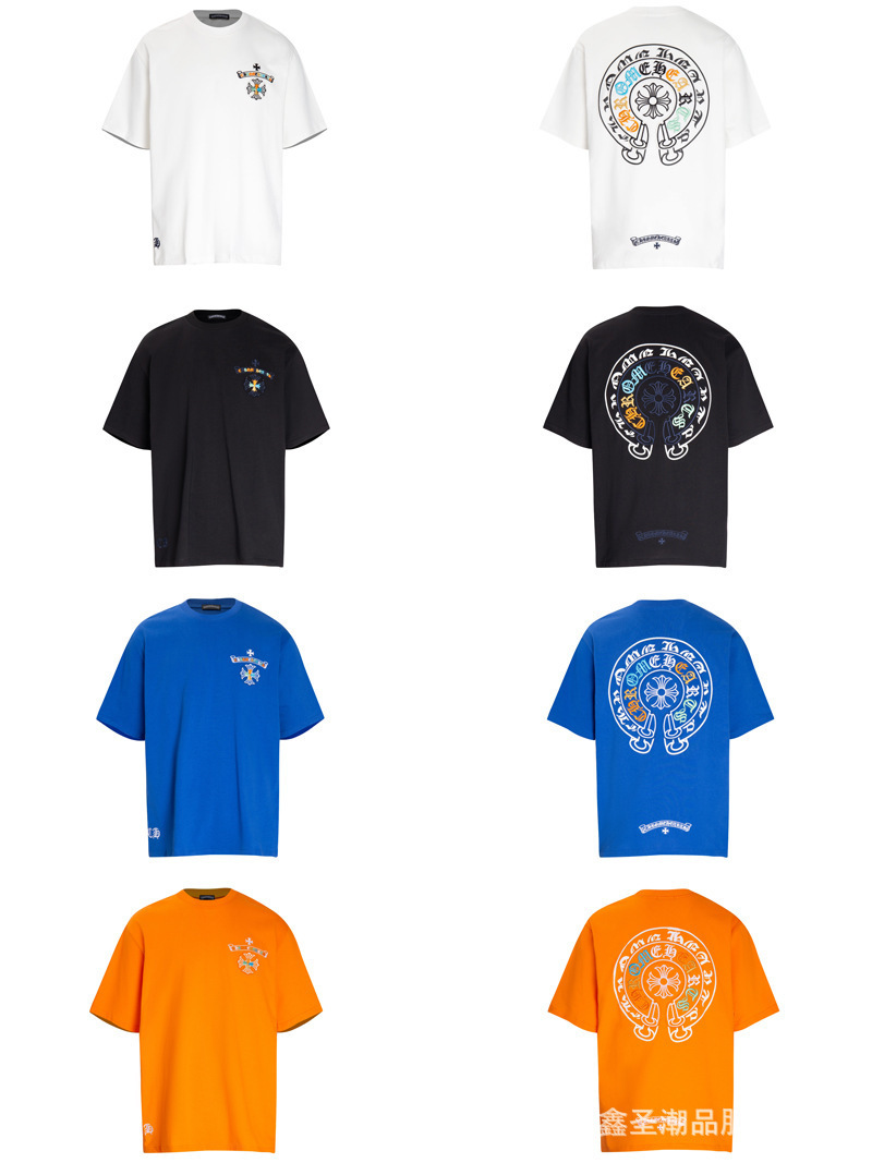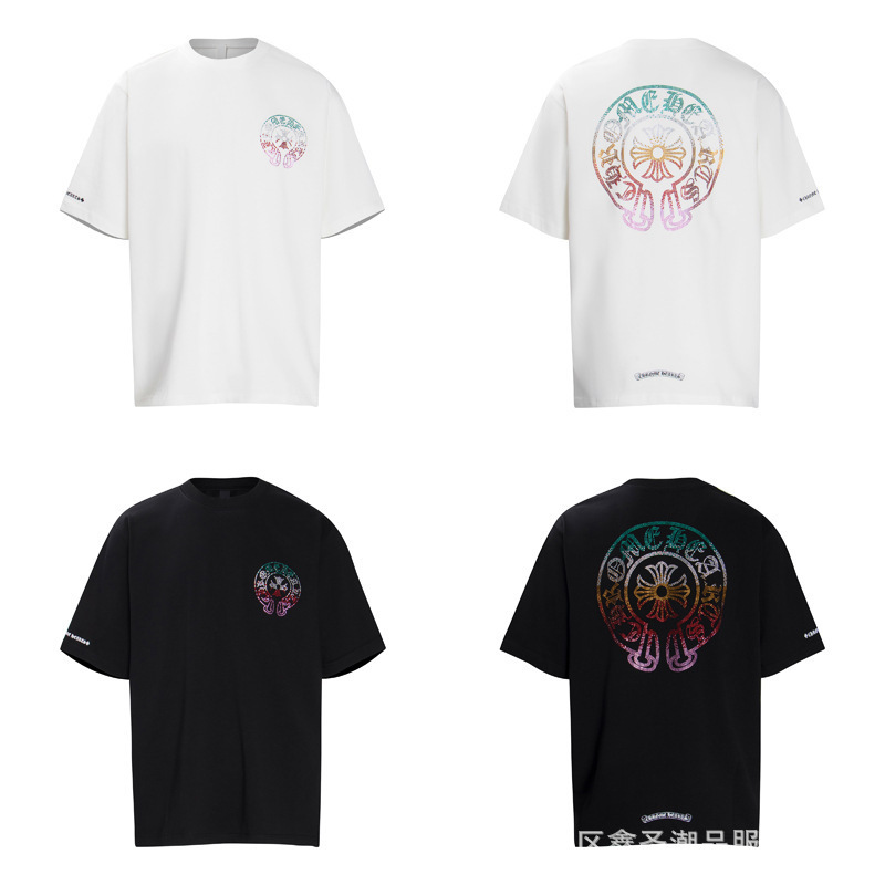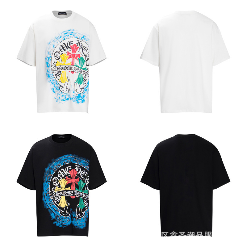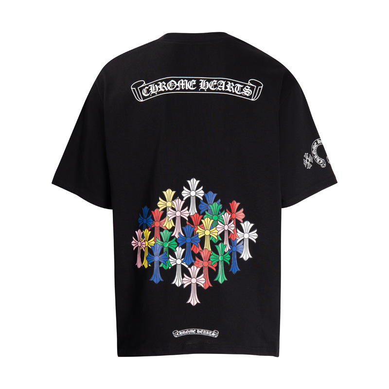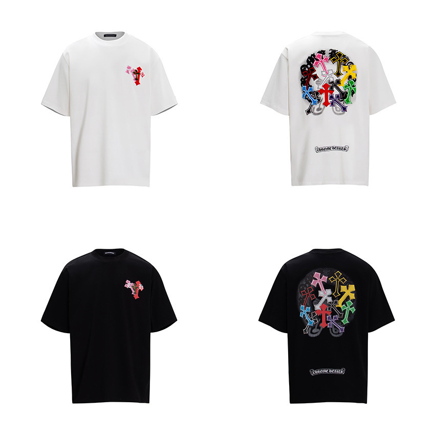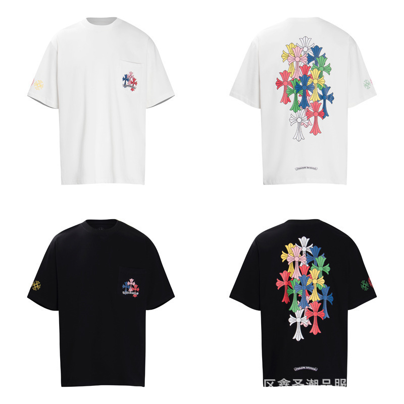 크로스보더 2025 신형 크롬하츠 컬러풀 크로스 프린트 남녀공용 반팔 티셔츠스토어 가기