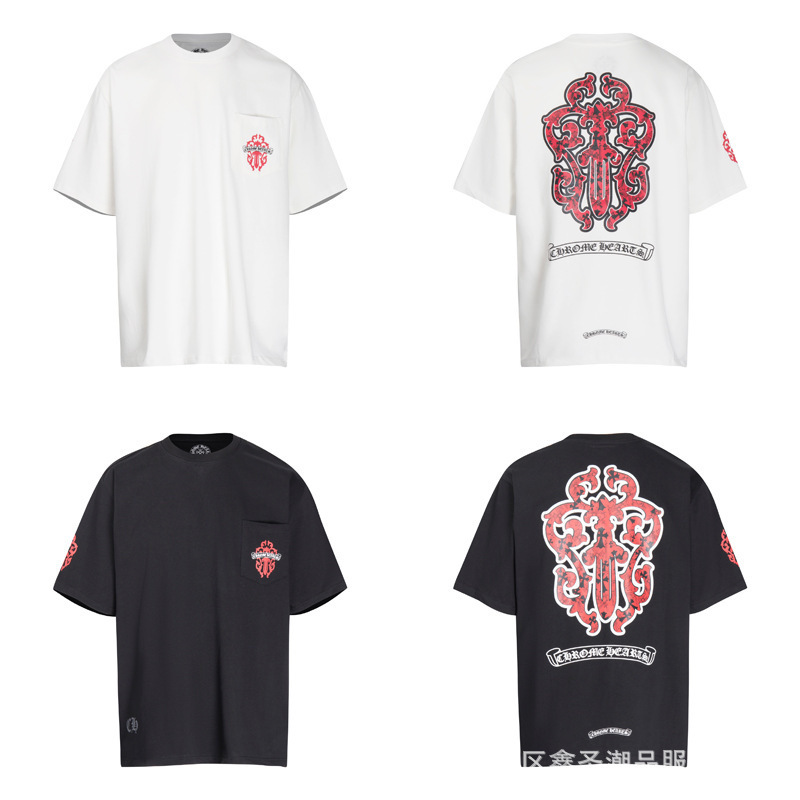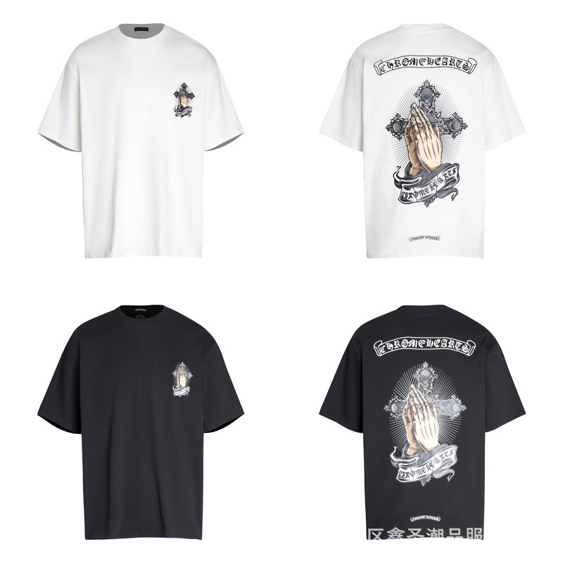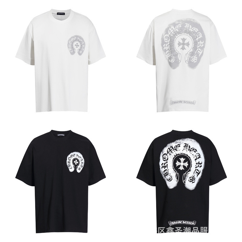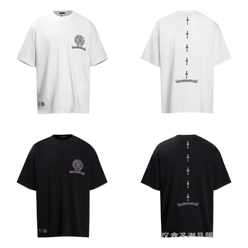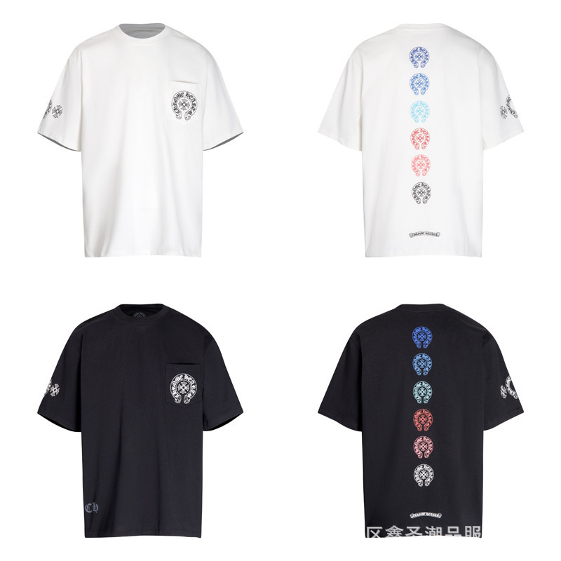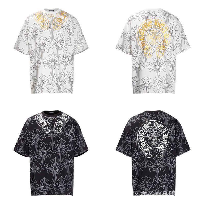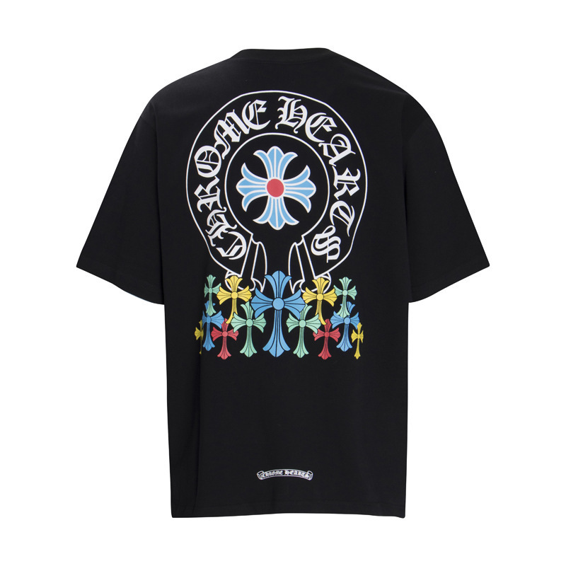 크로스보더 2025 신형 크롬하츠 컬러풀 크로스 프린트 남녀공용 반팔 티셔츠스토어 가기