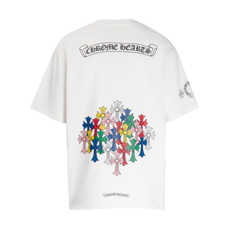 크로스보더 2025 신형 크롬하츠 컬러풀 크로스 프린트 남녀공용 반팔 티셔츠