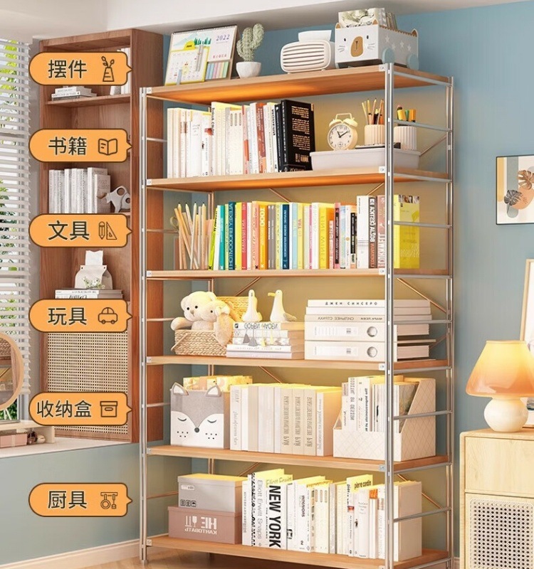 일본식 스토리지 랙 바닥 선반 다층 거실 발코니 책꽂이 간단한 스토리지 랙 주방 전자 레인지 스토리지 랙스토어 가기