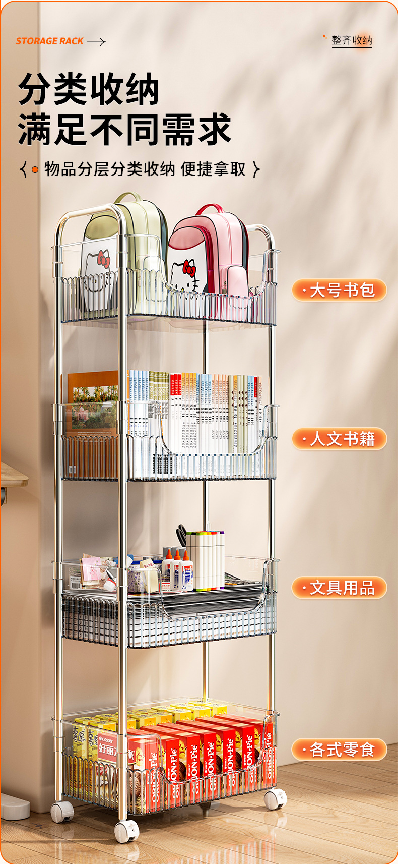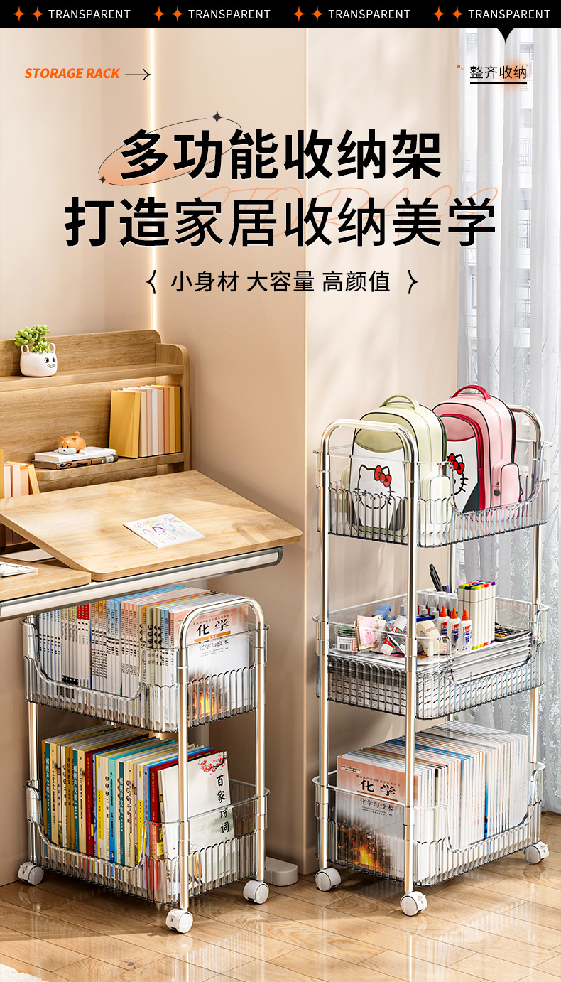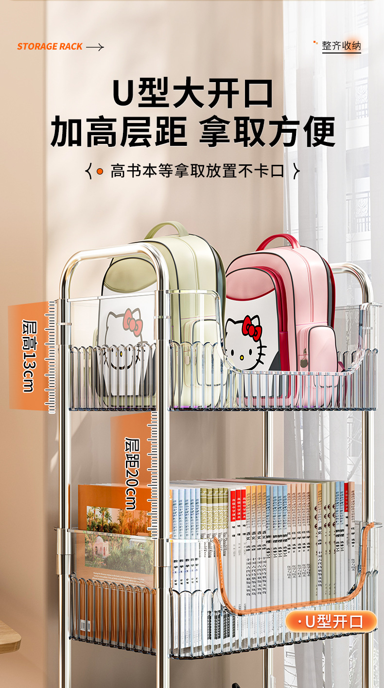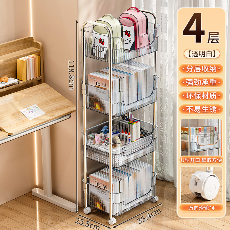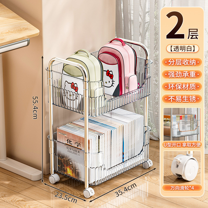 투명 책장 트롤리 스낵 다층 스토리지 랙 책상 아래 스토리지 박스 학교 가방 교과서 아크릴 디스플레이 랙