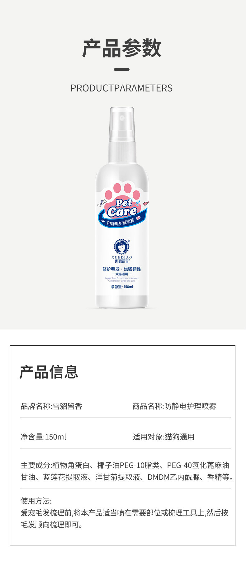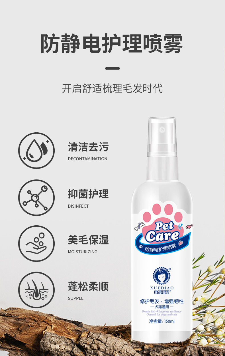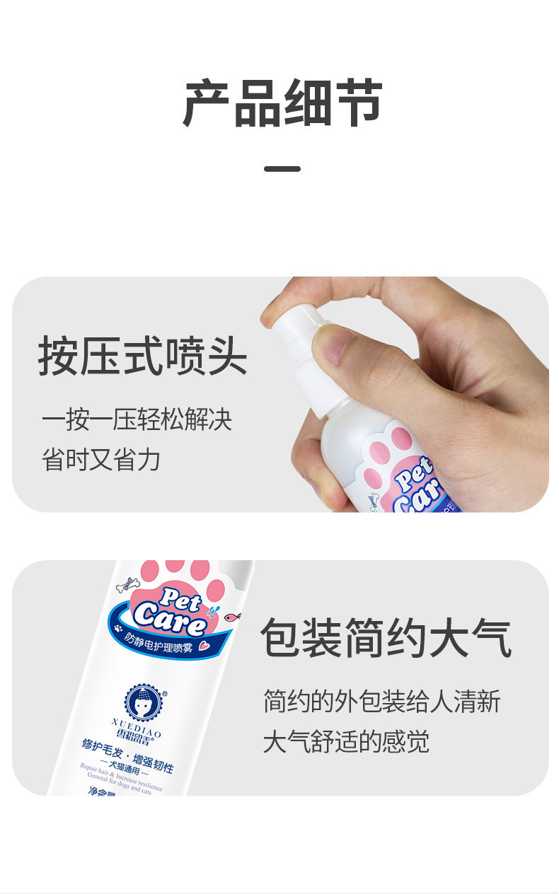 스노우피펫 애완동물 정전기 방지 스프레이, 엉킨 털을 풀어주는 스프레이, 털을 부드럽게 하고, 고양이와 강아지의 털을 촉촉하게 관리하는 제품스토어 가기