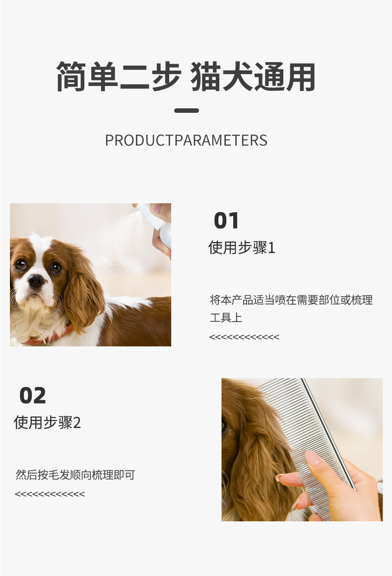 스노우피펫 애완동물 정전기 방지 스프레이, 엉킨 털을 풀어주는 스프레이, 털을 부드럽게 하고, 고양이와 강아지의 털을 촉촉하게 관리하는 제품