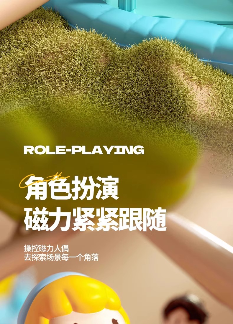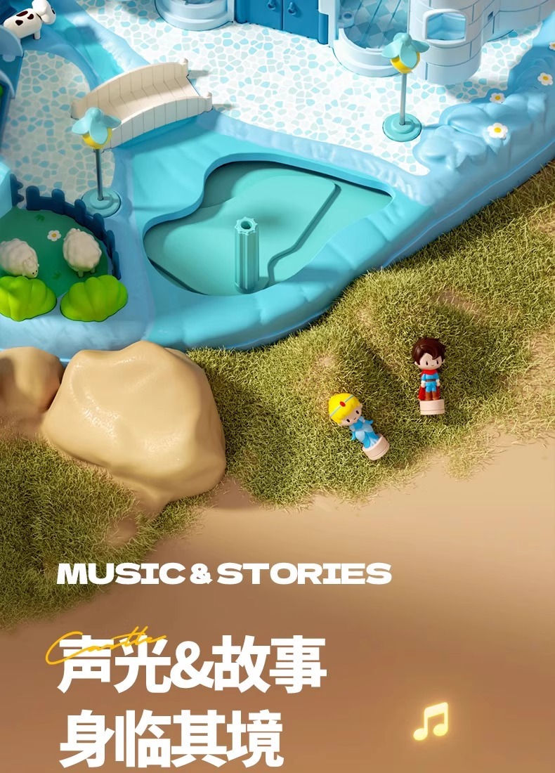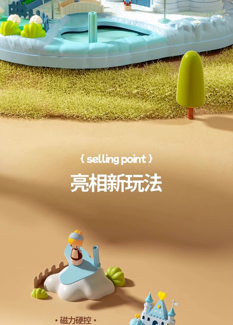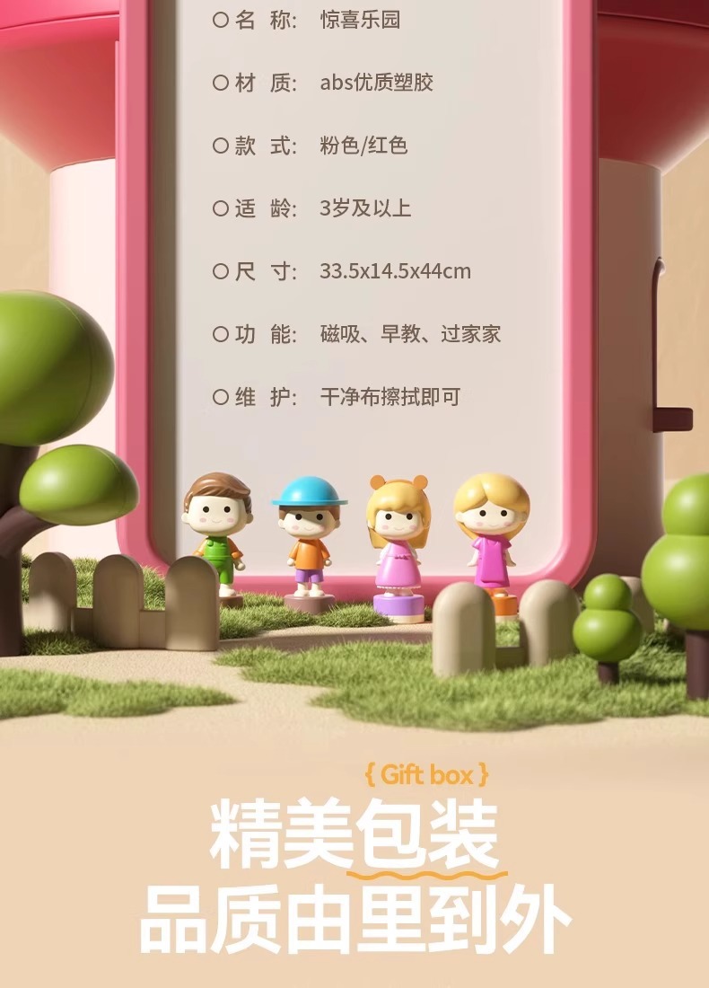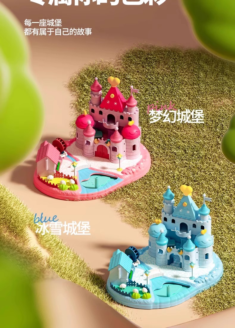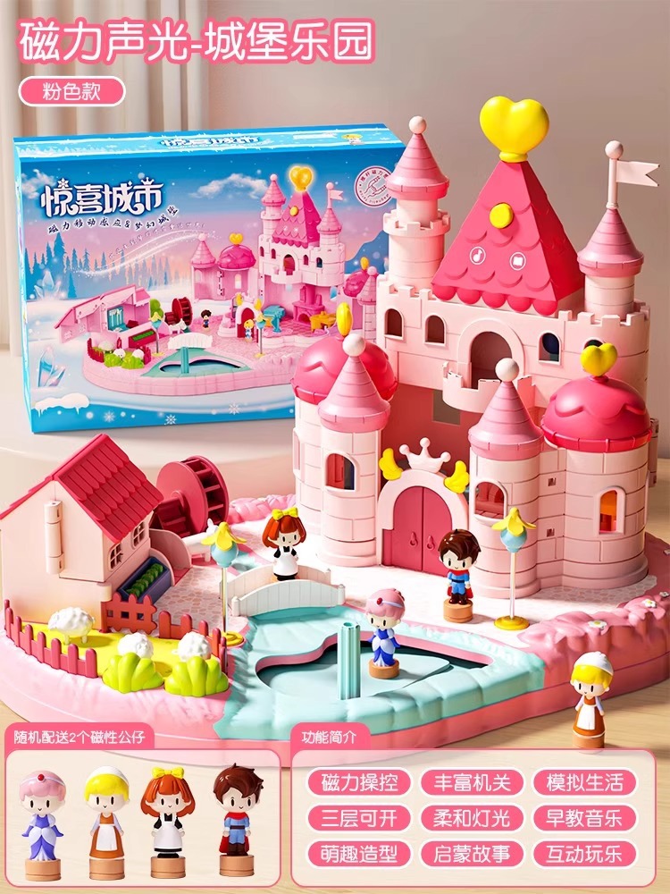 • [고급스럽고 절묘한 선물 상자] 크고 시끄럽고 밝은 핑크색 공주 성 놀이 공원 - 자기 유도 [자기 인형 2개 포함.]