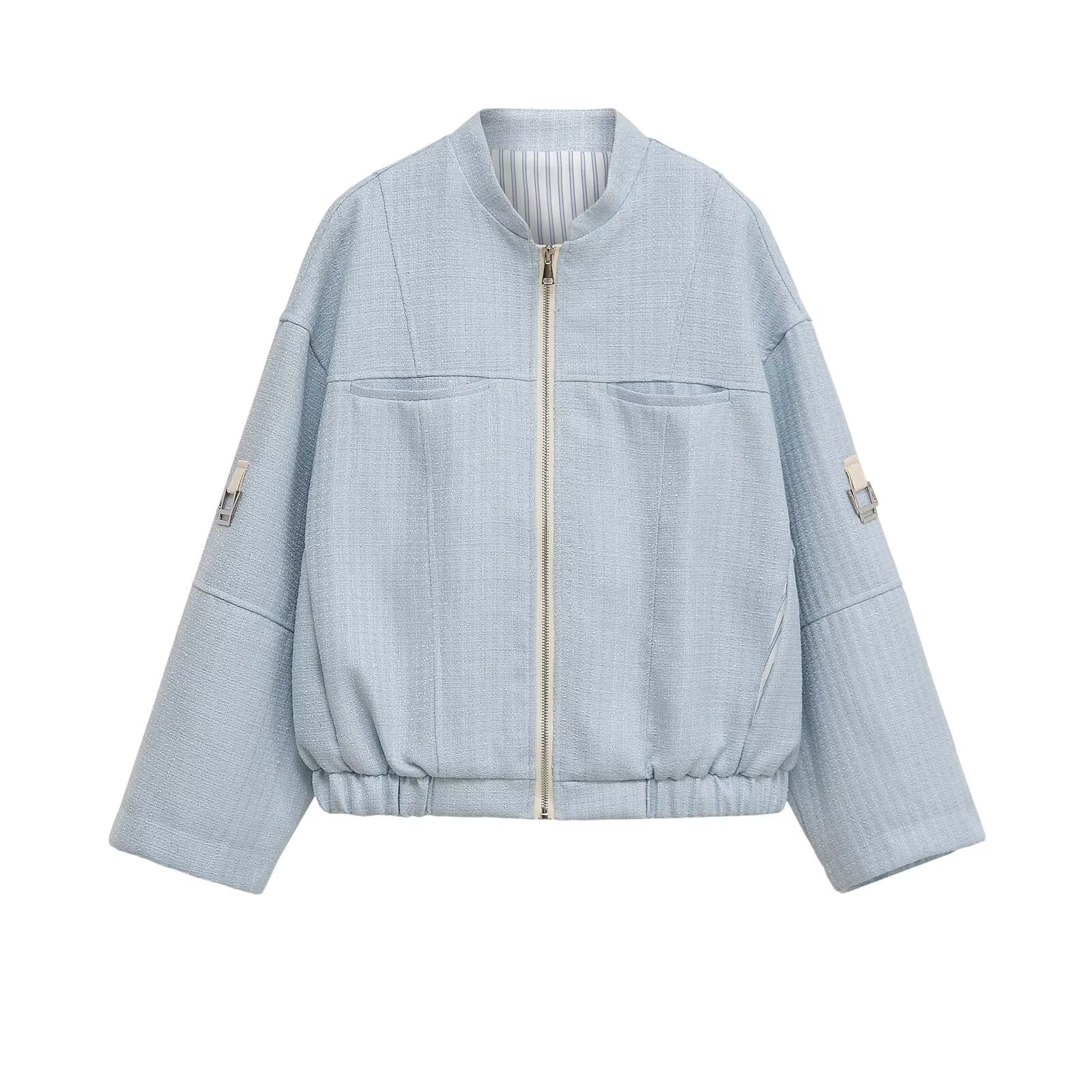 PB&ZA 여성 2025 여름 신작 유럽과 미국 스타일의 맞춤형 스트리트 메탈릭 재킷 3053136
