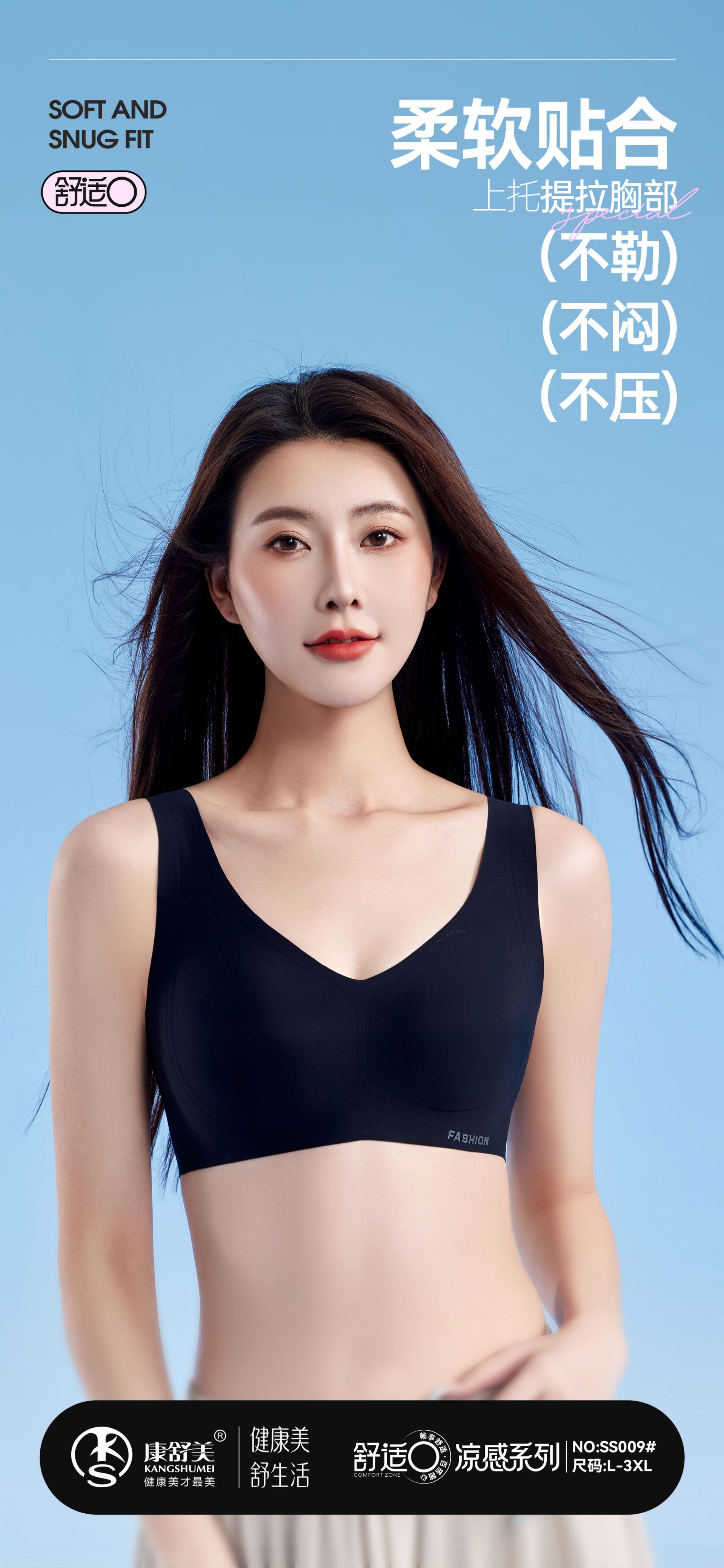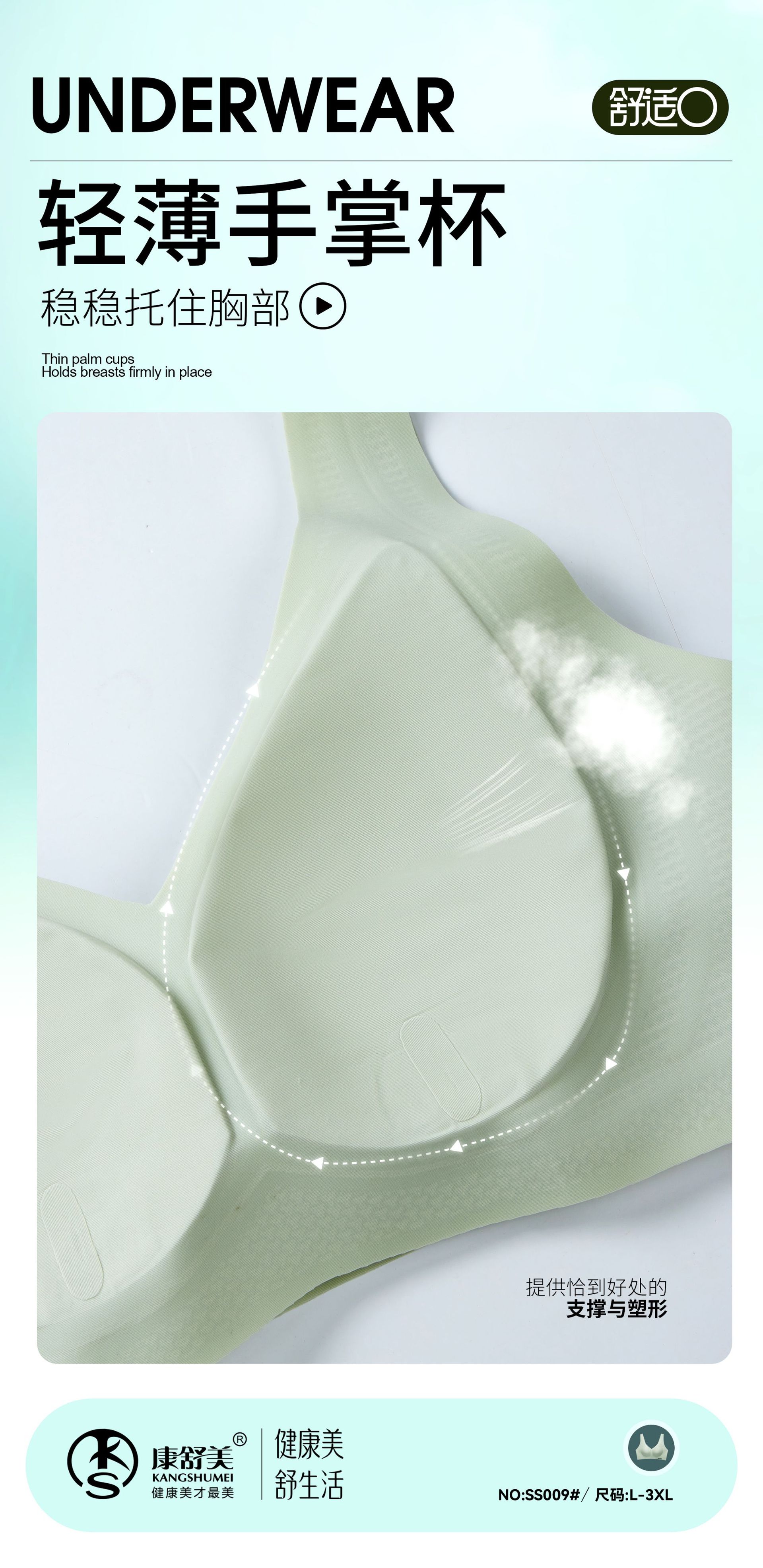 여성용 정품 S009BC 컵 아이스 누드 조끼 스타일 속옷, 매끄럽고 편안하며 큰 가슴이 더 작아 보이고 빈 컵이 없는 브라