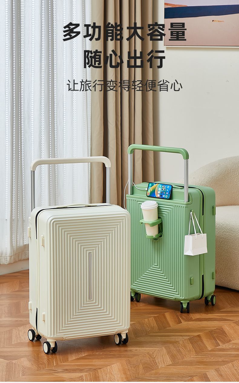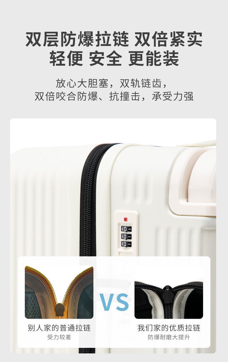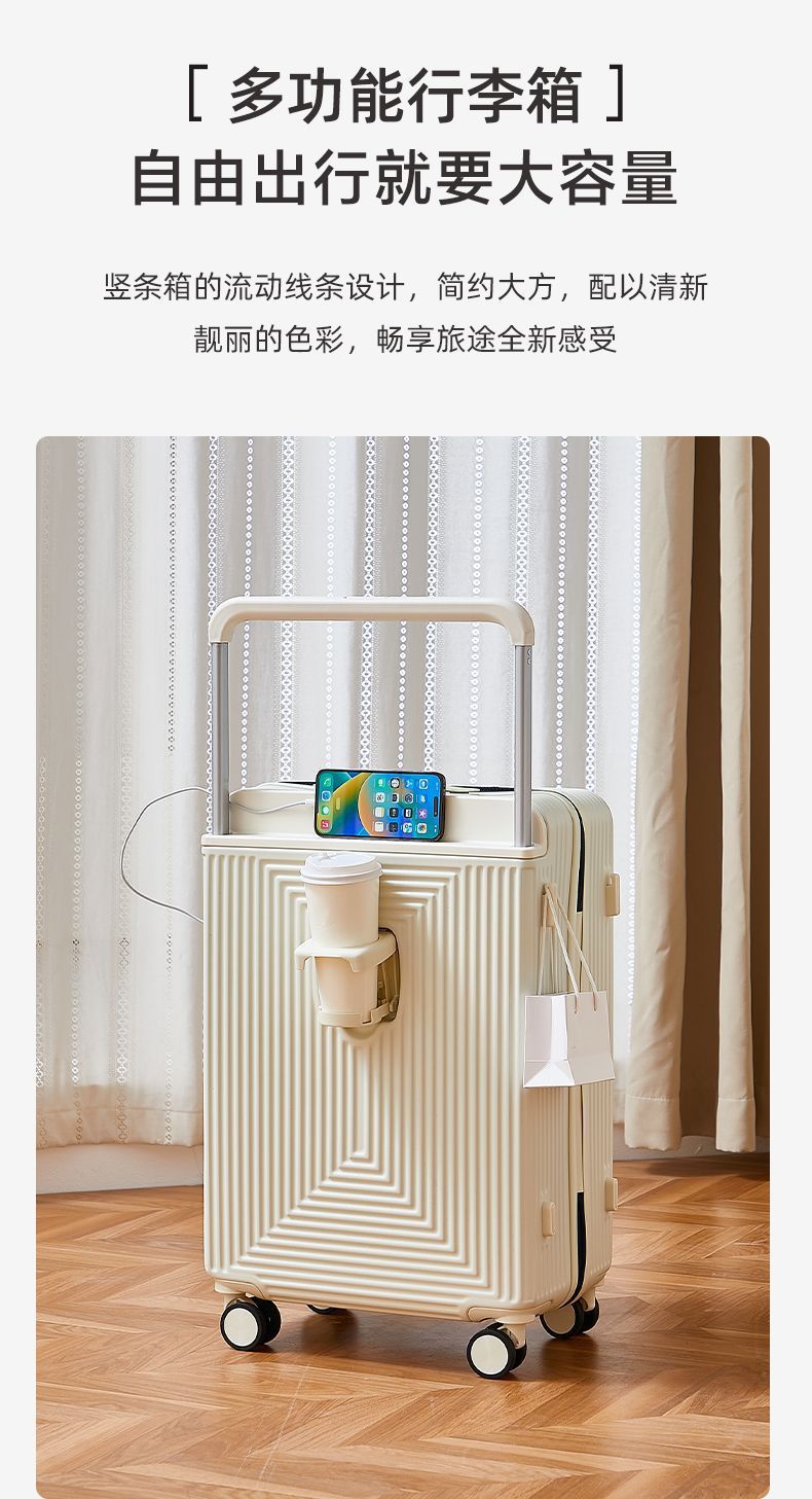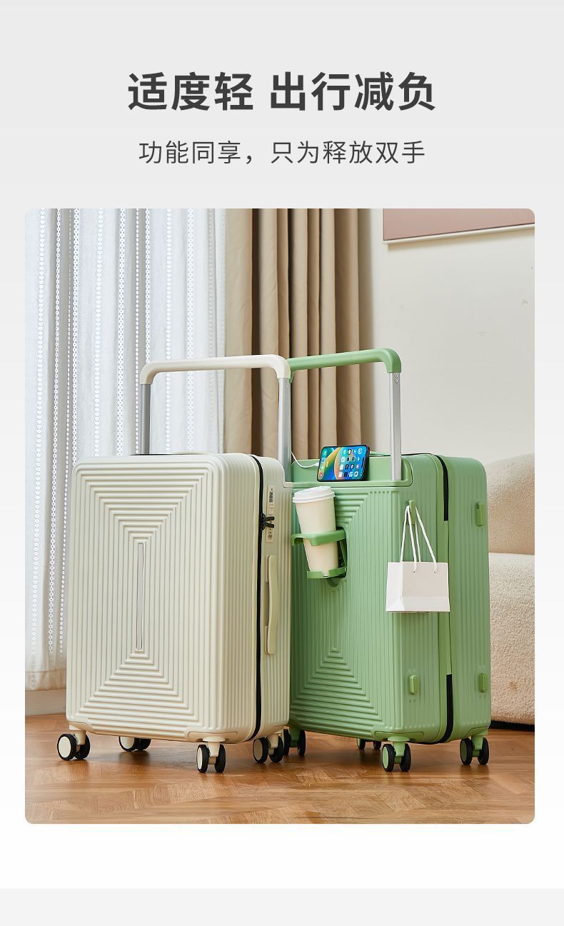 새로운 와이드 트롤리 케이스, 여성용 이중층 방폭형 지퍼 가방, 대용량 강철 베어링 샤프트, 범용 휠, 비밀번호 가방스토어 가기