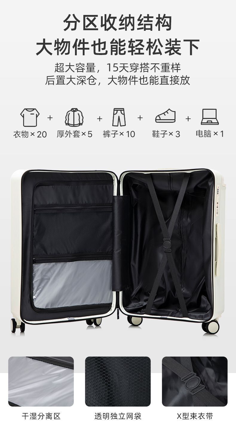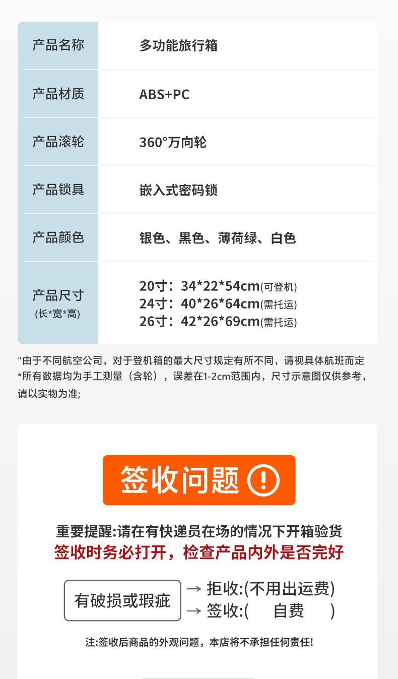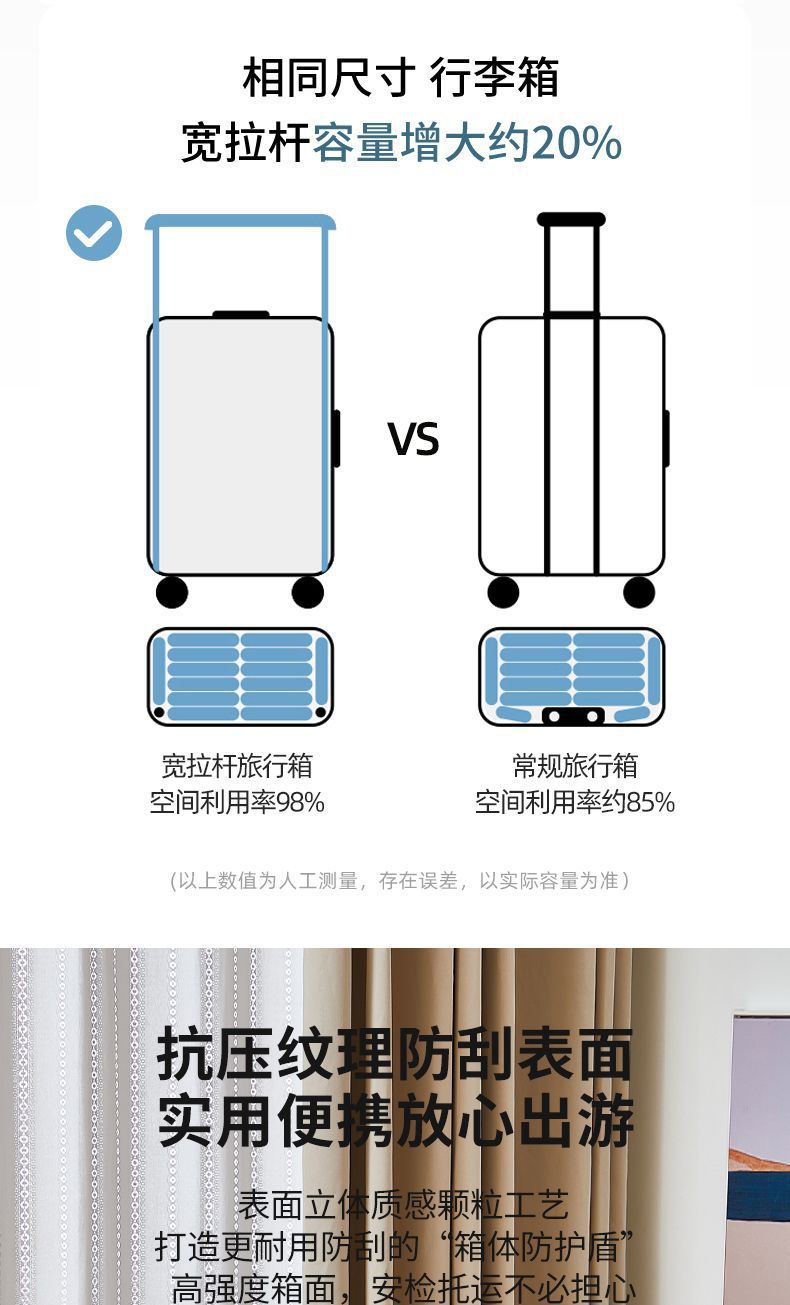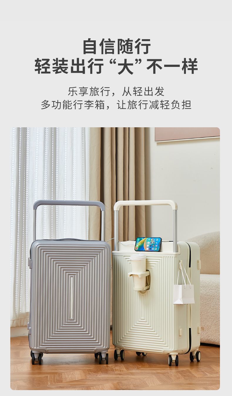 새로운 와이드 트롤리 케이스, 여성용 이중층 방폭형 지퍼 가방, 대용량 강철 베어링 샤프트, 범용 휠, 비밀번호 가방스토어 가기