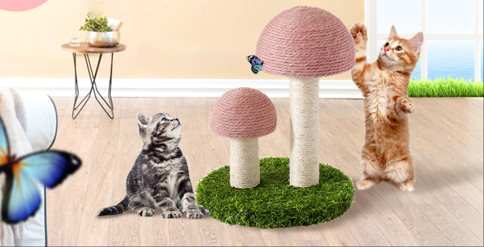버섯 고양이 클라이밍 프레임, 소나무 꼬리고양이 발톱 연삭기, 고양이 스크래치 컬럼, 내마모성 및 비분해성 고양이 장난감, 국경 간 대외 무역 도매스토어 가기