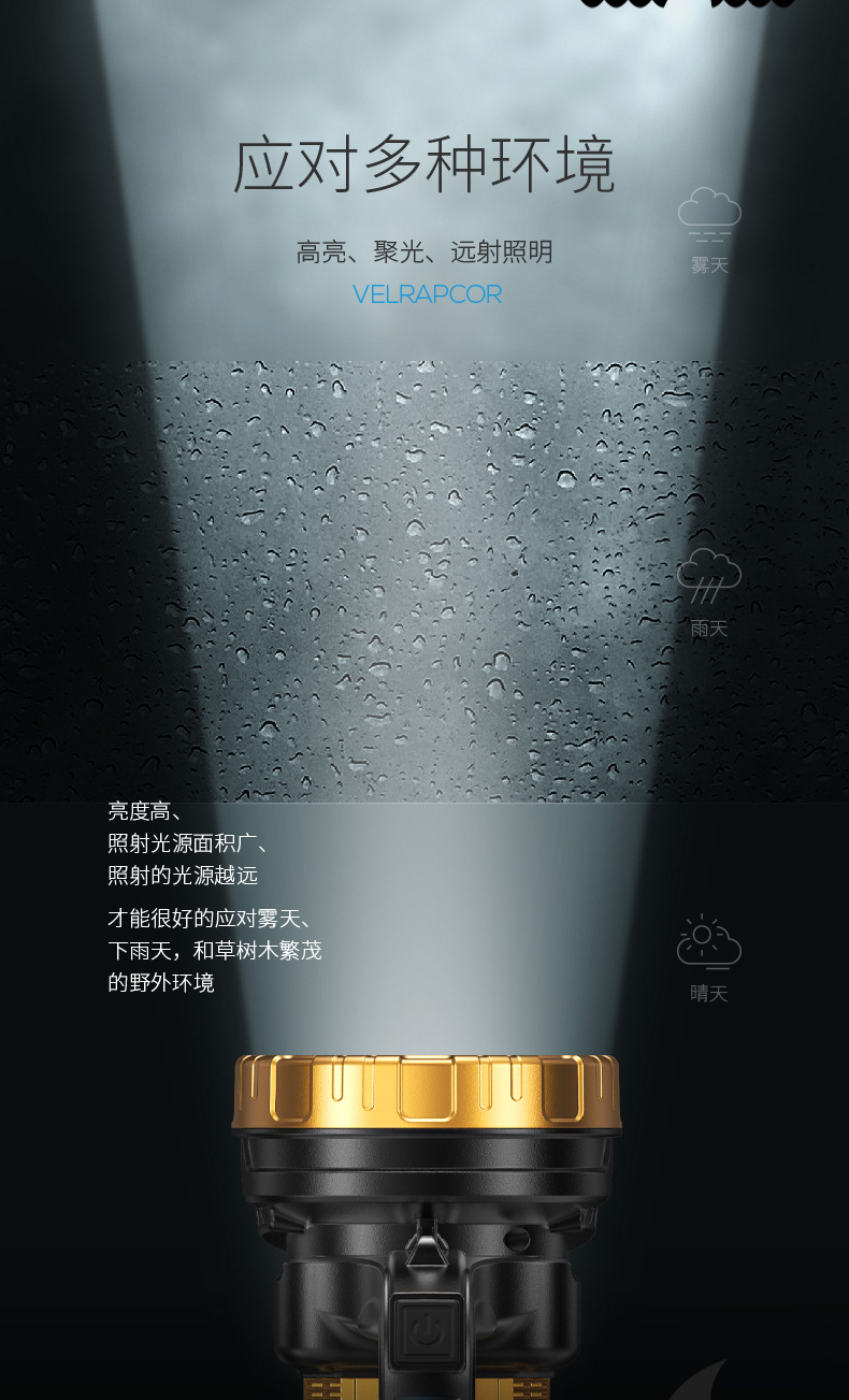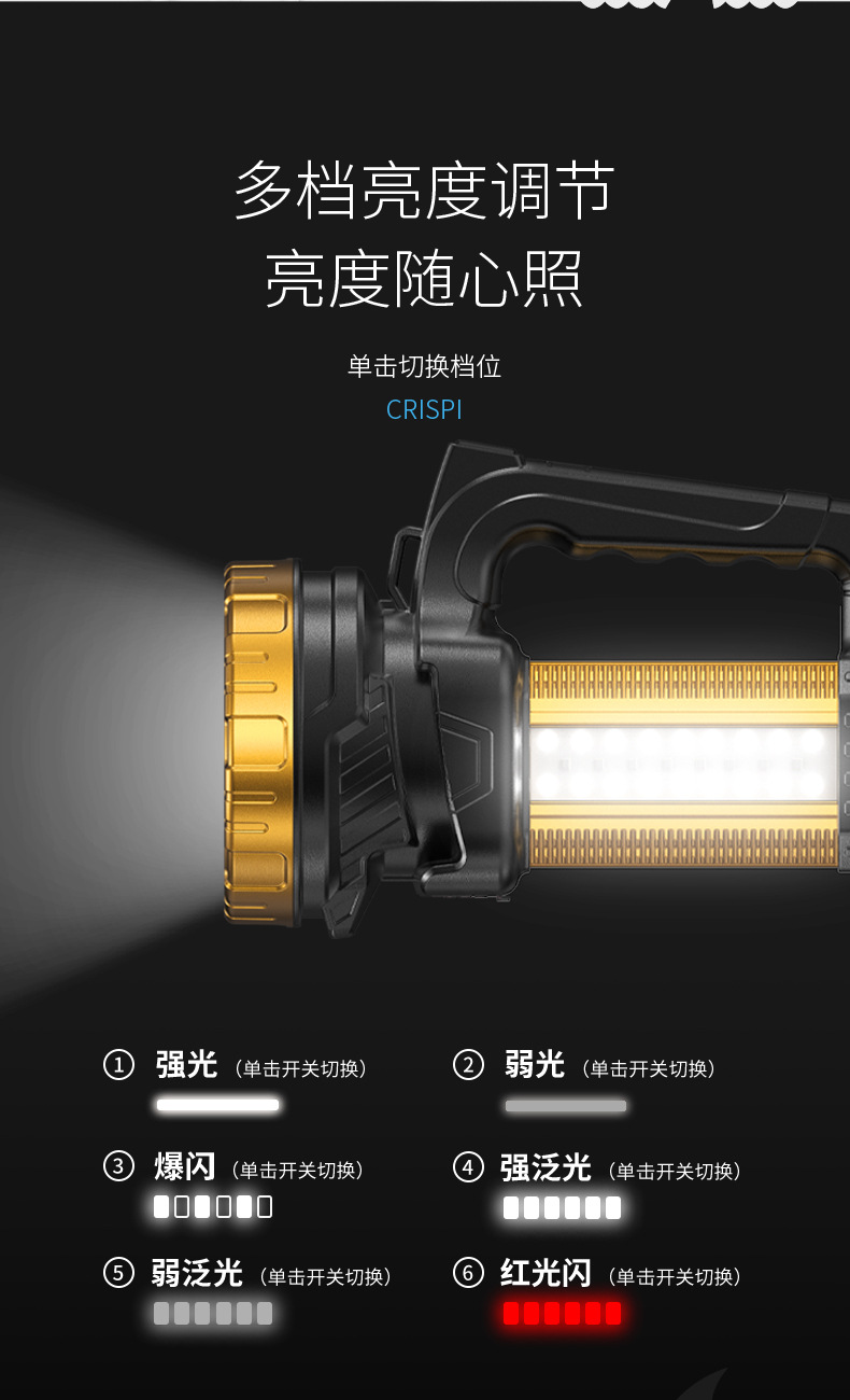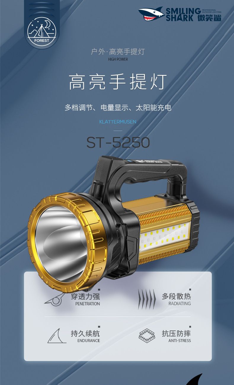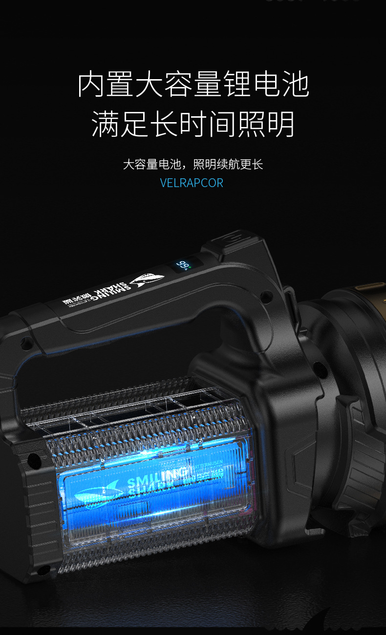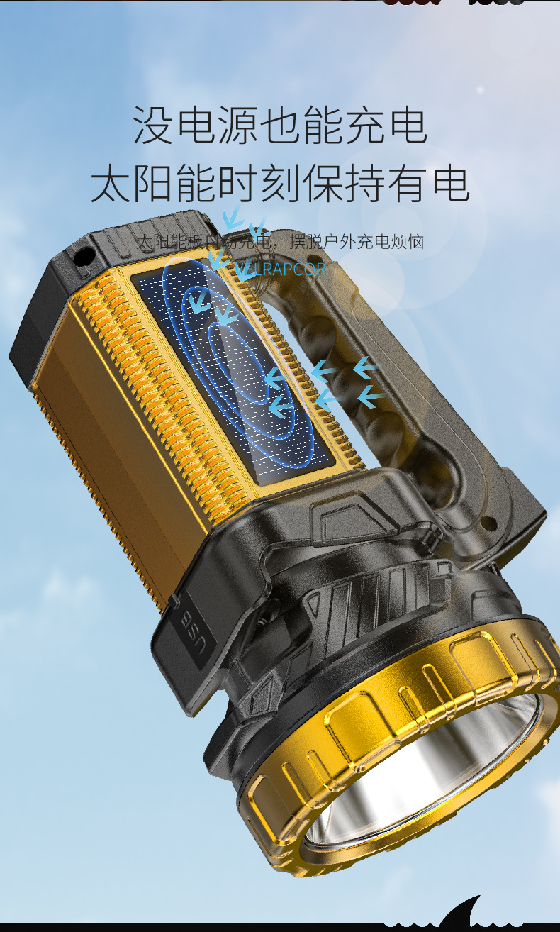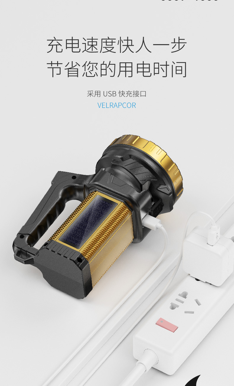 태양 야외 조명 휴대용 램프 탐조등 측면 조명 디지털 전기 디스플레이 충전 오래 지속되는 작업 조명