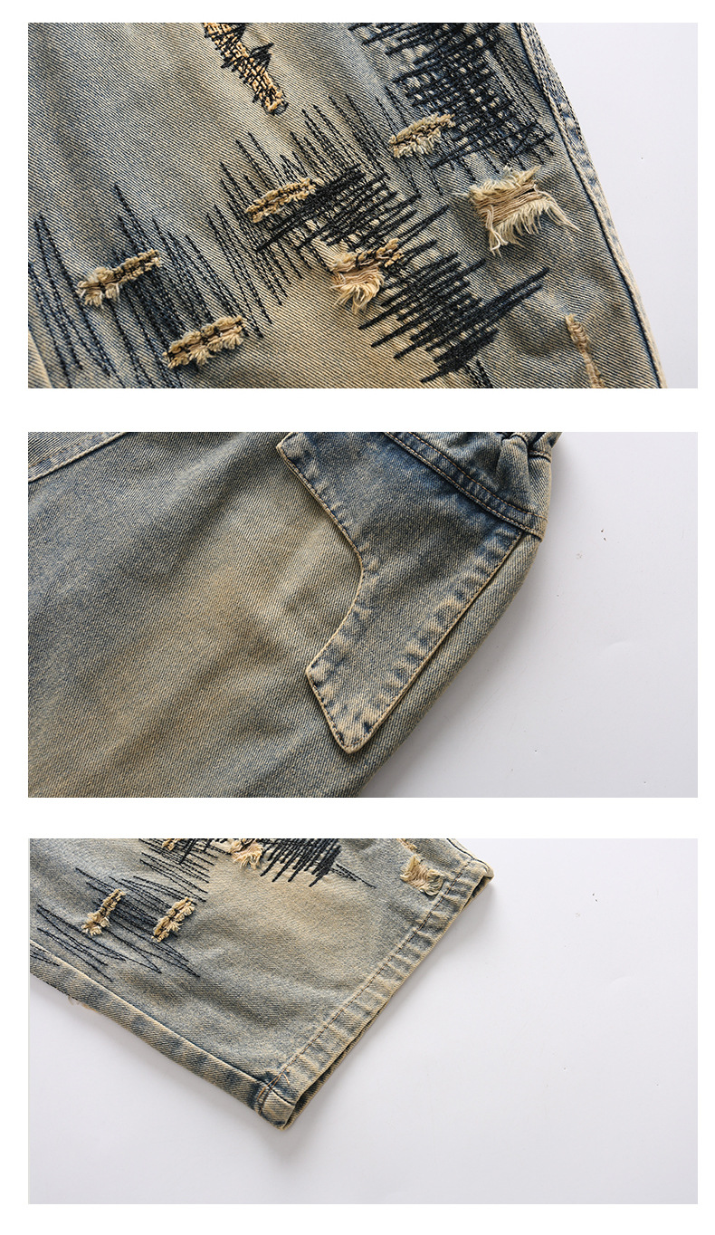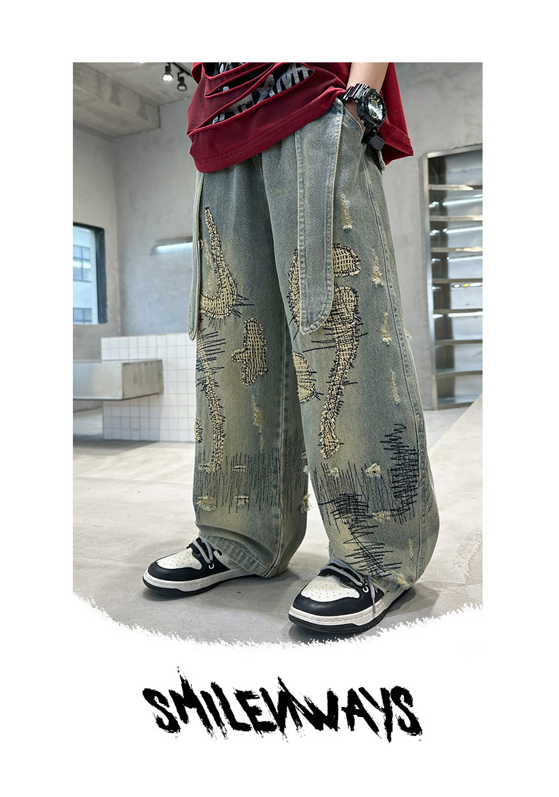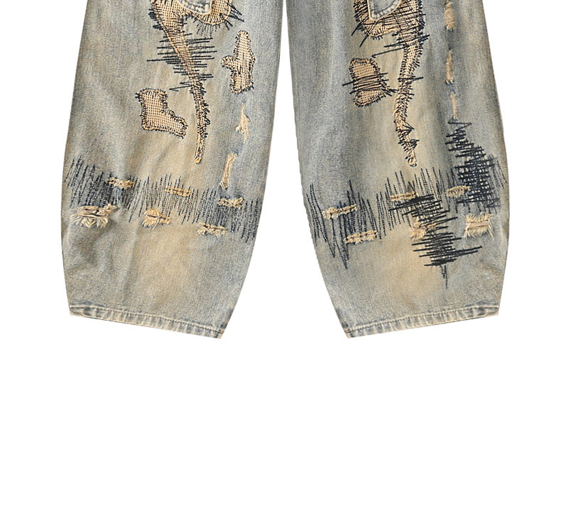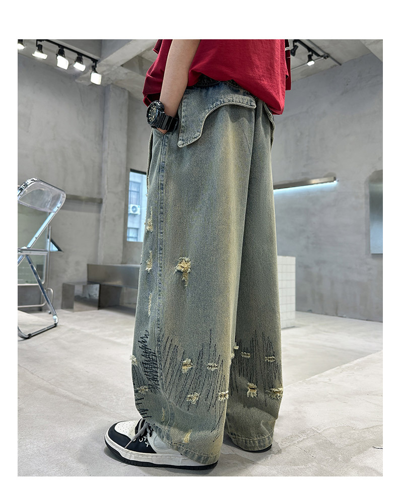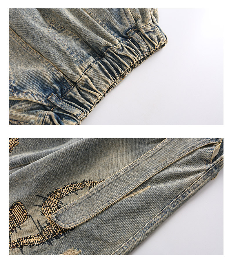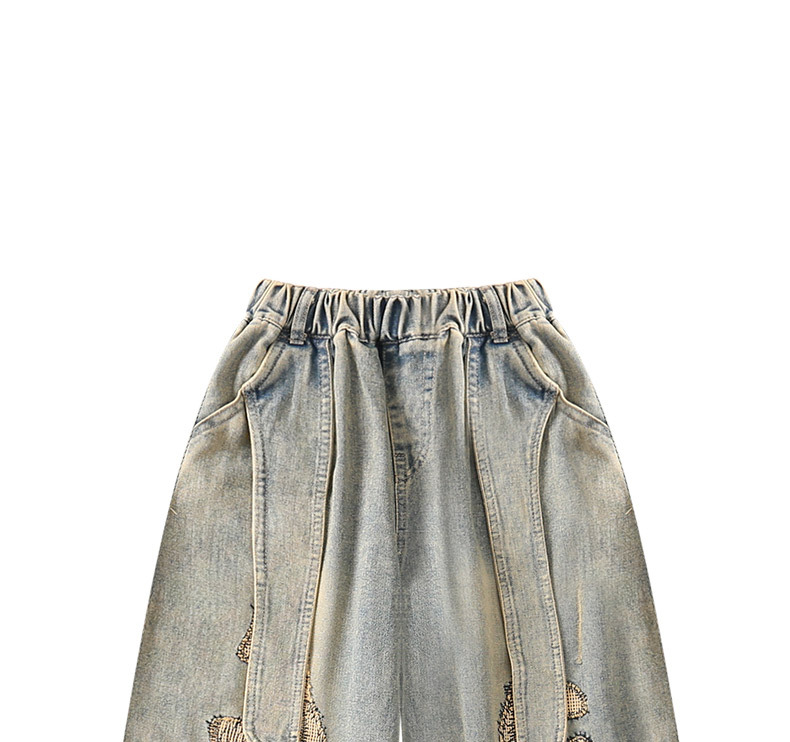 남아용 자수 데님 팬츠, 사계절용 아동용 웨이브 팬츠, 중대형 아동용, 멋스럽고 패셔너블하며 부드럽고 가볍고 답답하지 않음스토어 가기