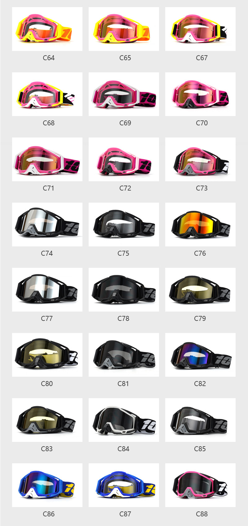 • C68 노란색 주황색 프레임 녹색 코 패드 빨간색 필름
