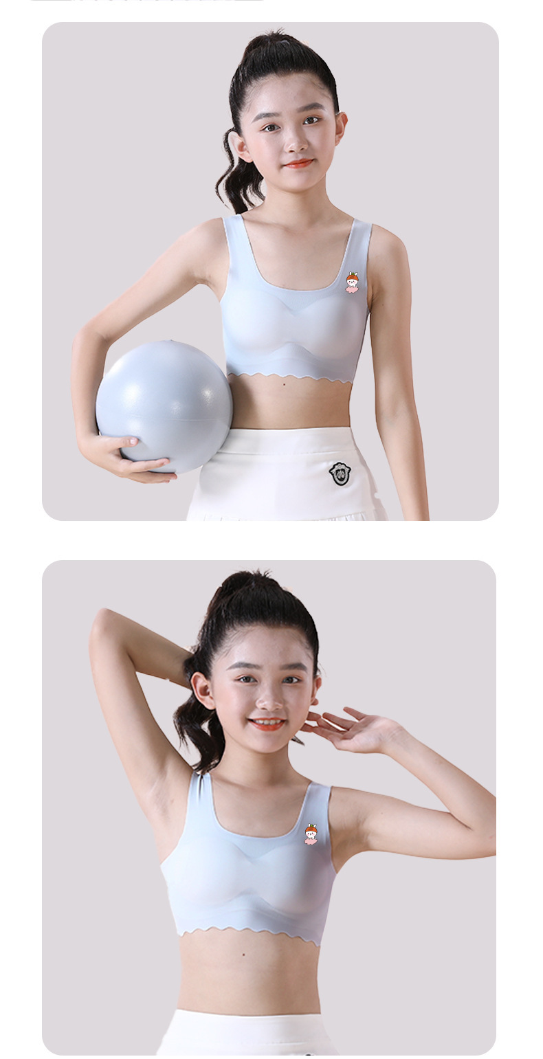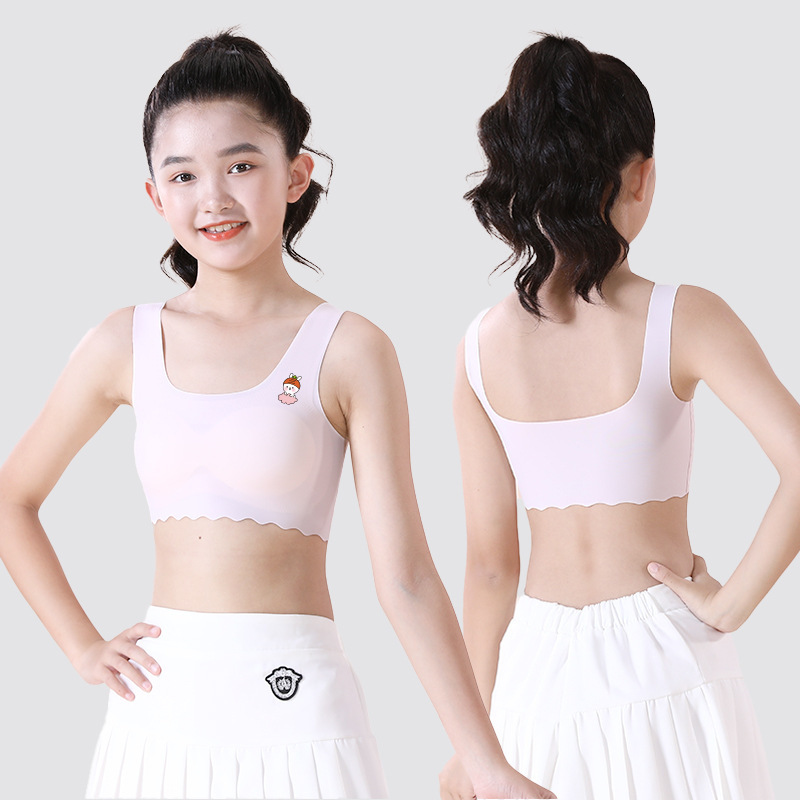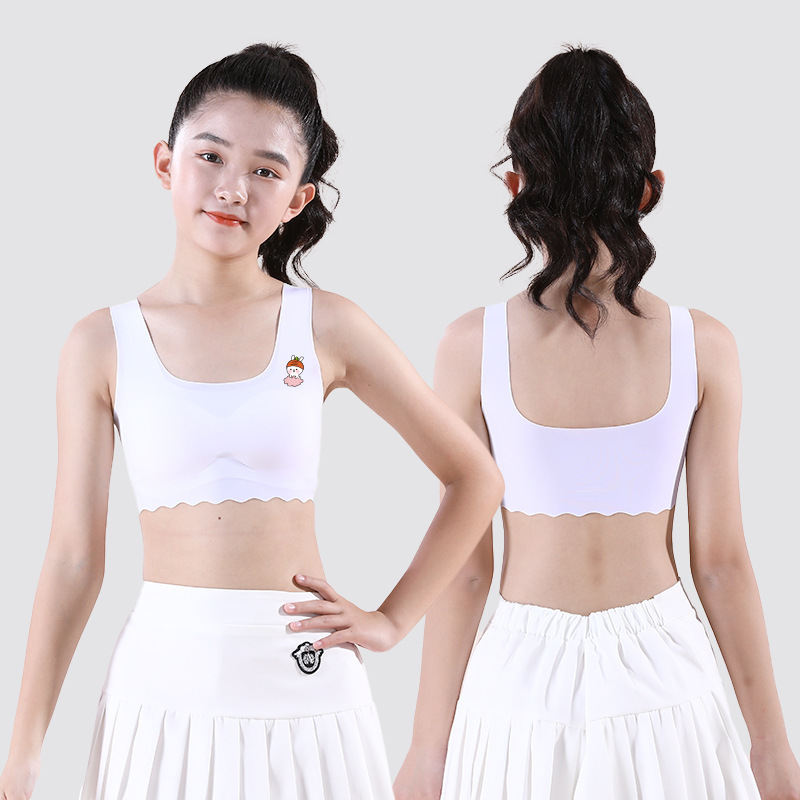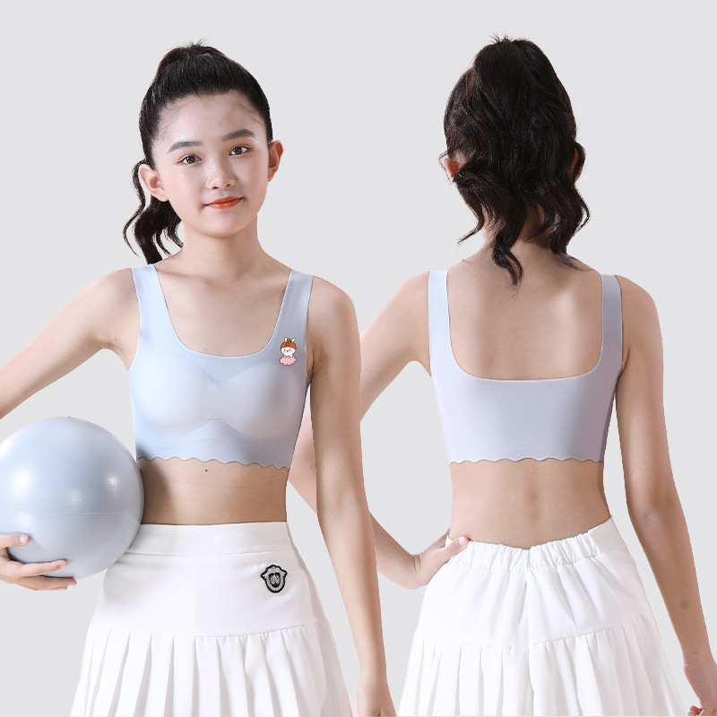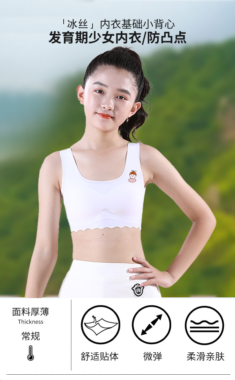 여학생용 아이스 실크 속옷, 중학생, 여아, 초등학생, 조끼, 스포츠 얇은 튜브탑