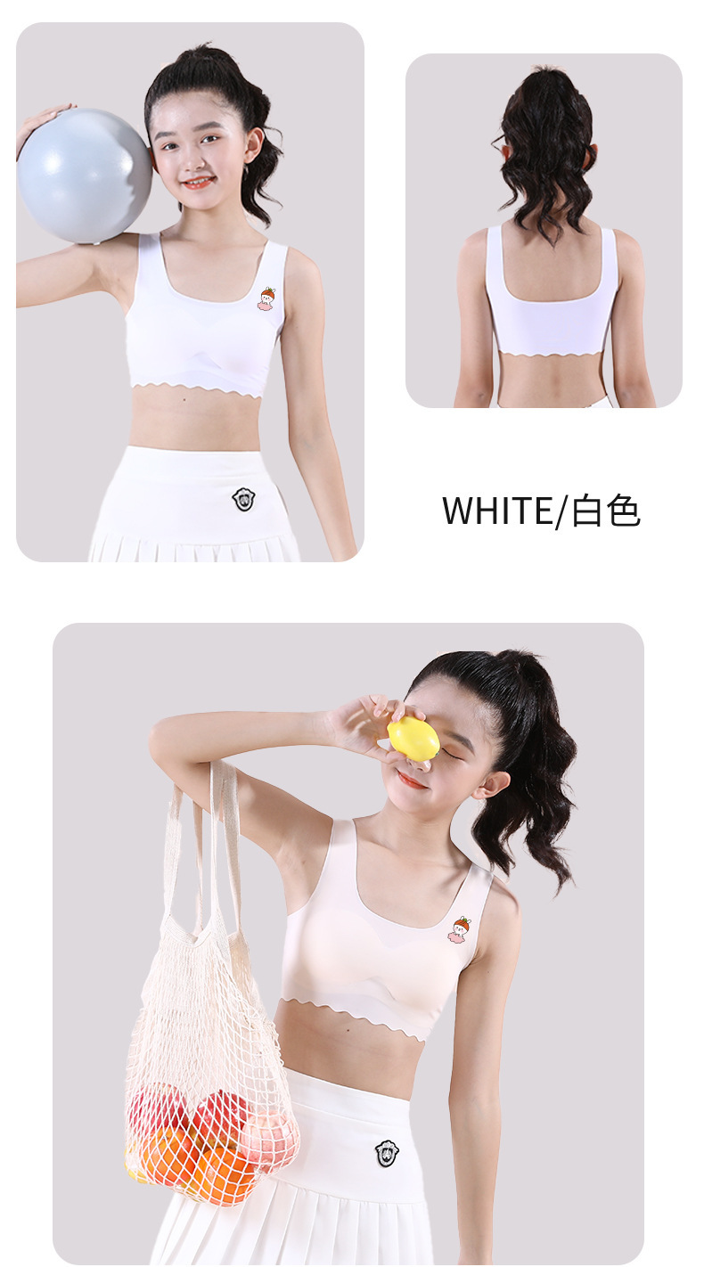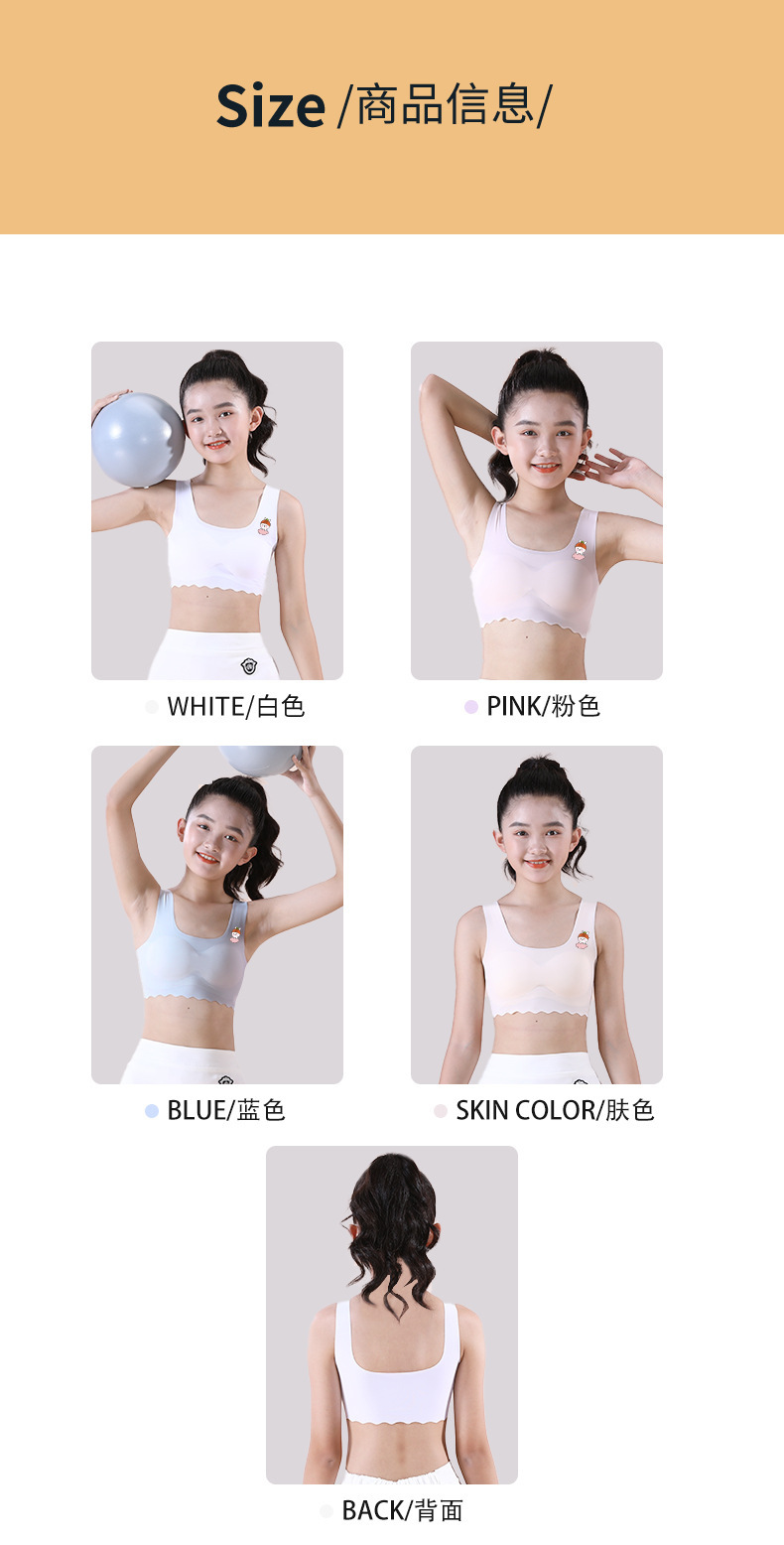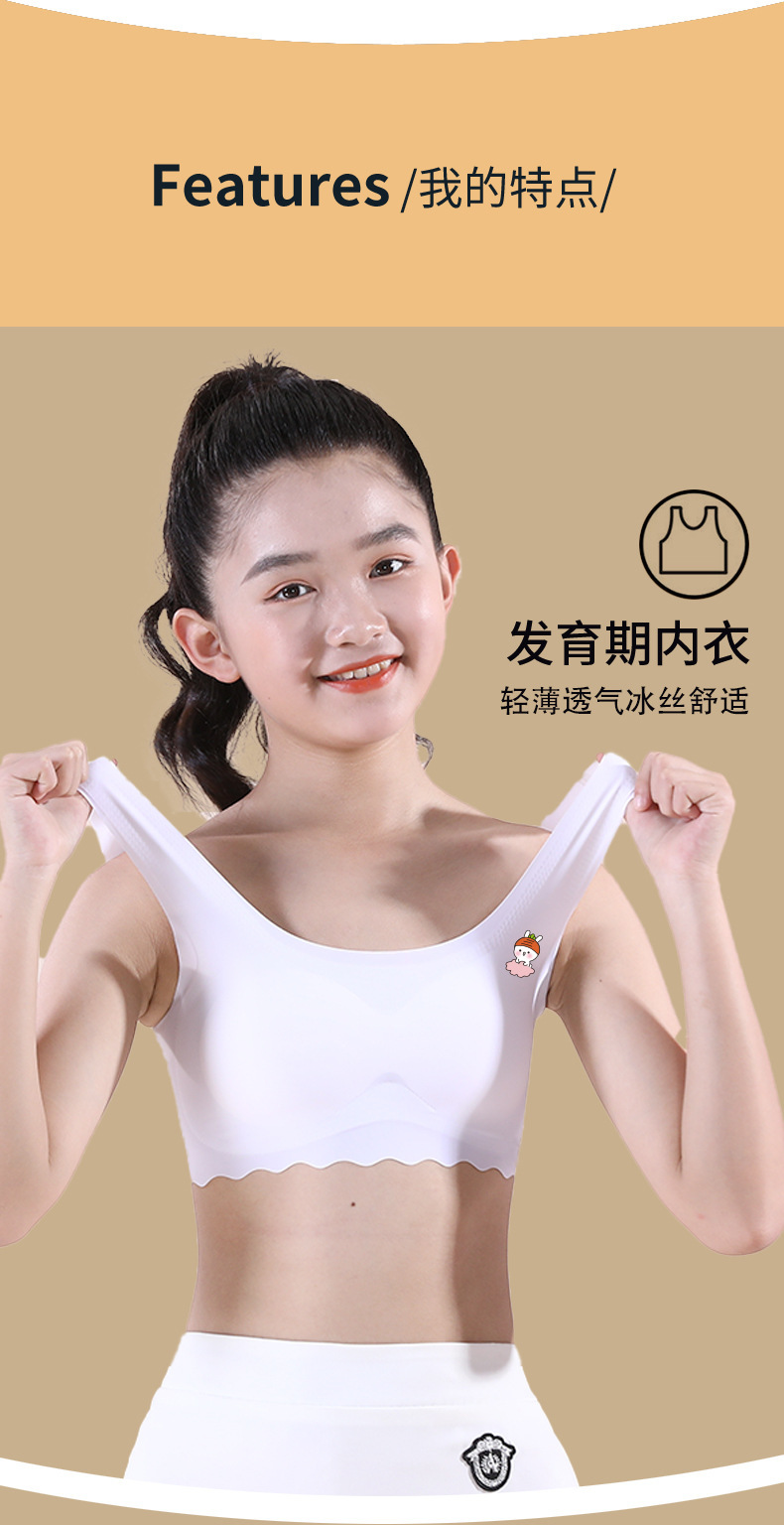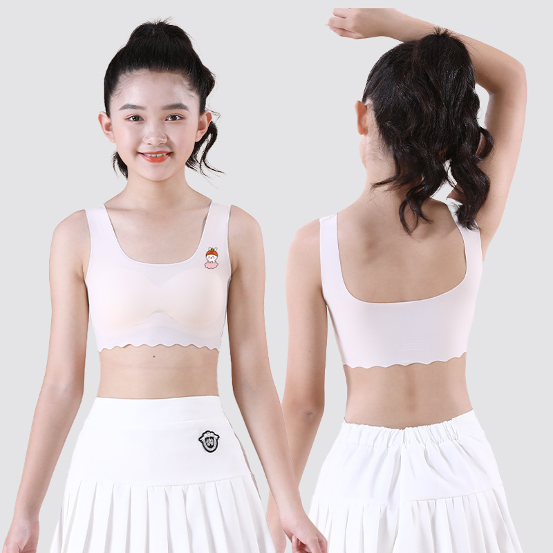 여학생용 아이스 실크 속옷, 중학생, 여아, 초등학생, 조끼, 스포츠 얇은 튜브탑