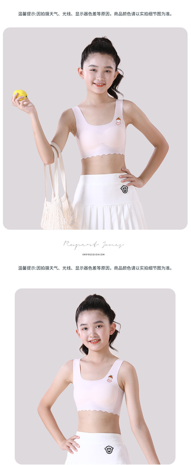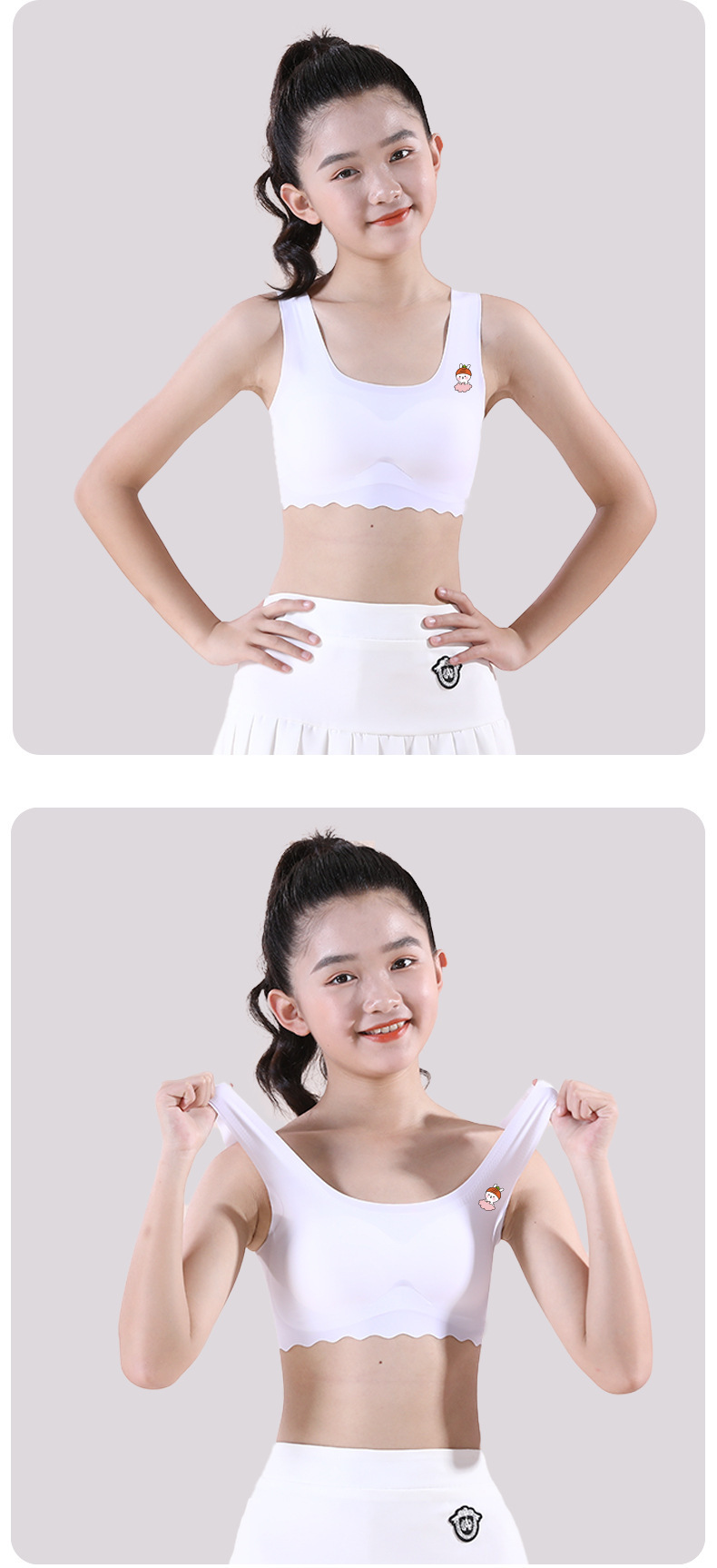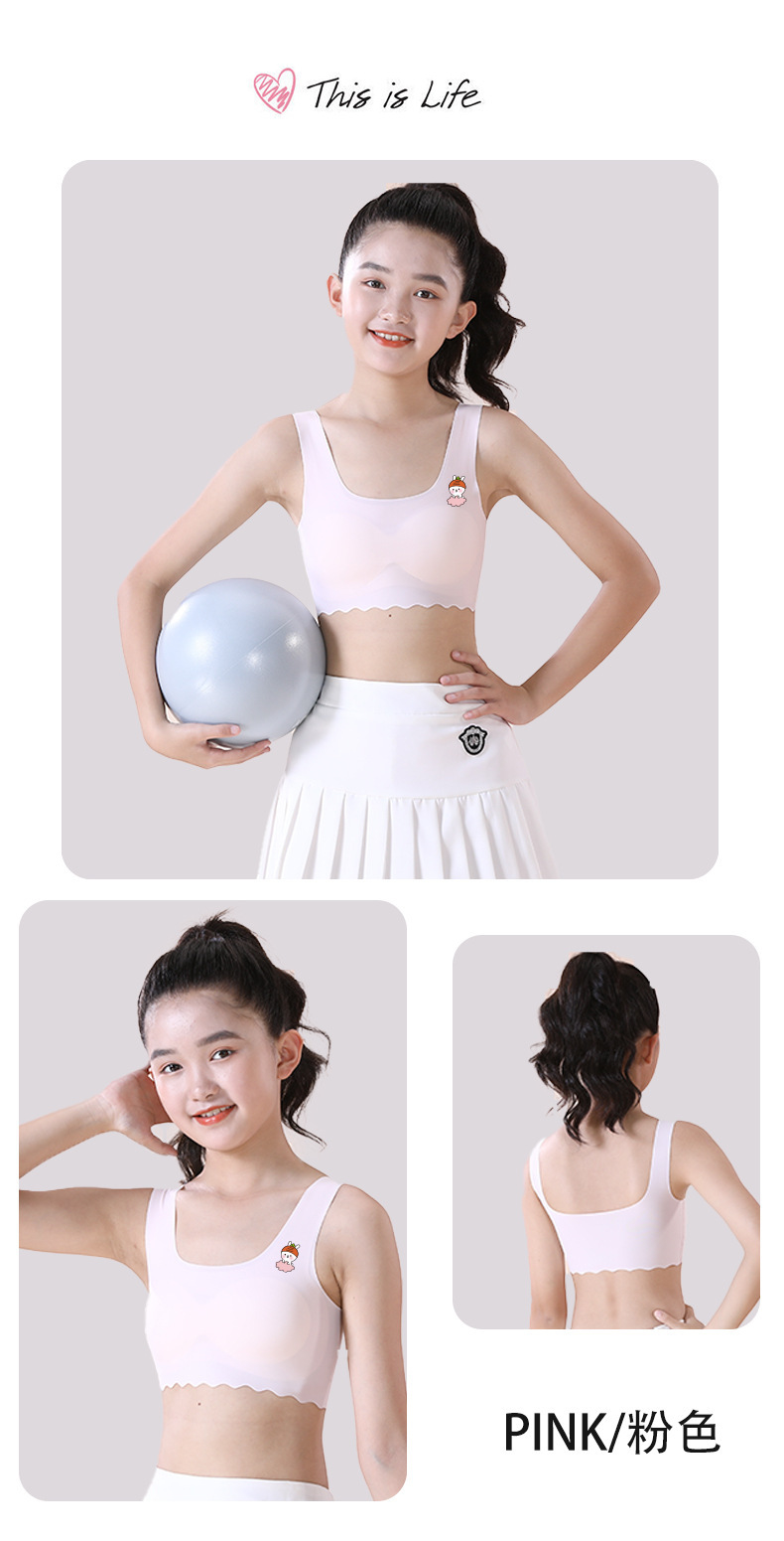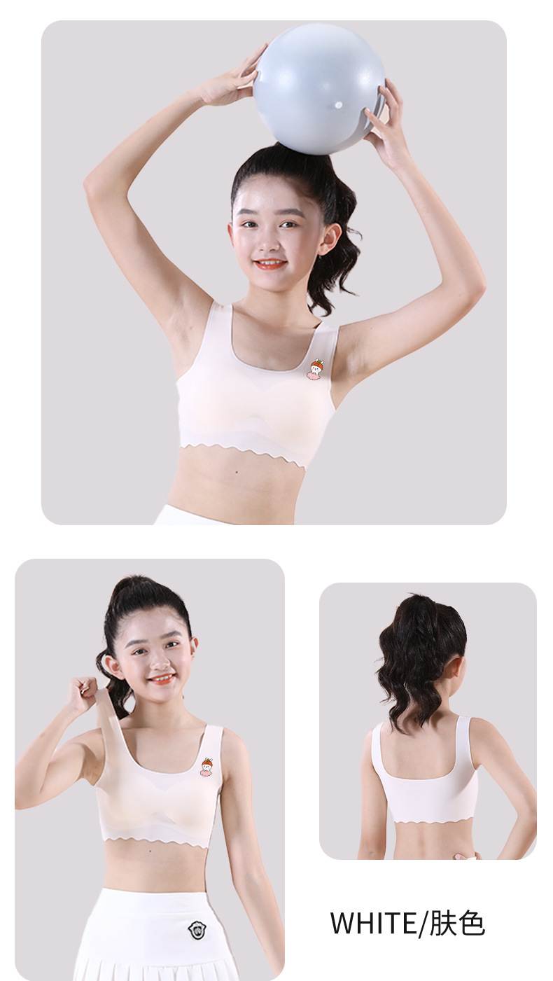 여학생용 아이스 실크 속옷, 중학생, 여아, 초등학생, 조끼, 스포츠 얇은 튜브탑