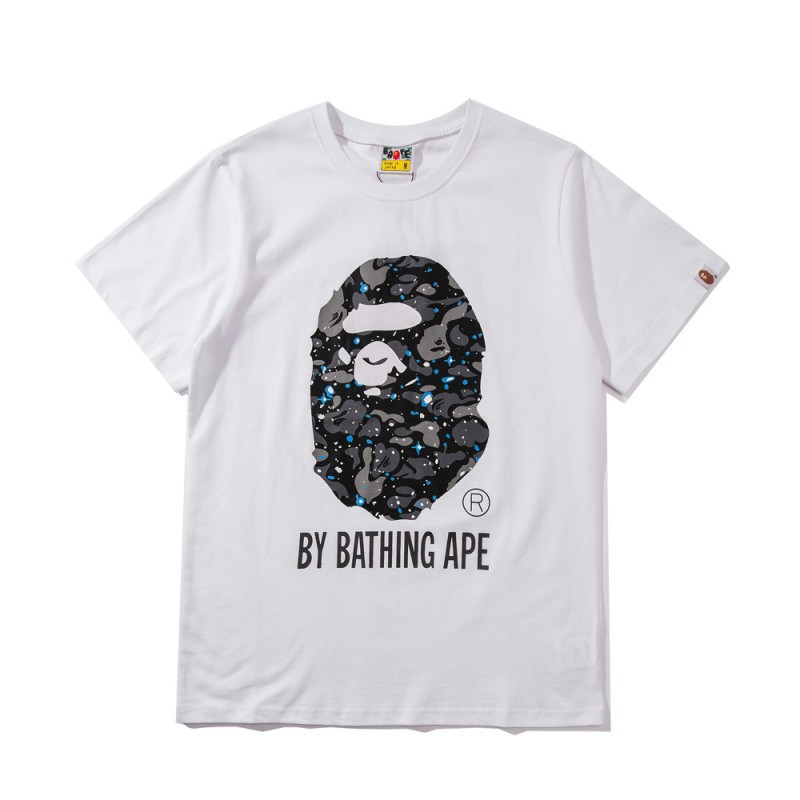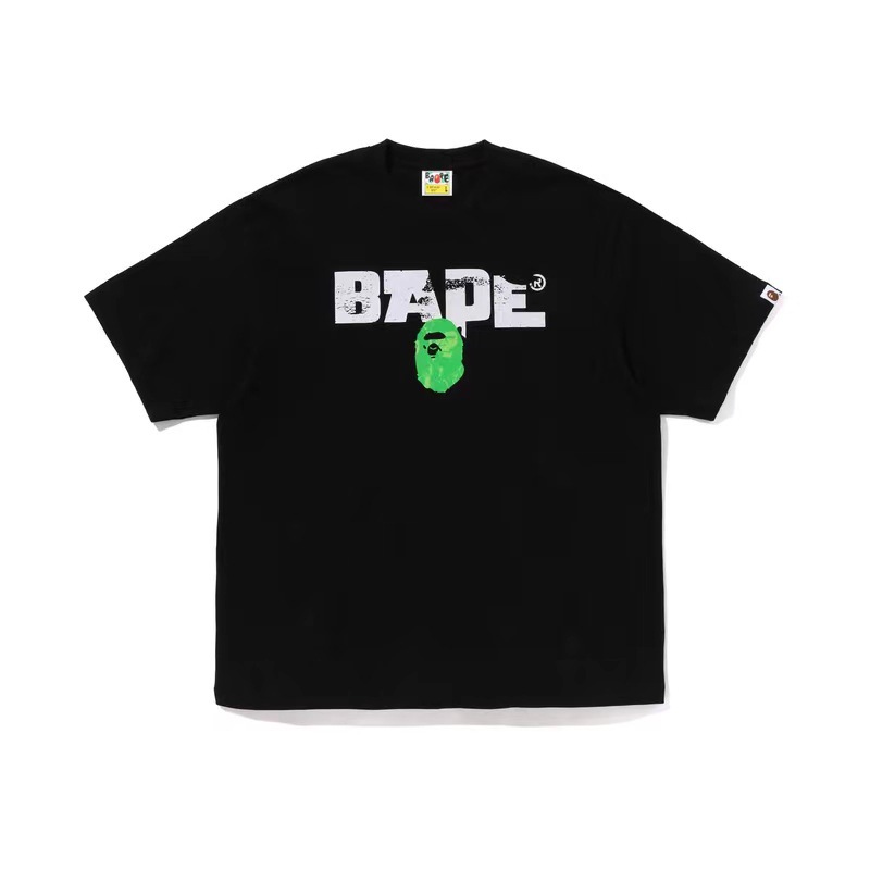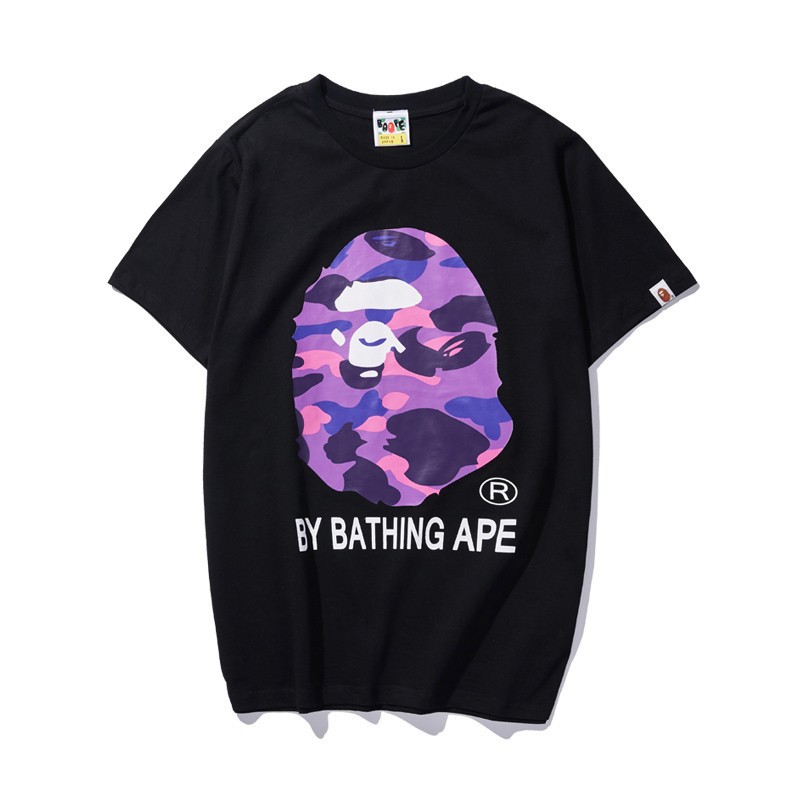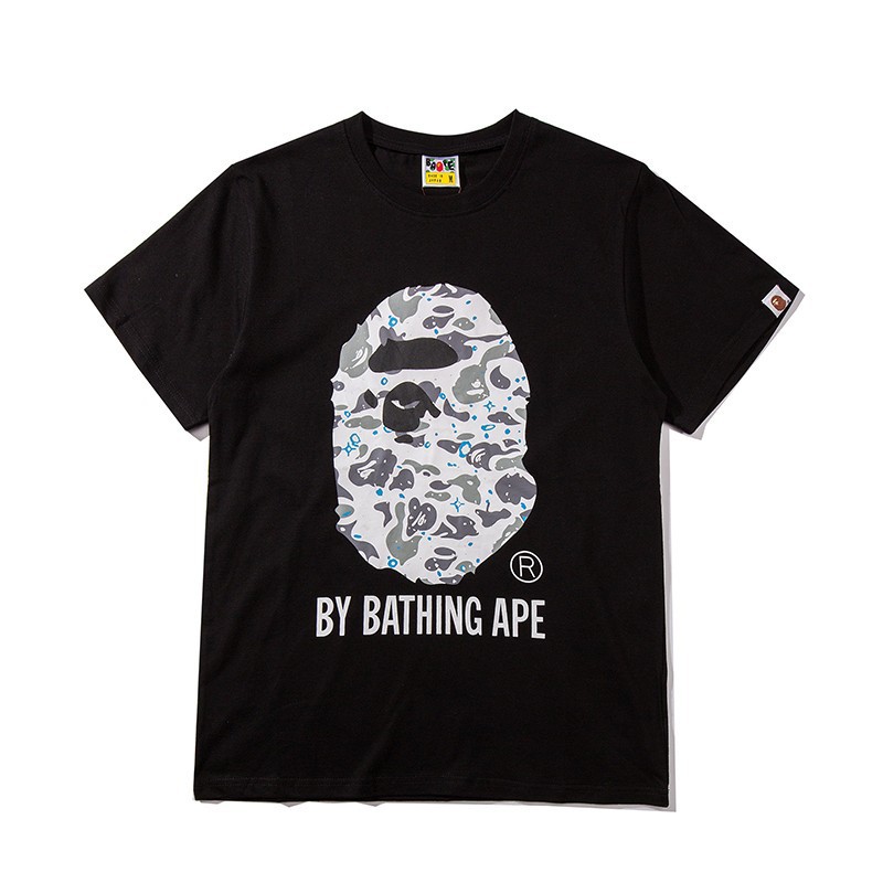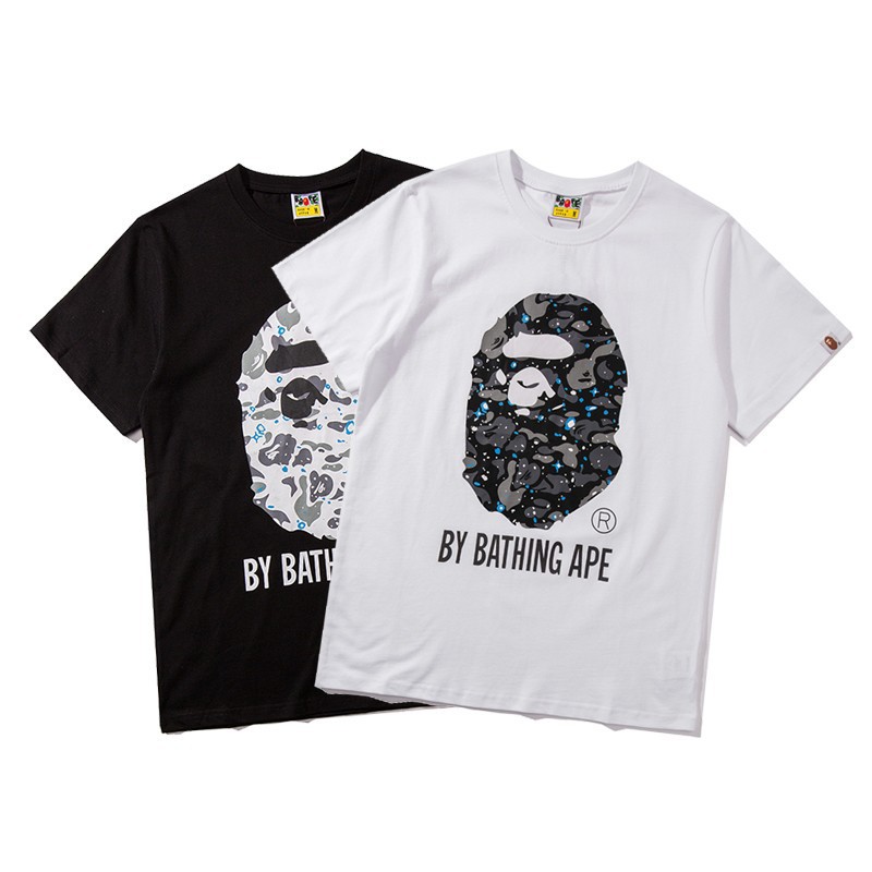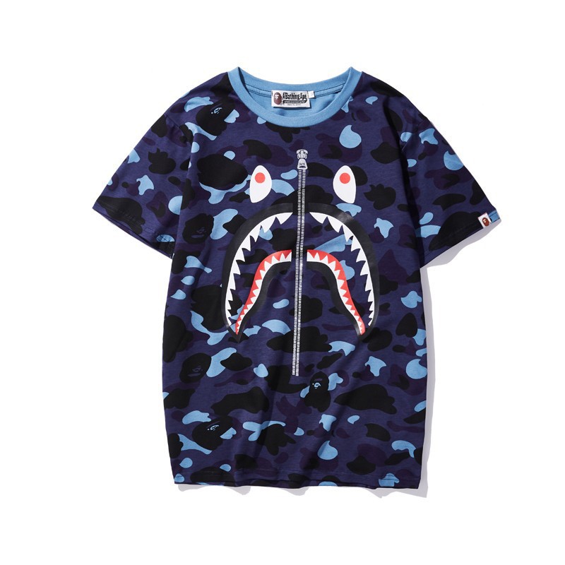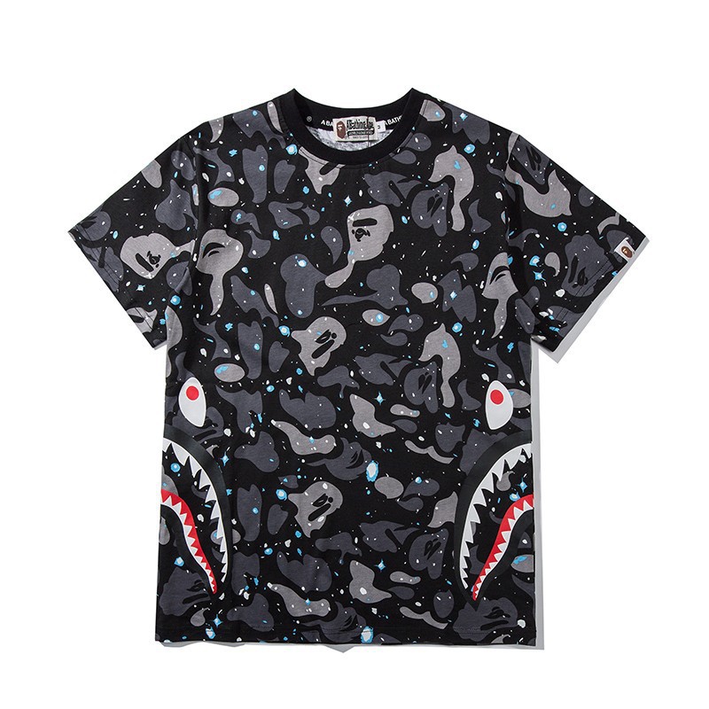 일본 트렌디 브랜드 Bape 카모플라주 상어 입 원숭이 머리 프린트 컬러 블록 야광 커플 조인트 반팔 티셔츠