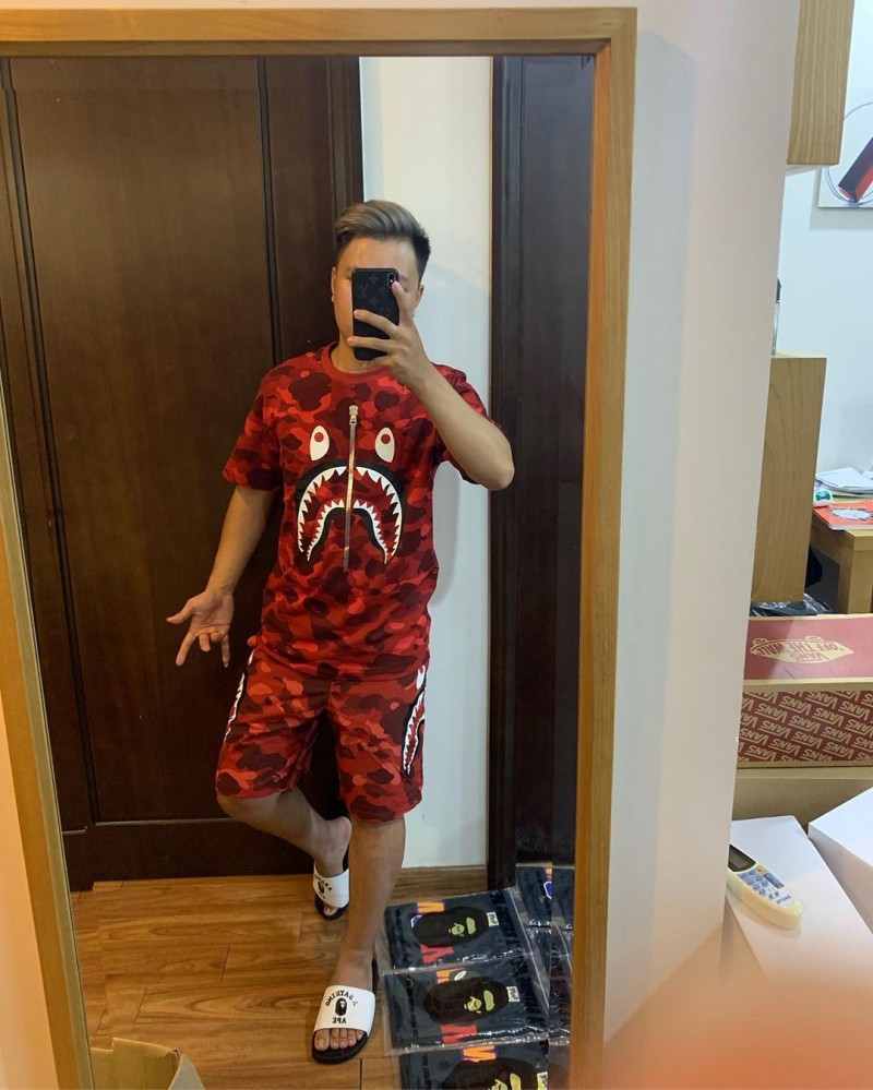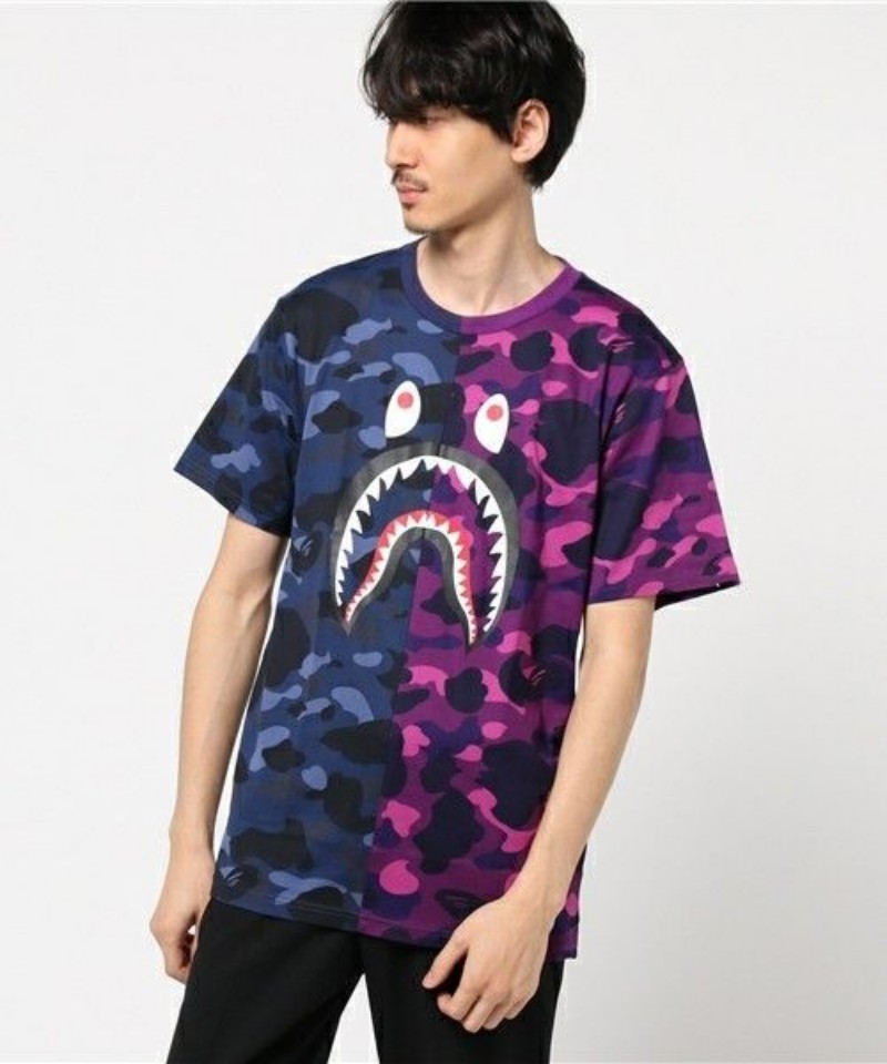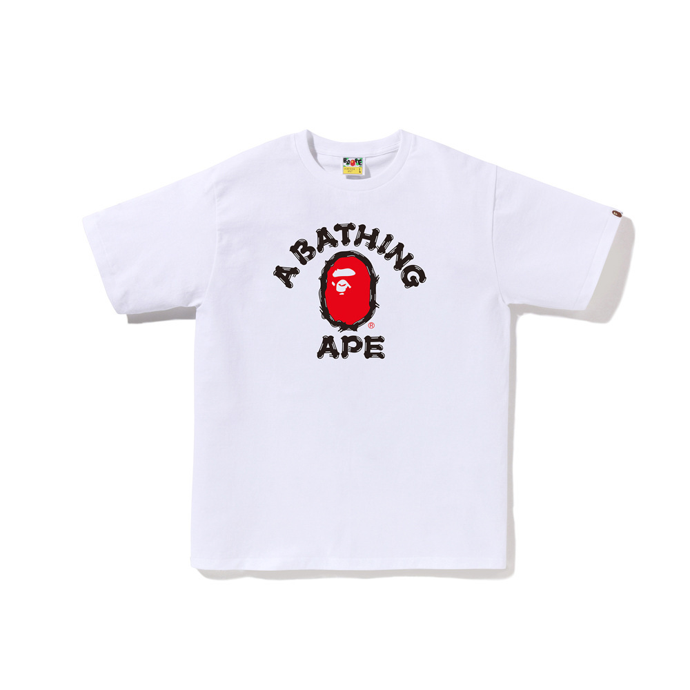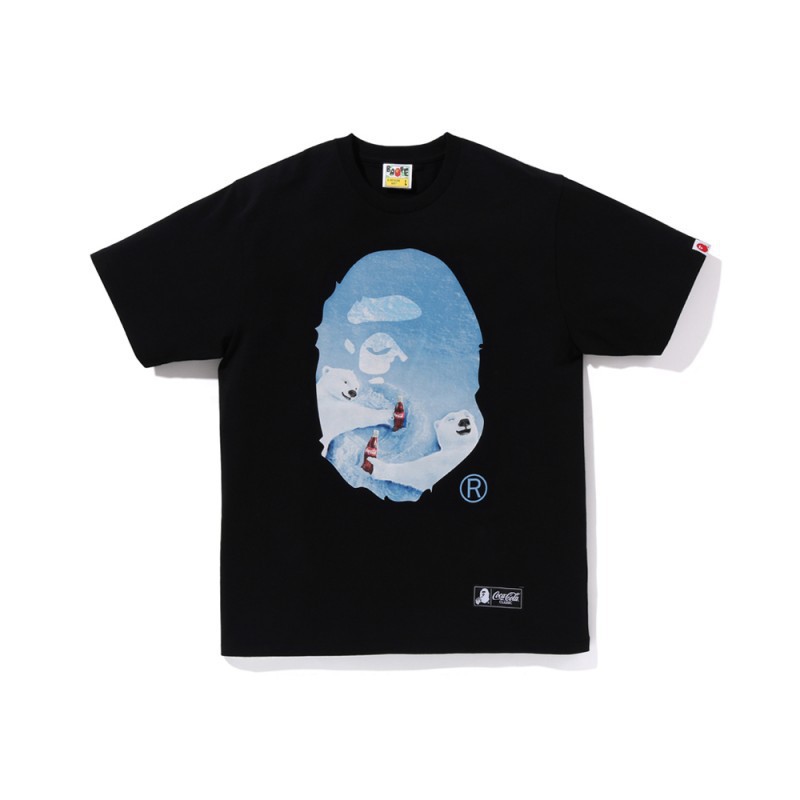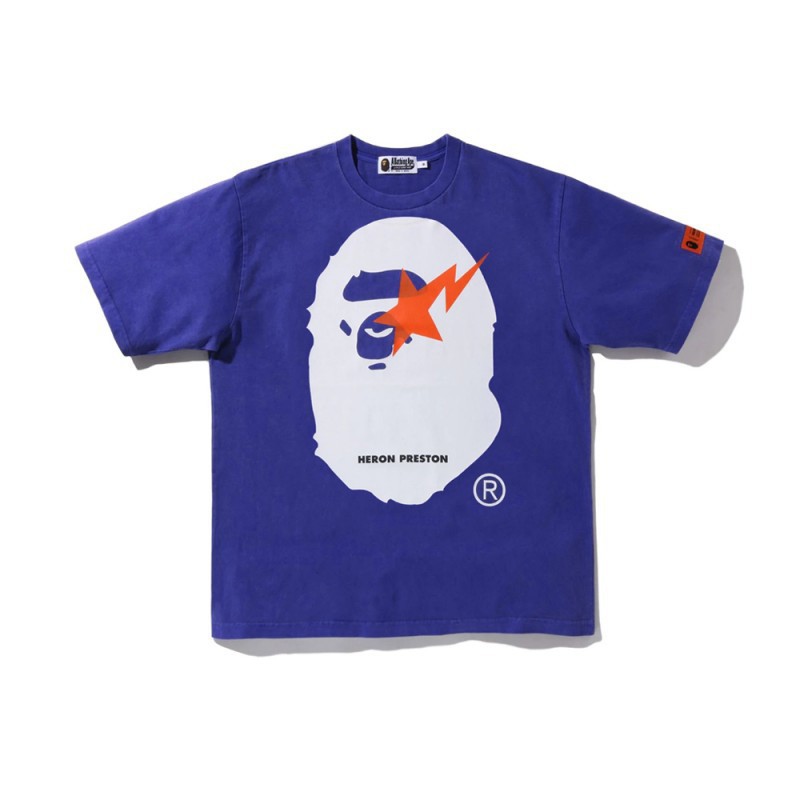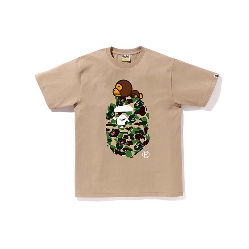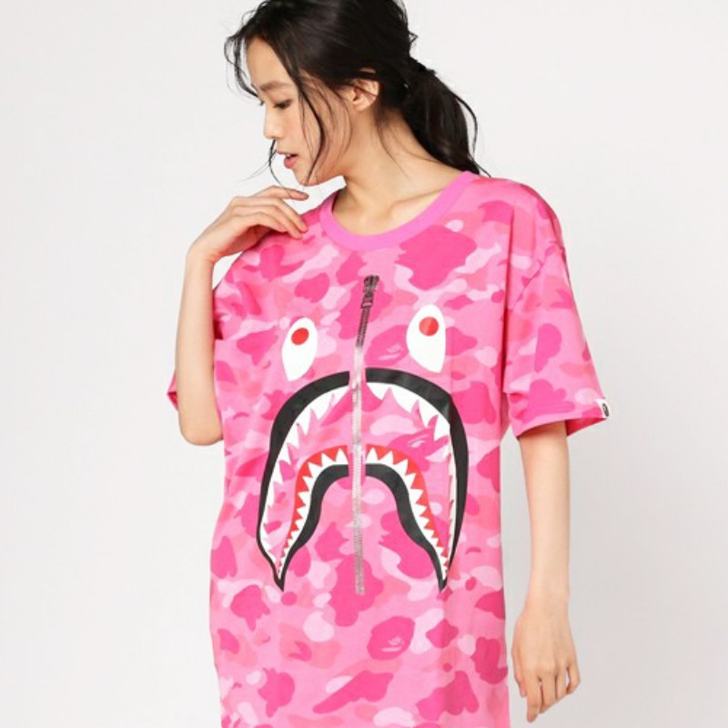 일본 트렌디 브랜드 Bape 카모플라주 상어 입 원숭이 머리 프린트 컬러 블록 야광 커플 조인트 반팔 티셔츠