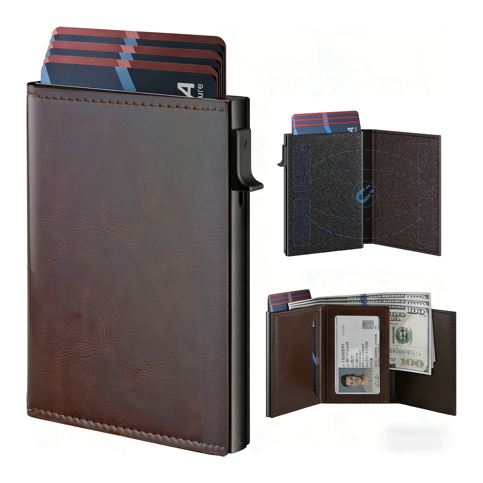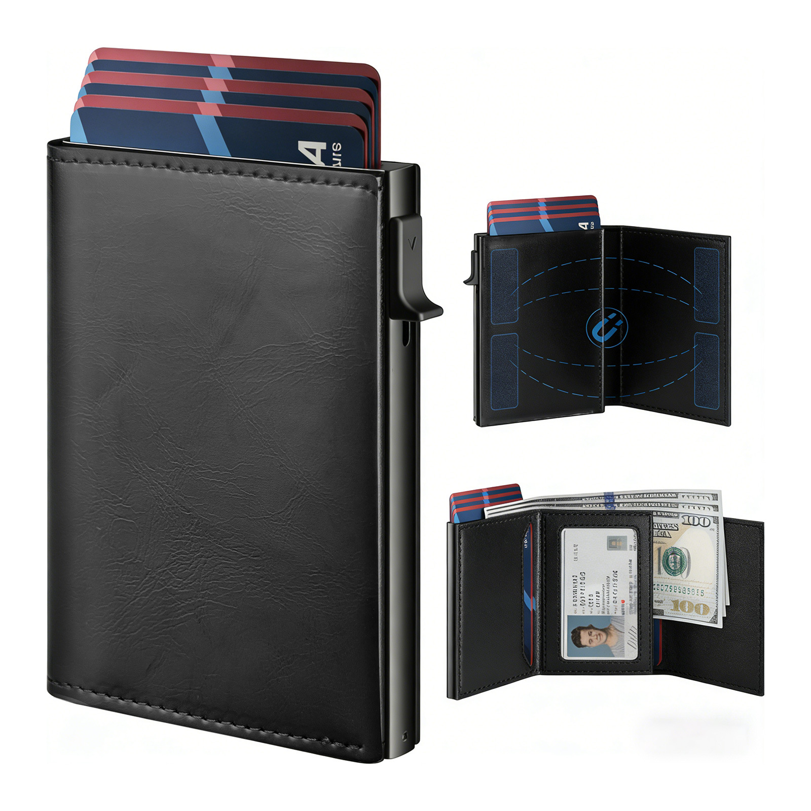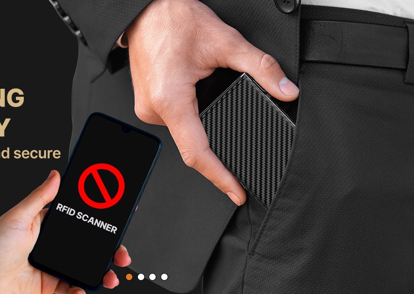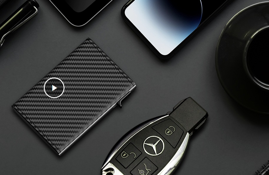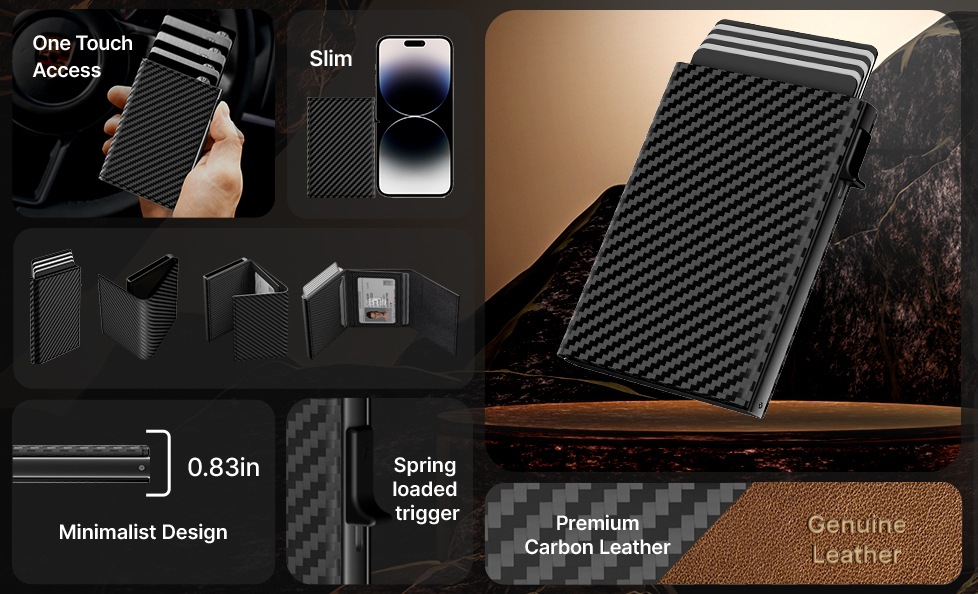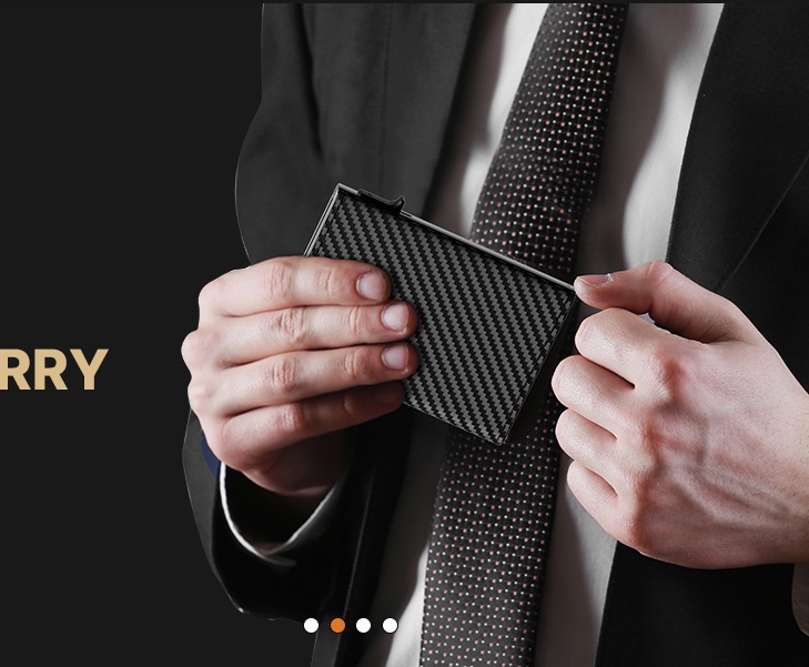 크로스보더 남성용 짧은 카드지갑, 탄소섬유 알루미늄 합금 소재, 다기능 대용량 RFID 자기장 방지 알루미늄 박스 카드지갑 B011스토어 가기