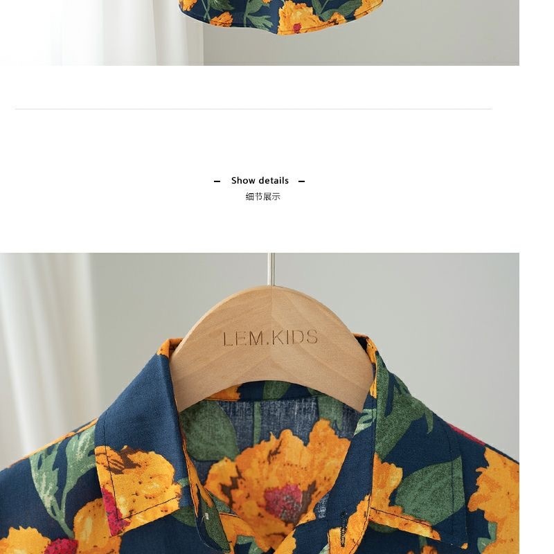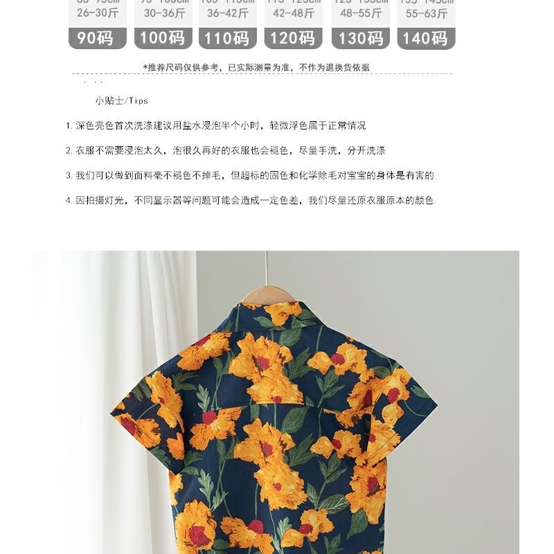 어린이 소년 셔츠 2025 어린이와 아기를위한 새로운 반팔 홍콩 스타일 꽃 셔츠 정장 투피스 여름 정장스토어 가기