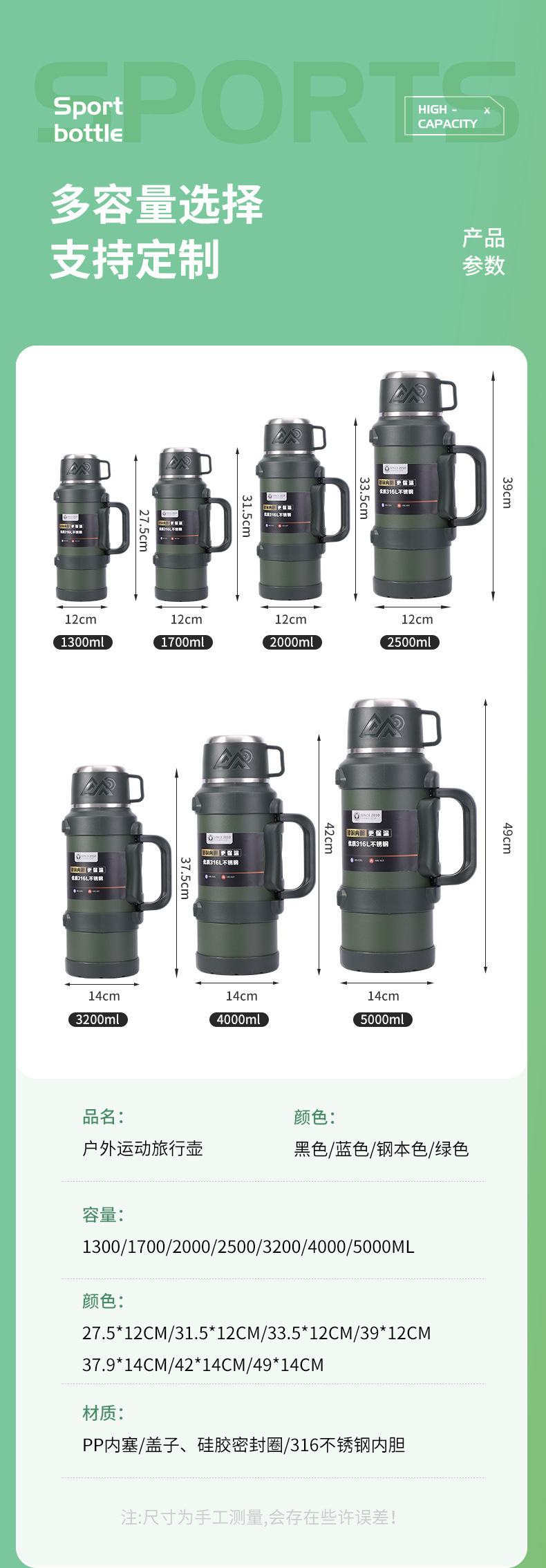 대용량 야외 보온병 따뜻한 보온병 가구 5L 보온병 316 스테인레스 스틸 경량 건설 현장 자동차스토어 가기