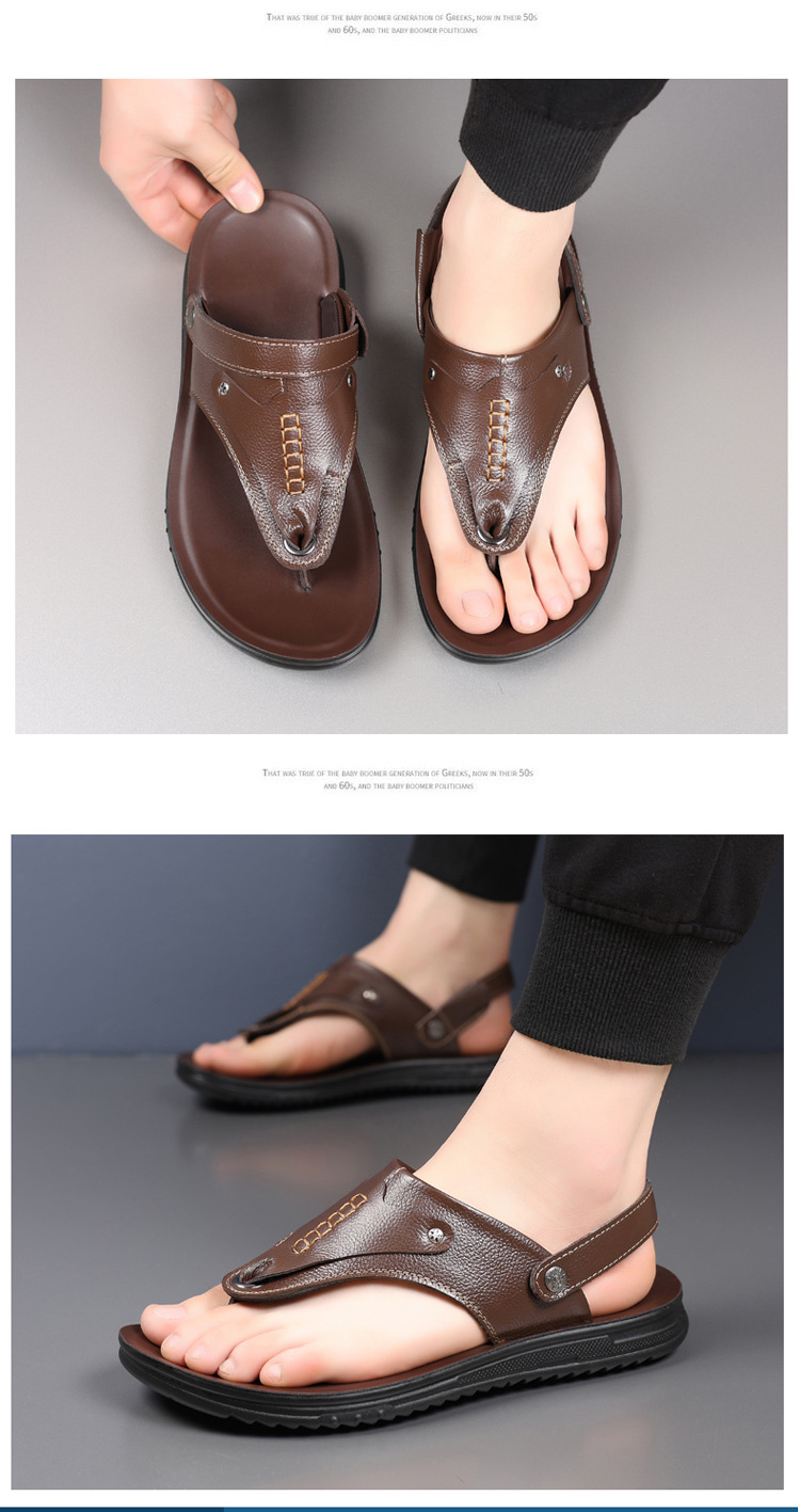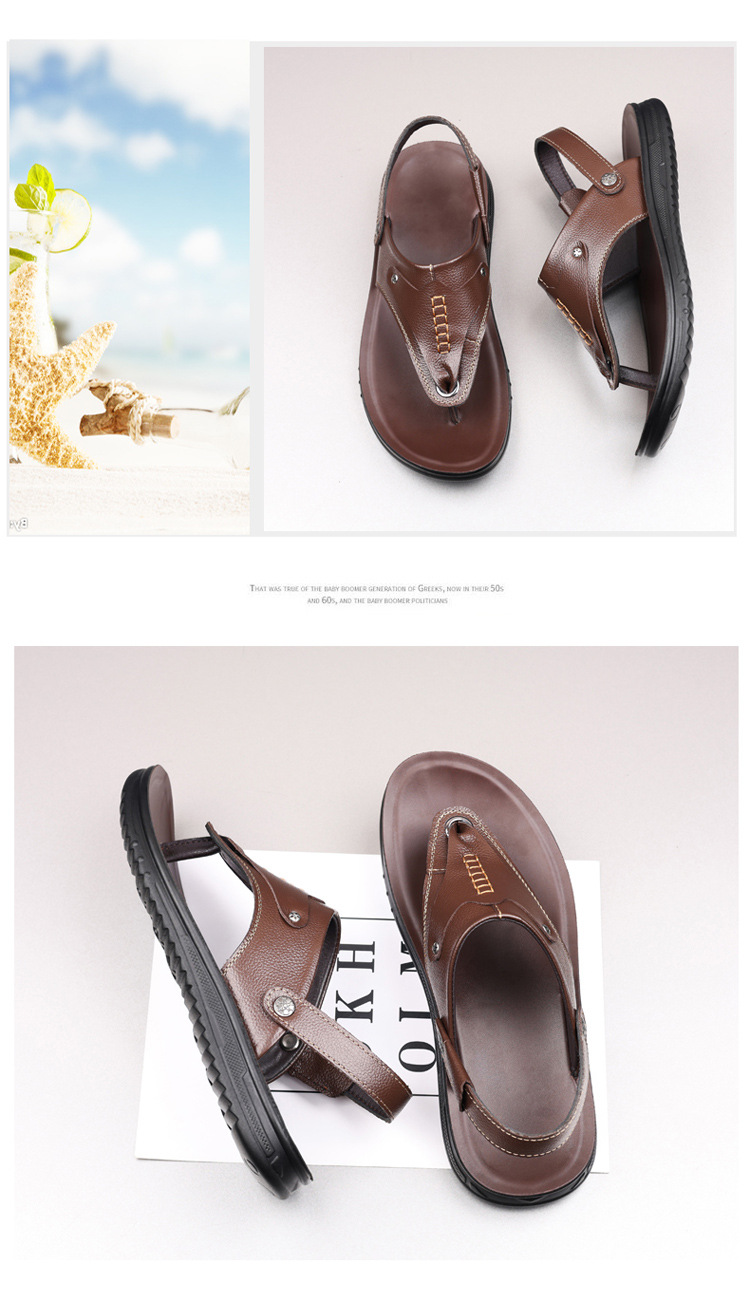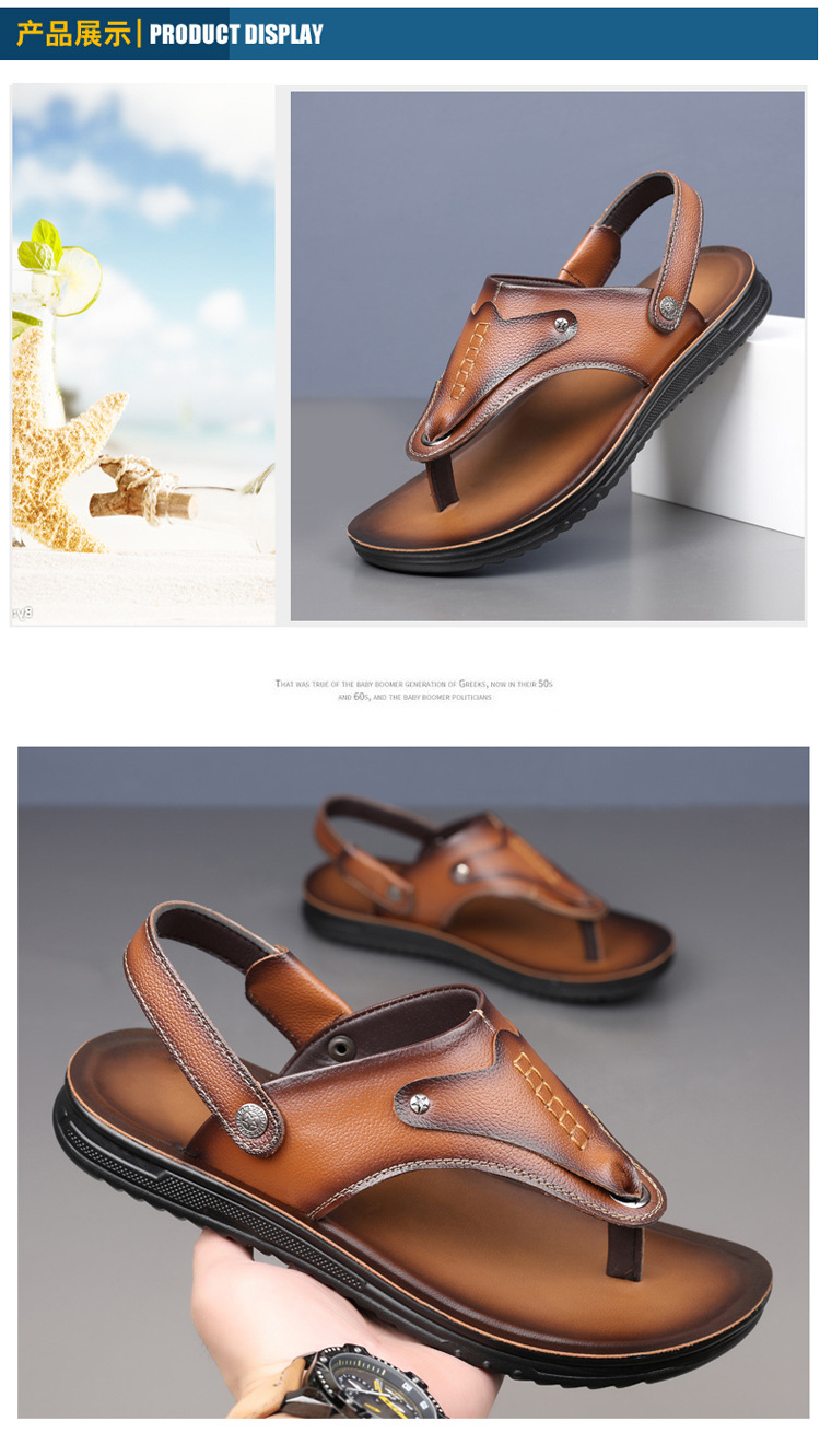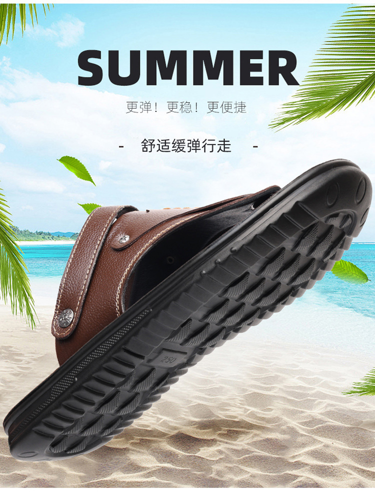 첫 번째 레이어 소 가죽 남성 샌들 도매 여름 미끄럼 방지 해변 신발 남성 대외 무역 새로운 슬리퍼 캐주얼 샌들