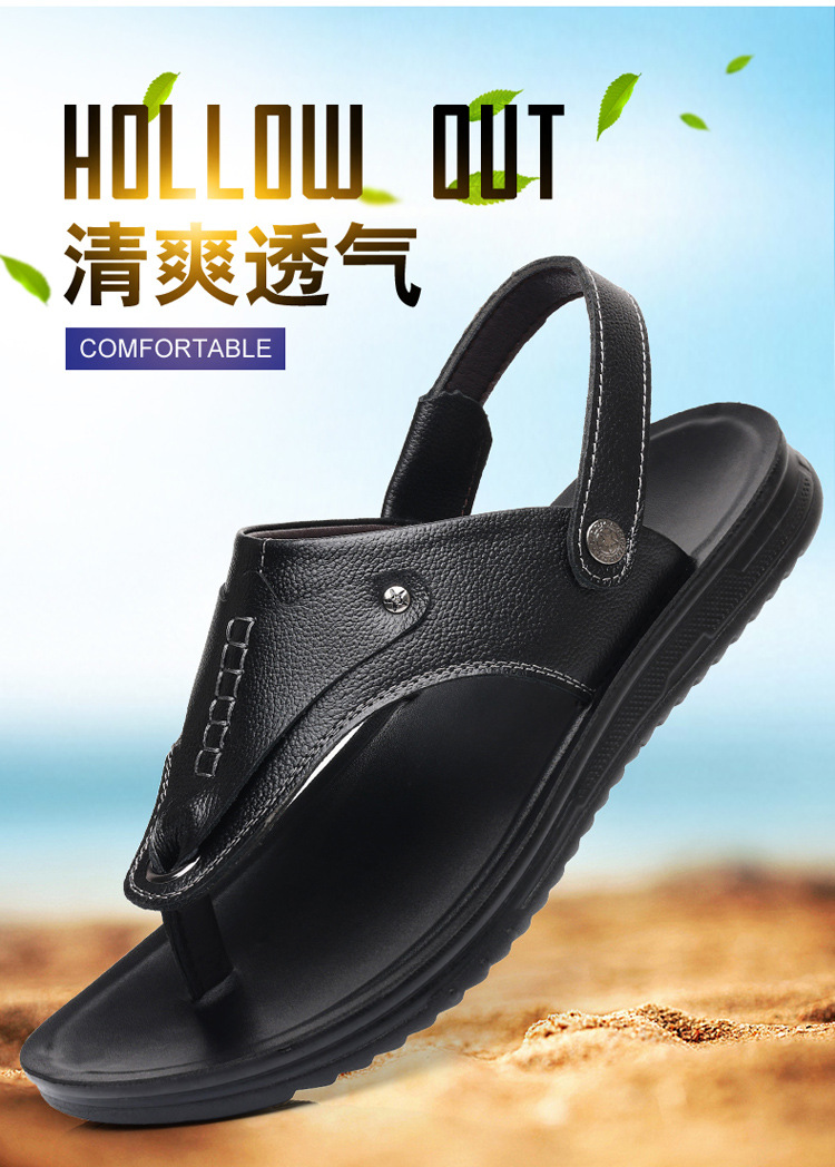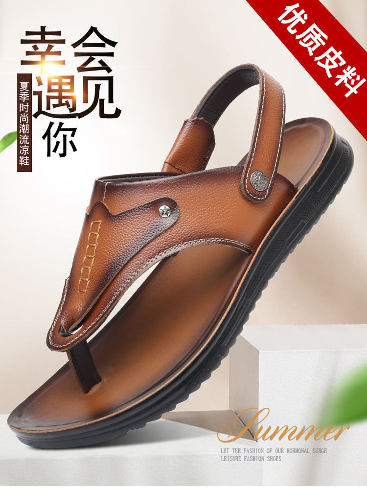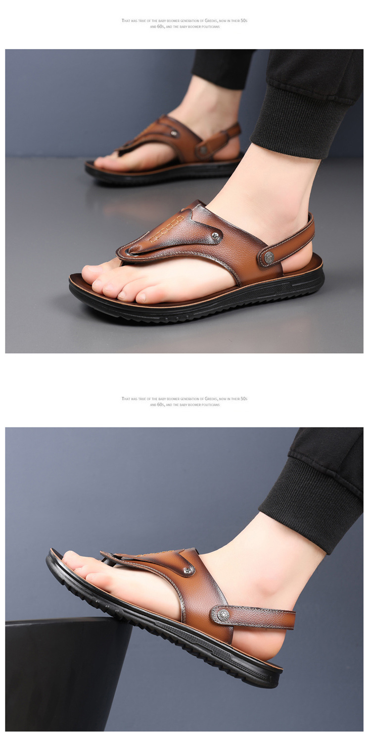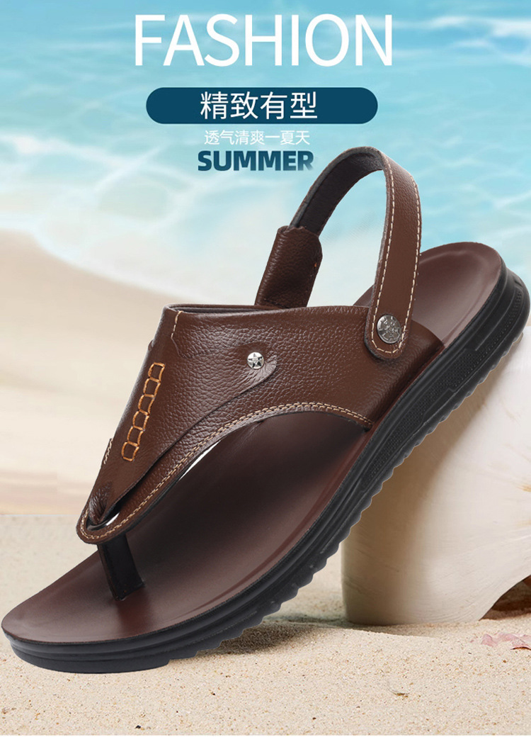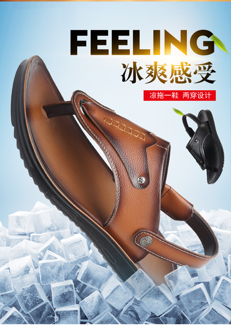 첫 번째 레이어 소 가죽 남성 샌들 도매 여름 미끄럼 방지 해변 신발 남성 대외 무역 새로운 슬리퍼 캐주얼 샌들