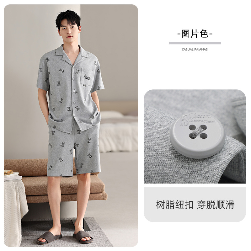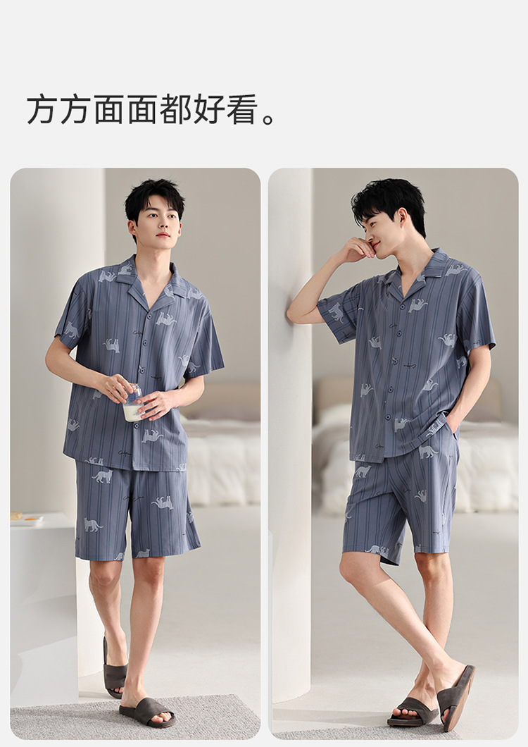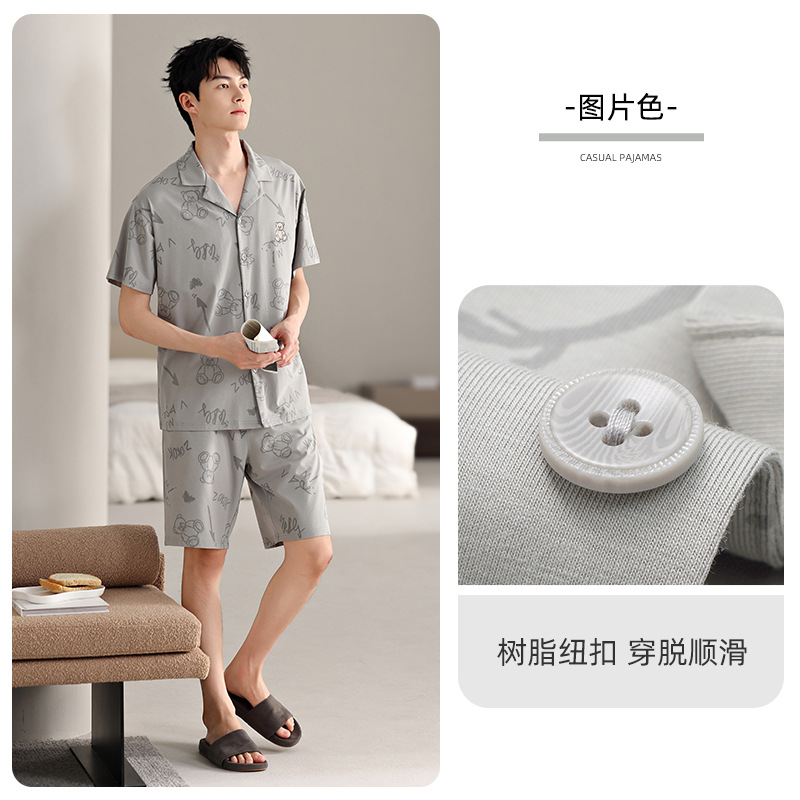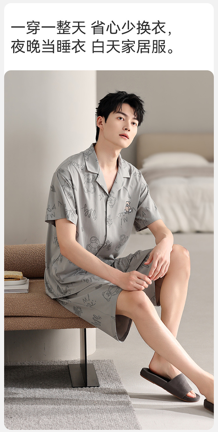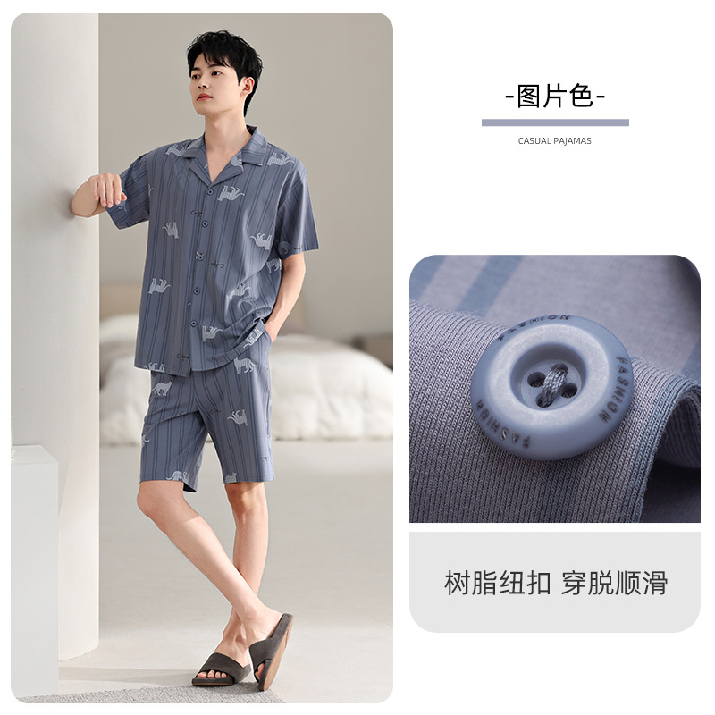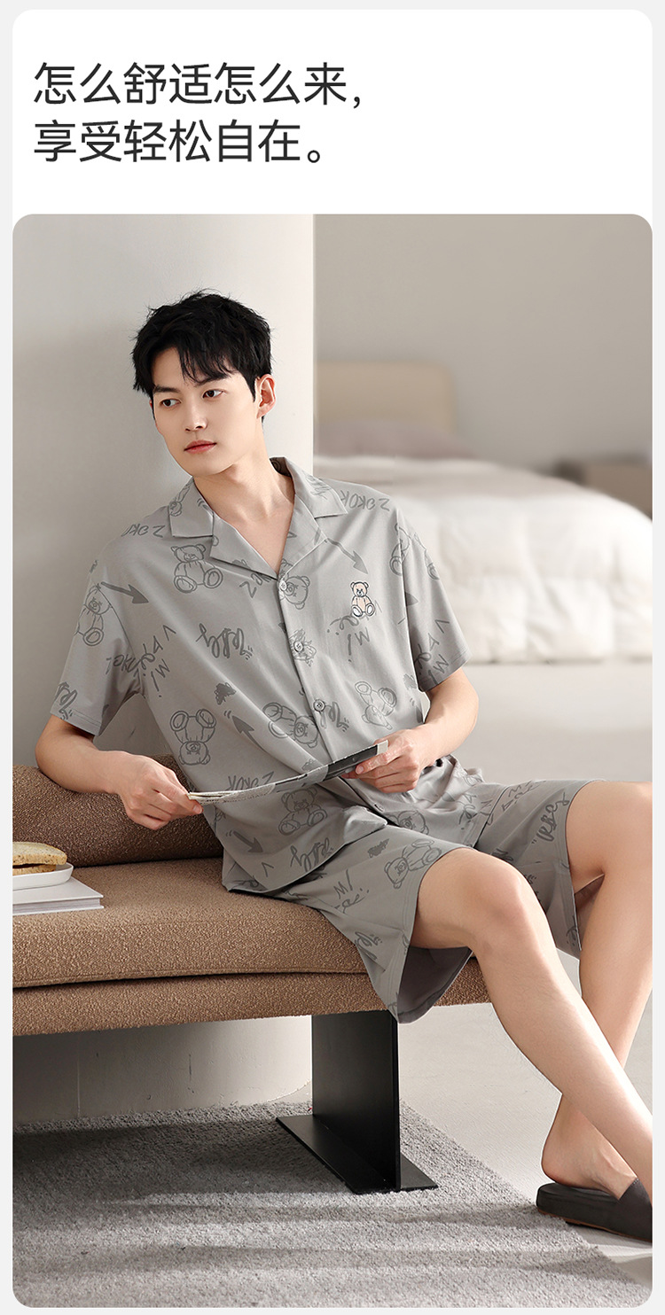 반팔 반바지 잠옷 남성용 순면 스트레치 스타일은 캐주얼 플러스 사이즈 여름 얇은 가정복 외부에 착용 가능스토어 가기