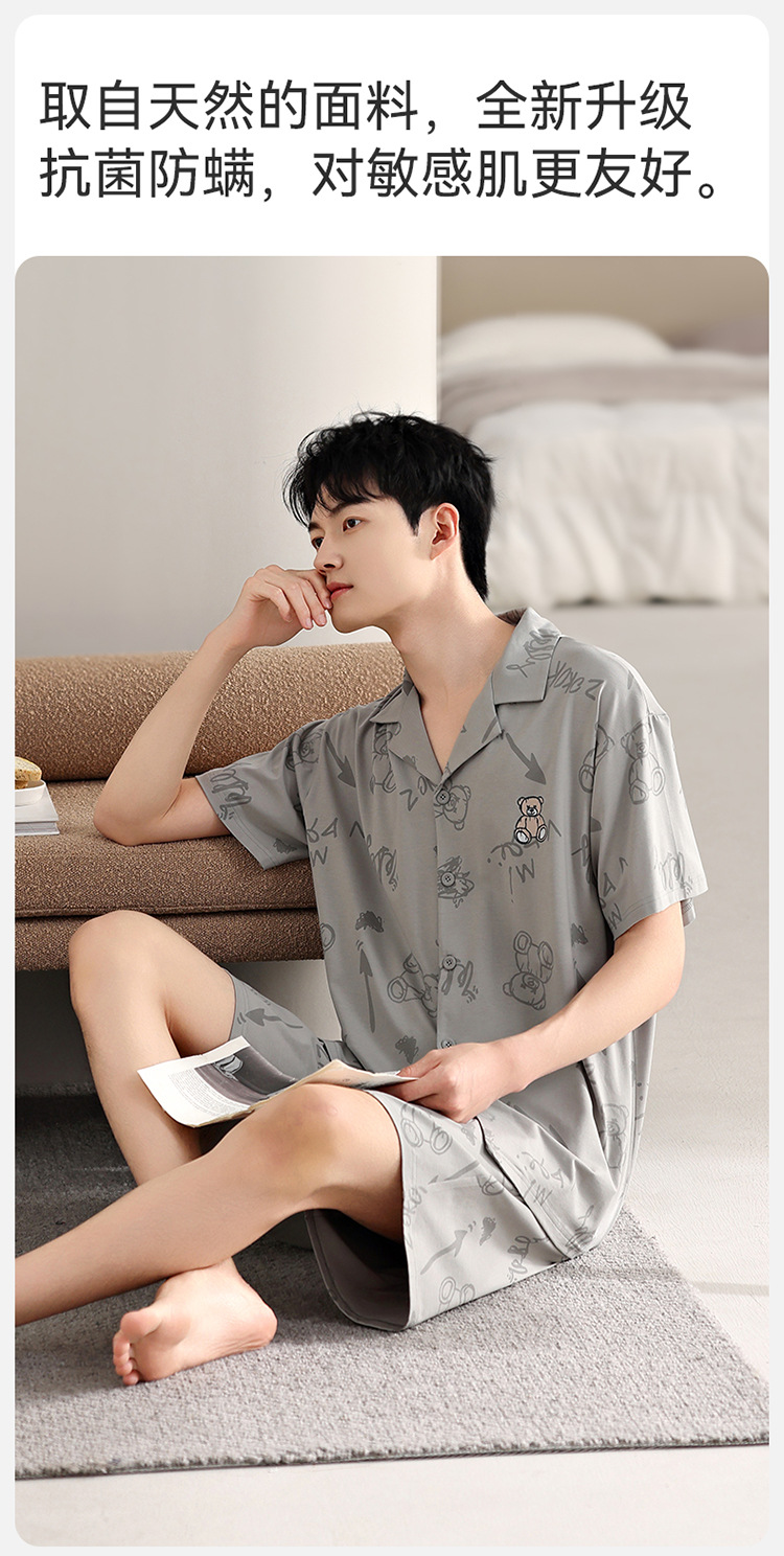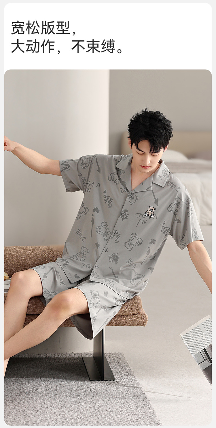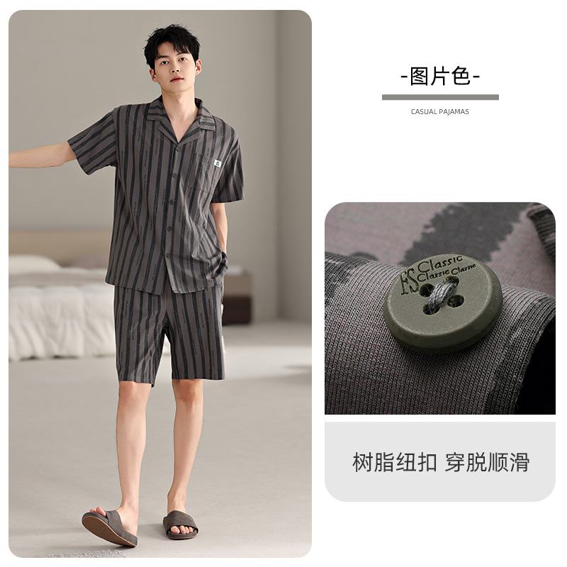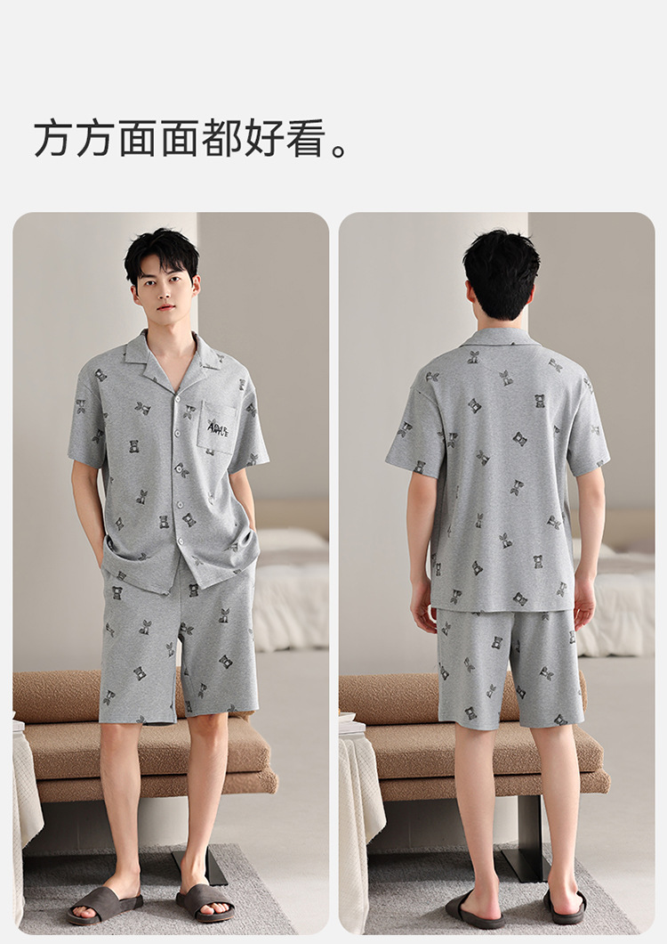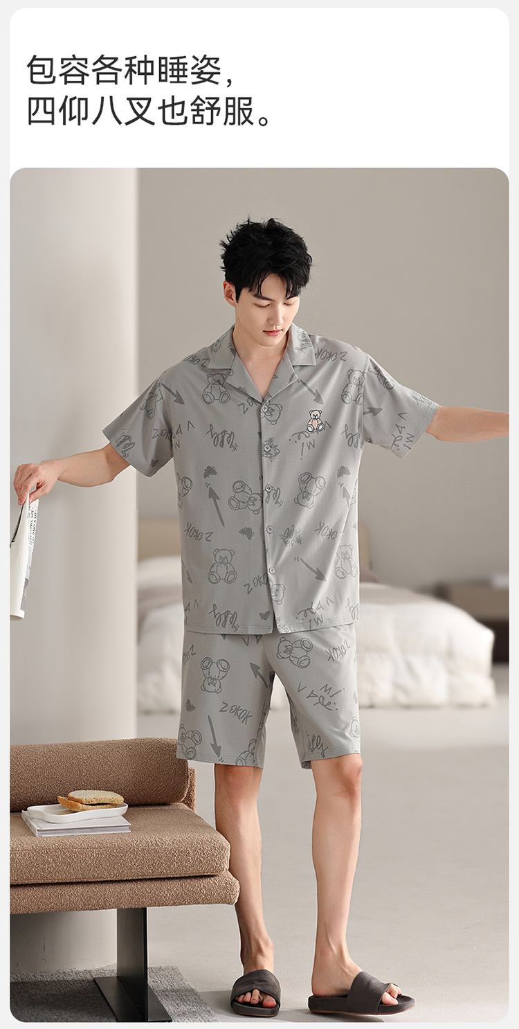 반팔 반바지 잠옷 남성용 순면 스트레치 스타일은 캐주얼 플러스 사이즈 여름 얇은 가정복 외부에 착용 가능스토어 가기
