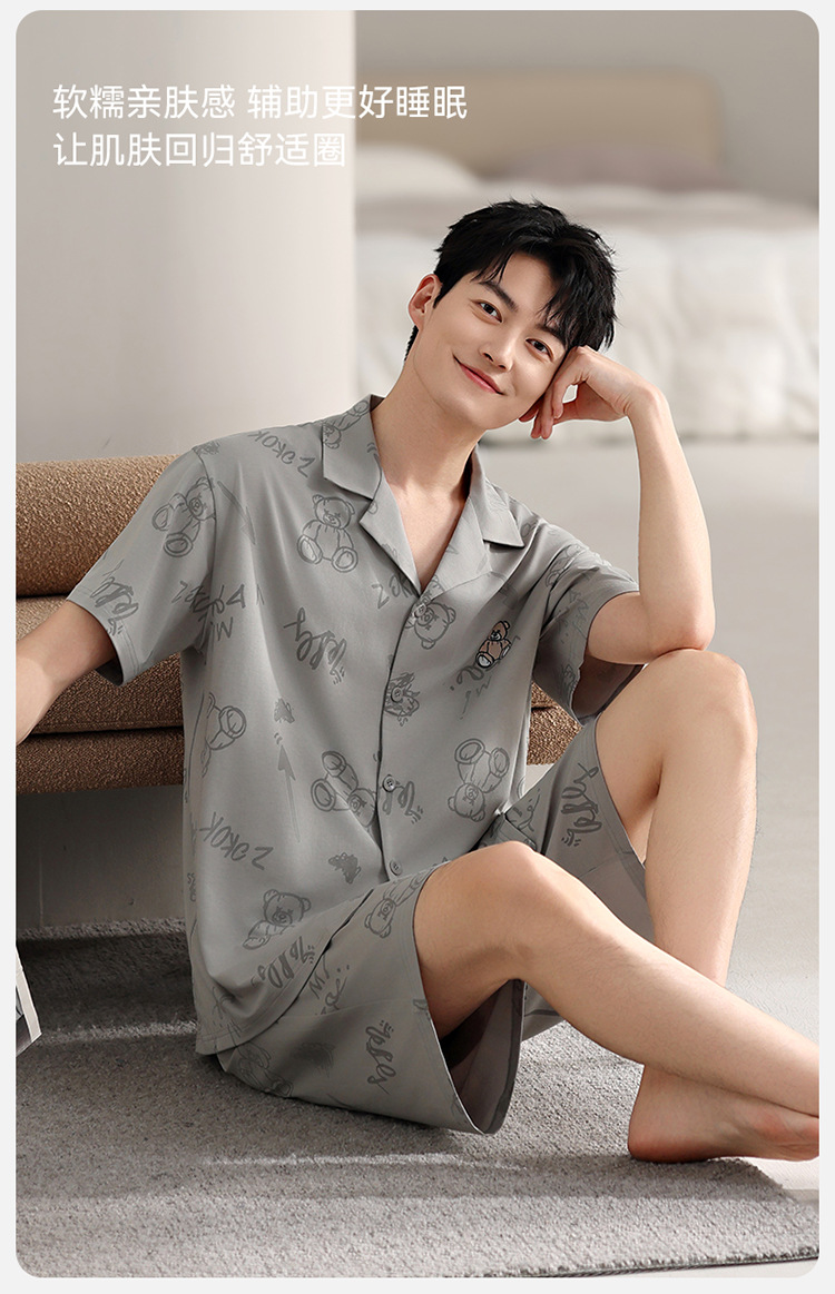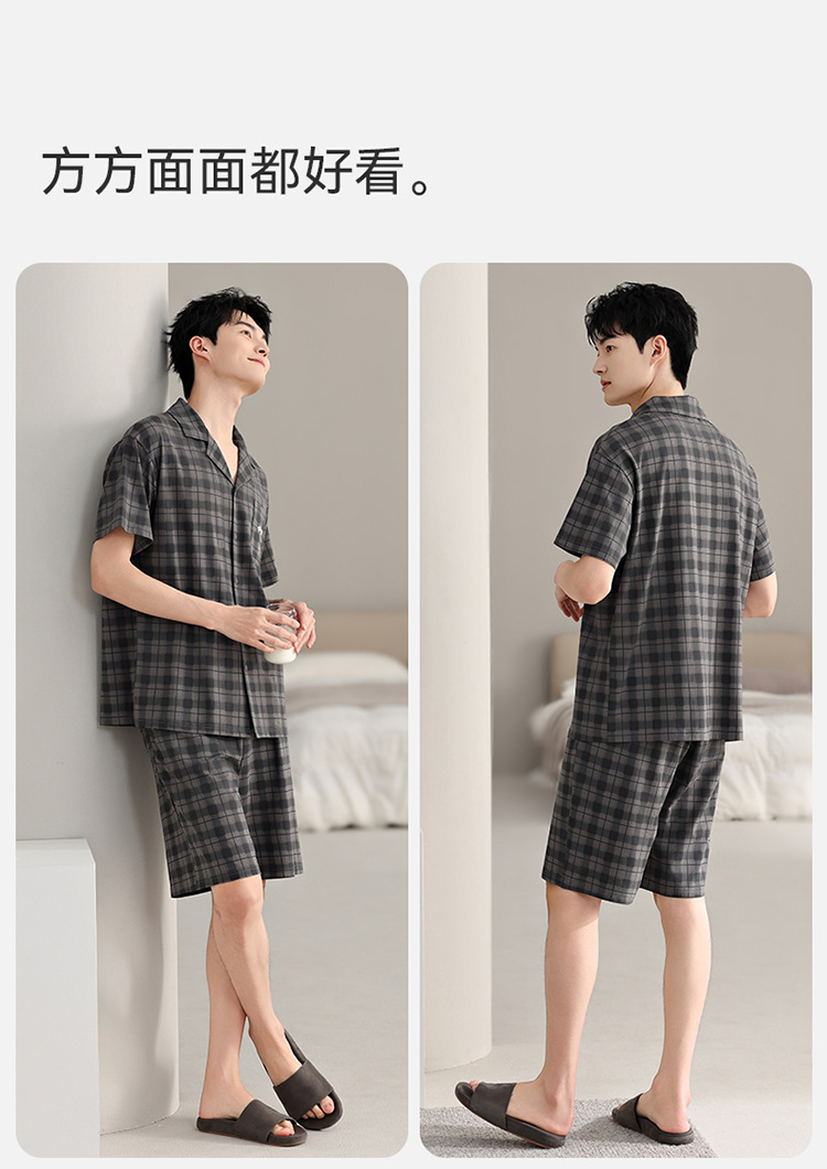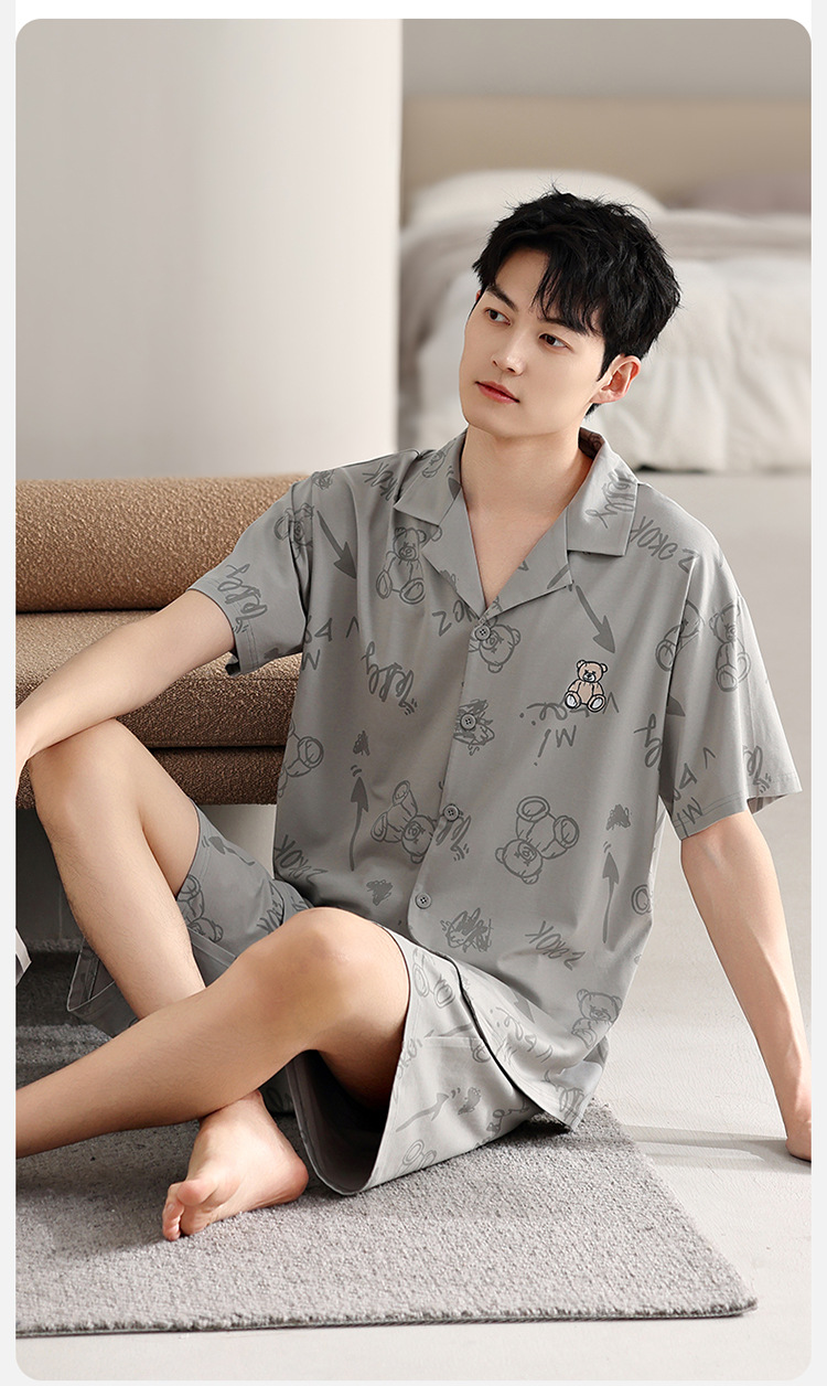 반팔 반바지 잠옷 남성용 순면 스트레치 스타일은 캐주얼 플러스 사이즈 여름 얇은 가정복 외부에 착용 가능