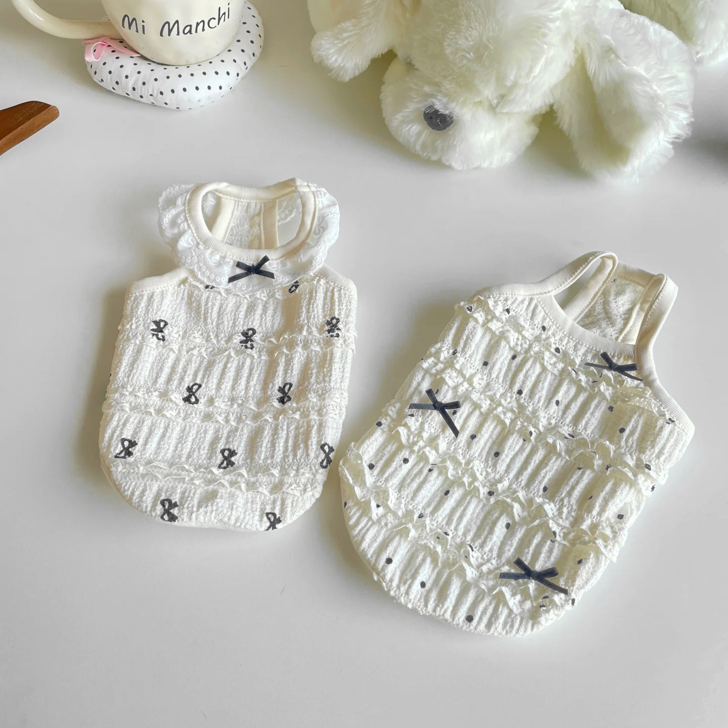 레트로 레이스 나비 개 옷 애완 동물 고양이 조끼 봄과 여름 얇은 옷 작은 개 의류 비숑 프리즈