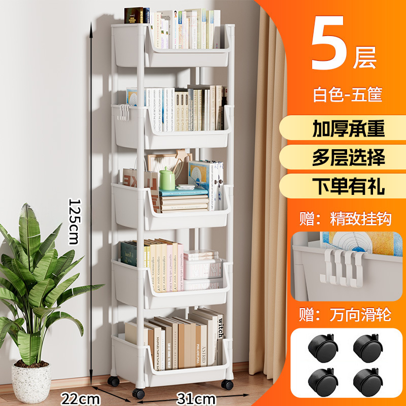트롤리 보관함 가정용 다층 모바일 책장 거실 어린이 간식 장난감 주방 과일 및 야채 바구니 선반