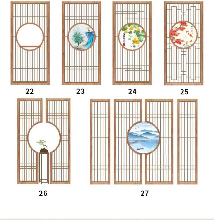 2025 새로운 스타일의 거실 파티션 스크린 사무실 입구 차단 입구 침실 욕실 단단한 나무 그릴스토어 가기